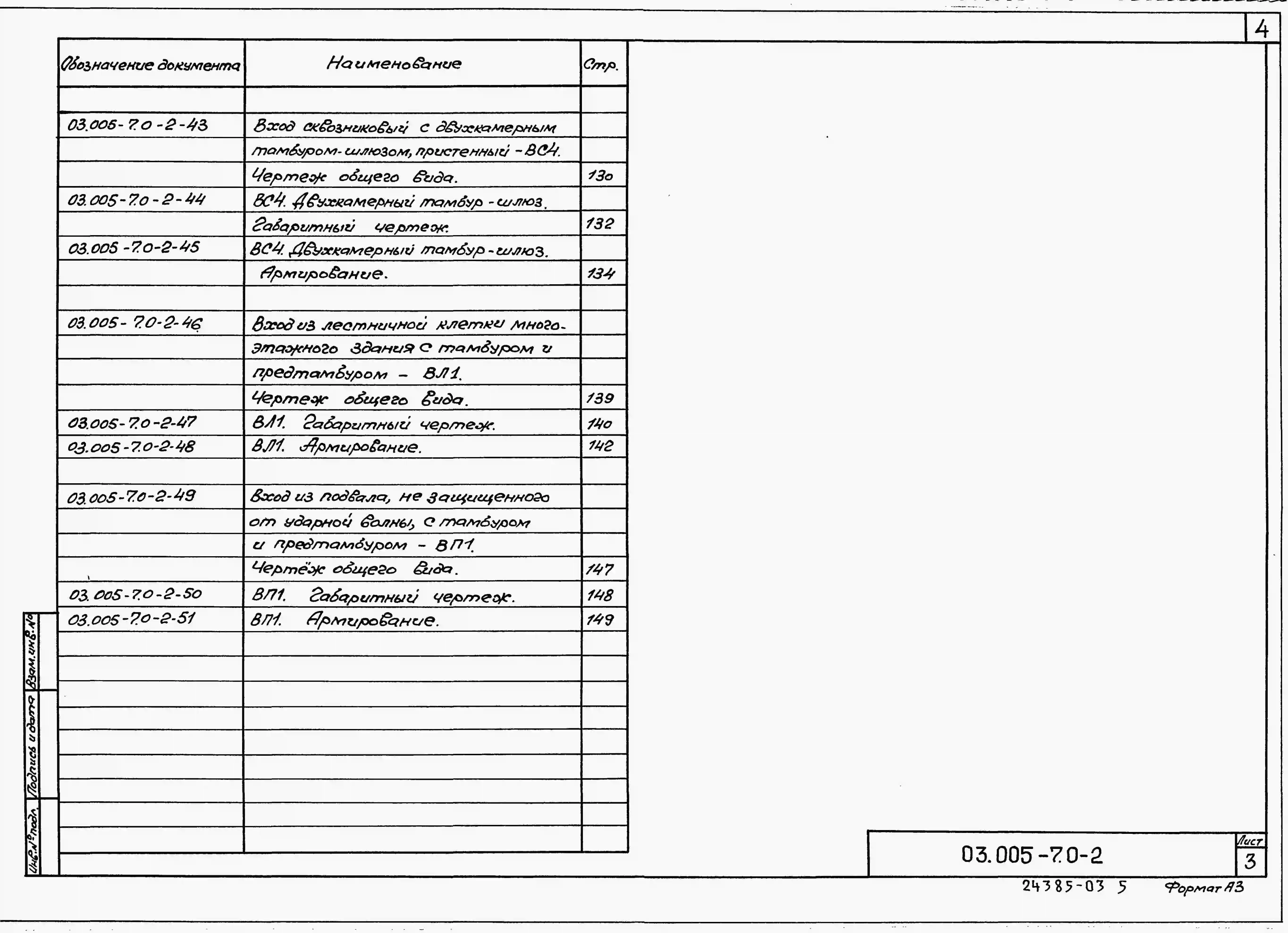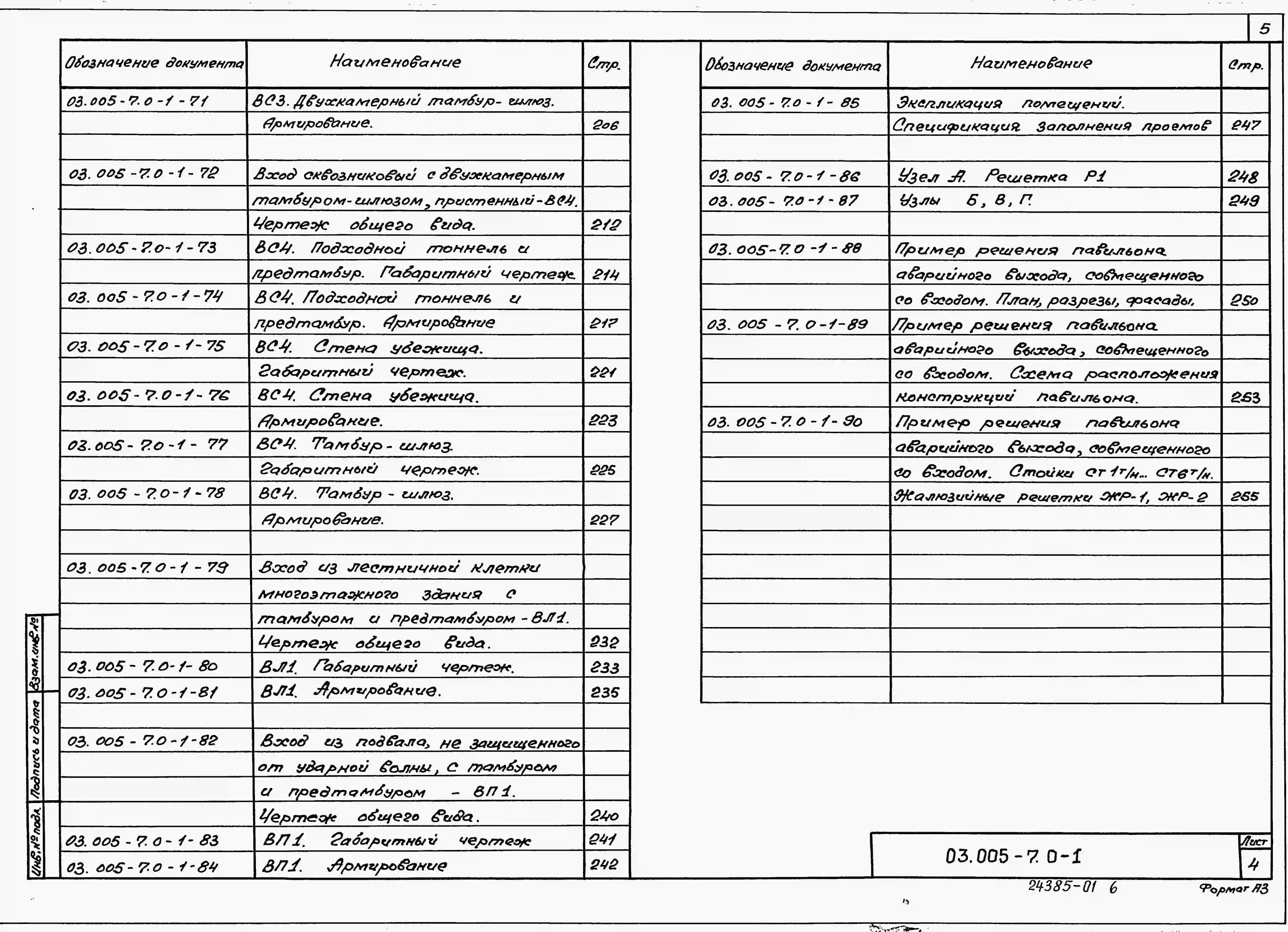 Серия 03.005-7 Монолитные железобетонные входы и аварийные выходы для защитных сооружеий из конструкций серии У-01-01/80. Выпуск 0-1. Конструктивные решения входов и аварийных выходов защитных сооружений в сухих грунтах. Материалы для проектирования