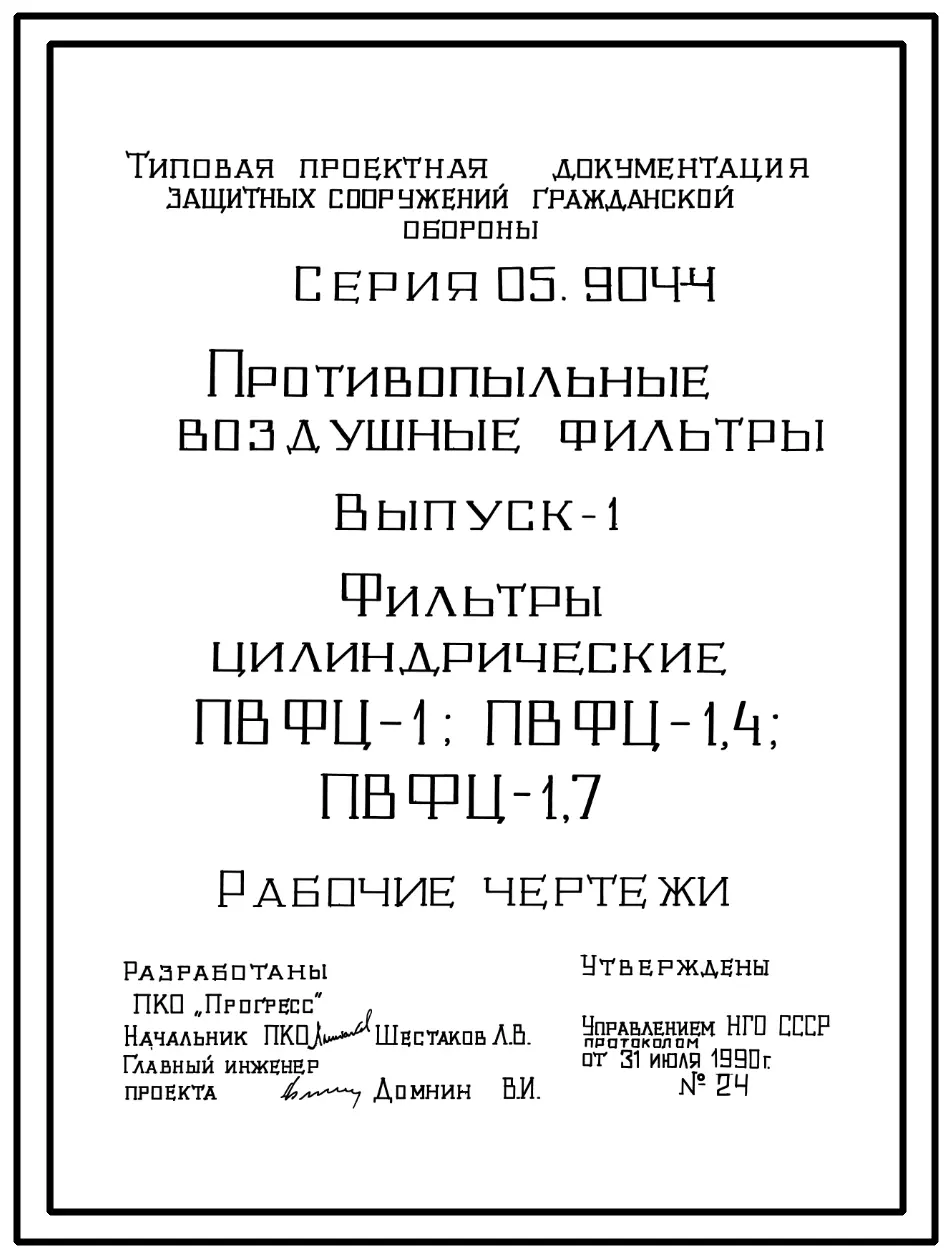 Серия 05.904-4 Противопыльные воздушные фильтры цилиндрические ПВФЦ-1; 1,4; 1,7. Рабочие чертежи.