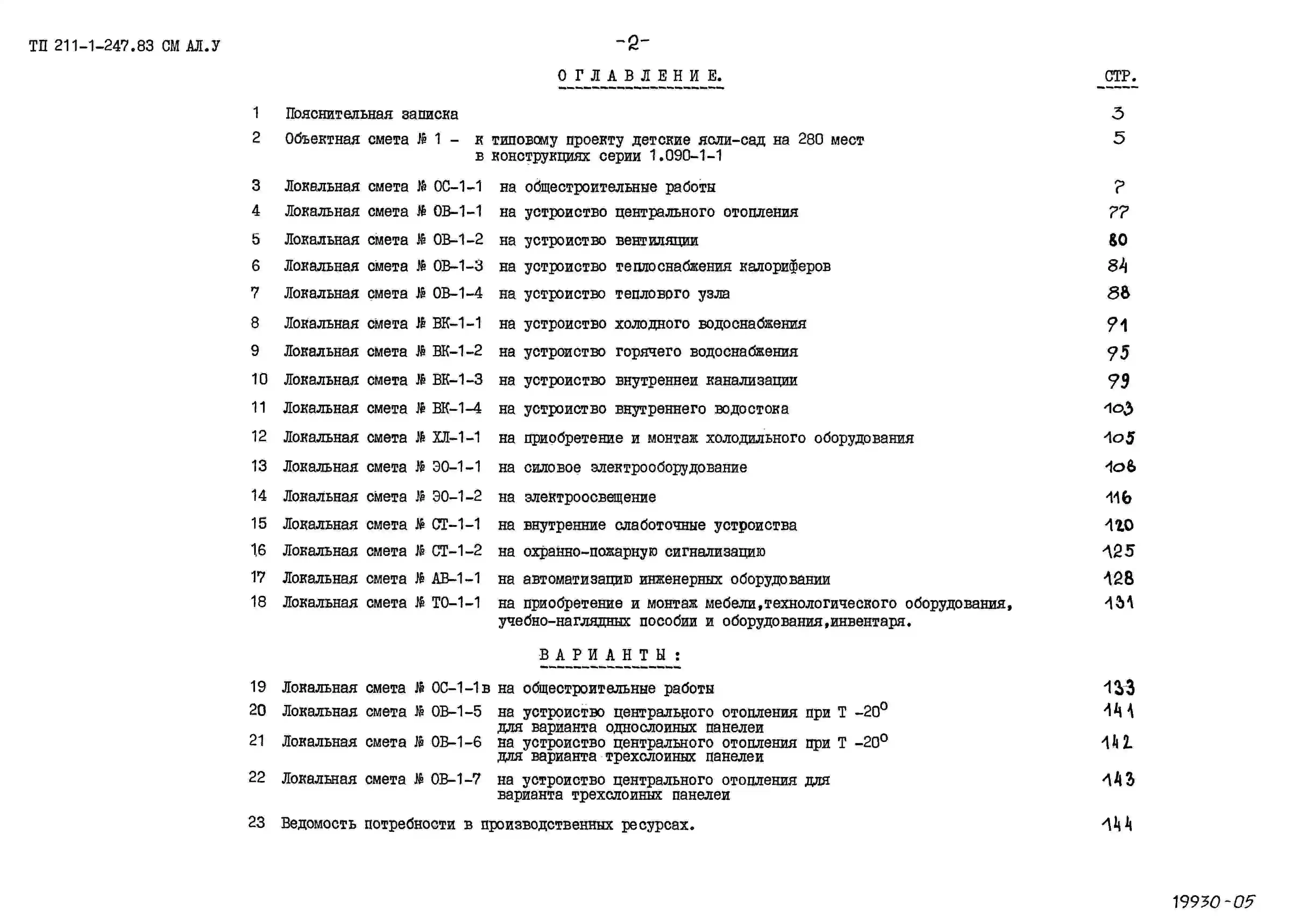 Типовой проект 211-1-247.83 Детские ясли-сад на 280 мест в конструкциях серии 1.090.1-1. Полный исходный проект.