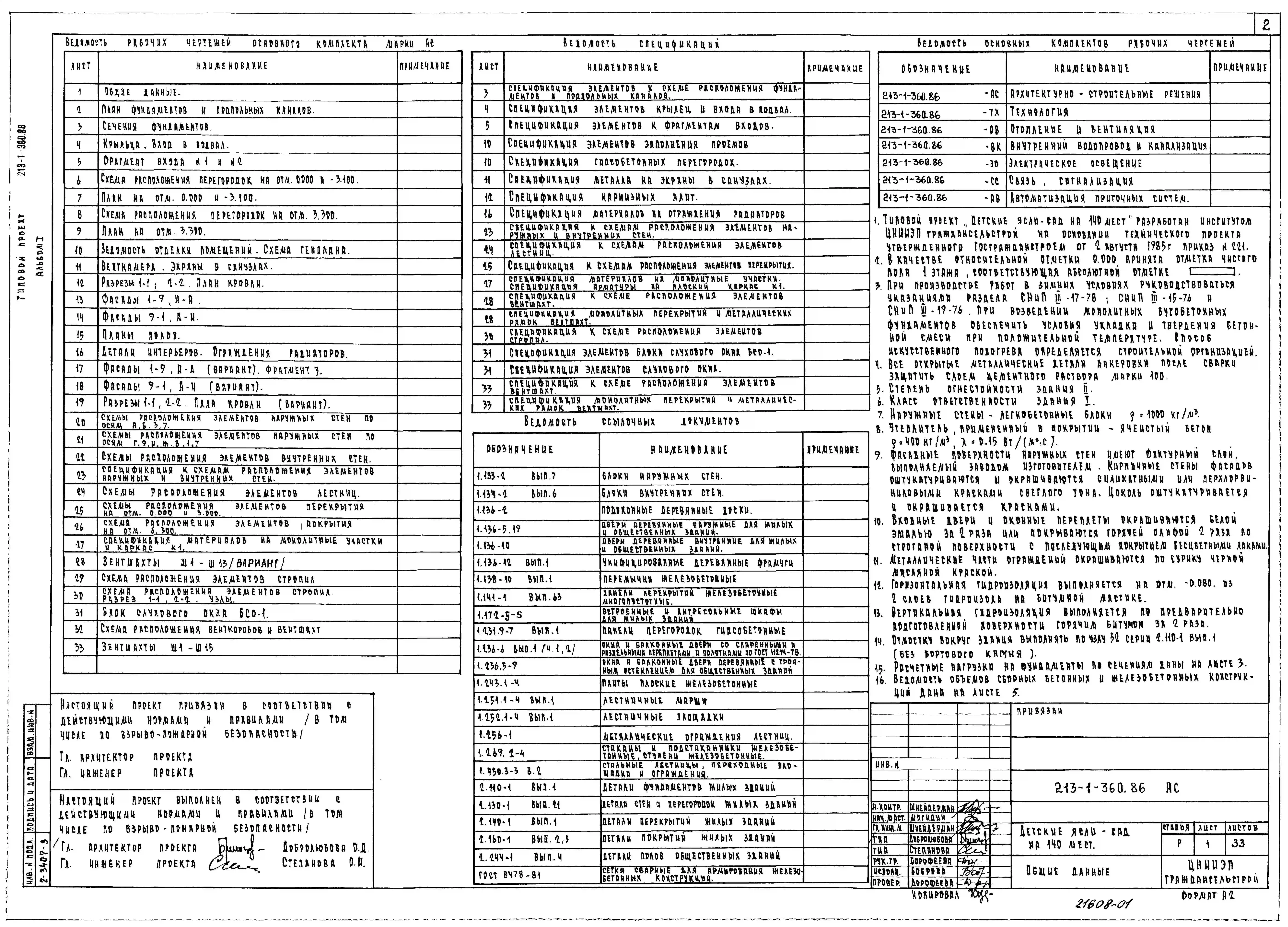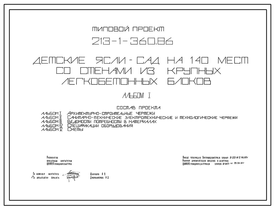 Типовой проект 213-1-360.86 Детские ясли - сад на 140 мест. Здание двухэтажное. Стены из крупных легкобетонных блоков.