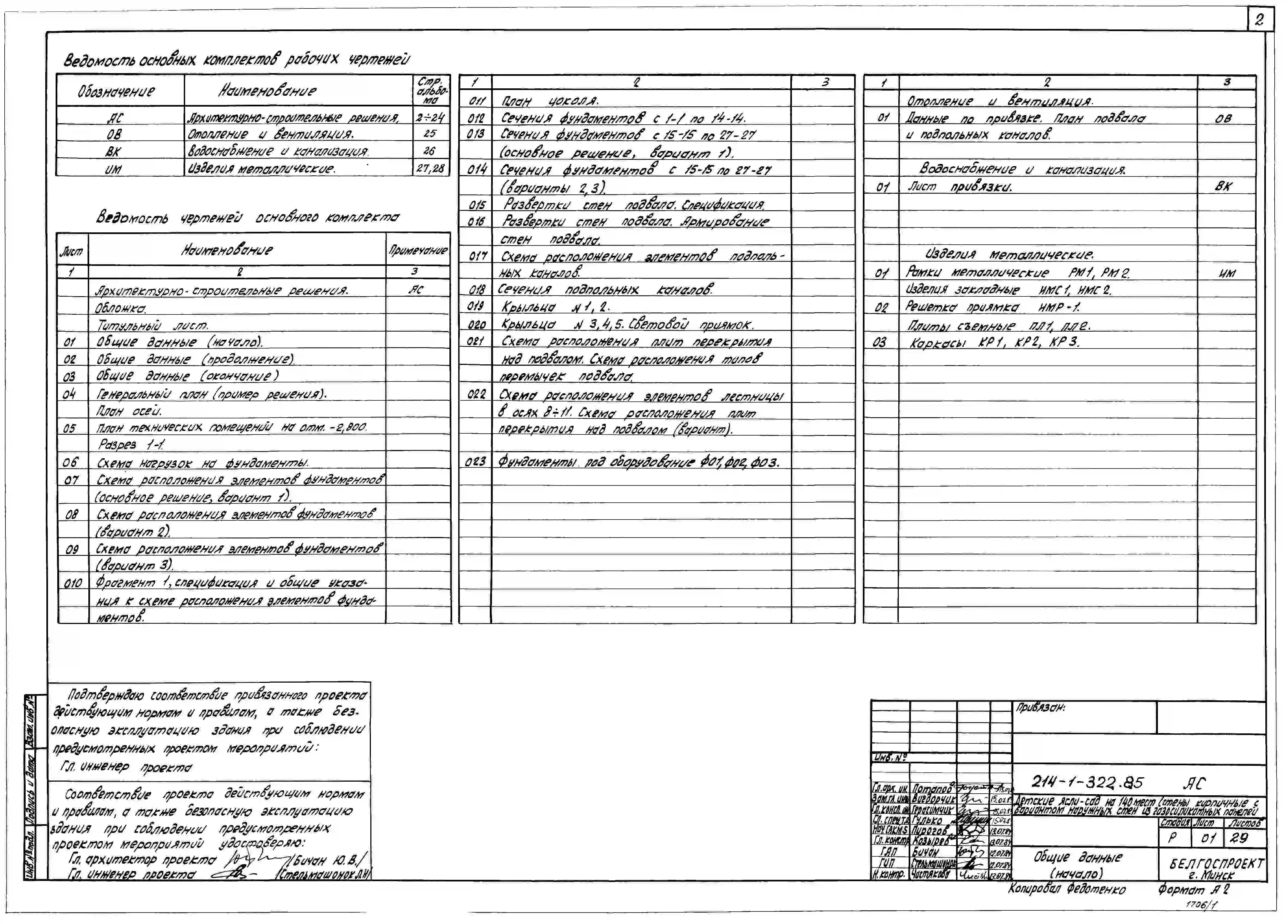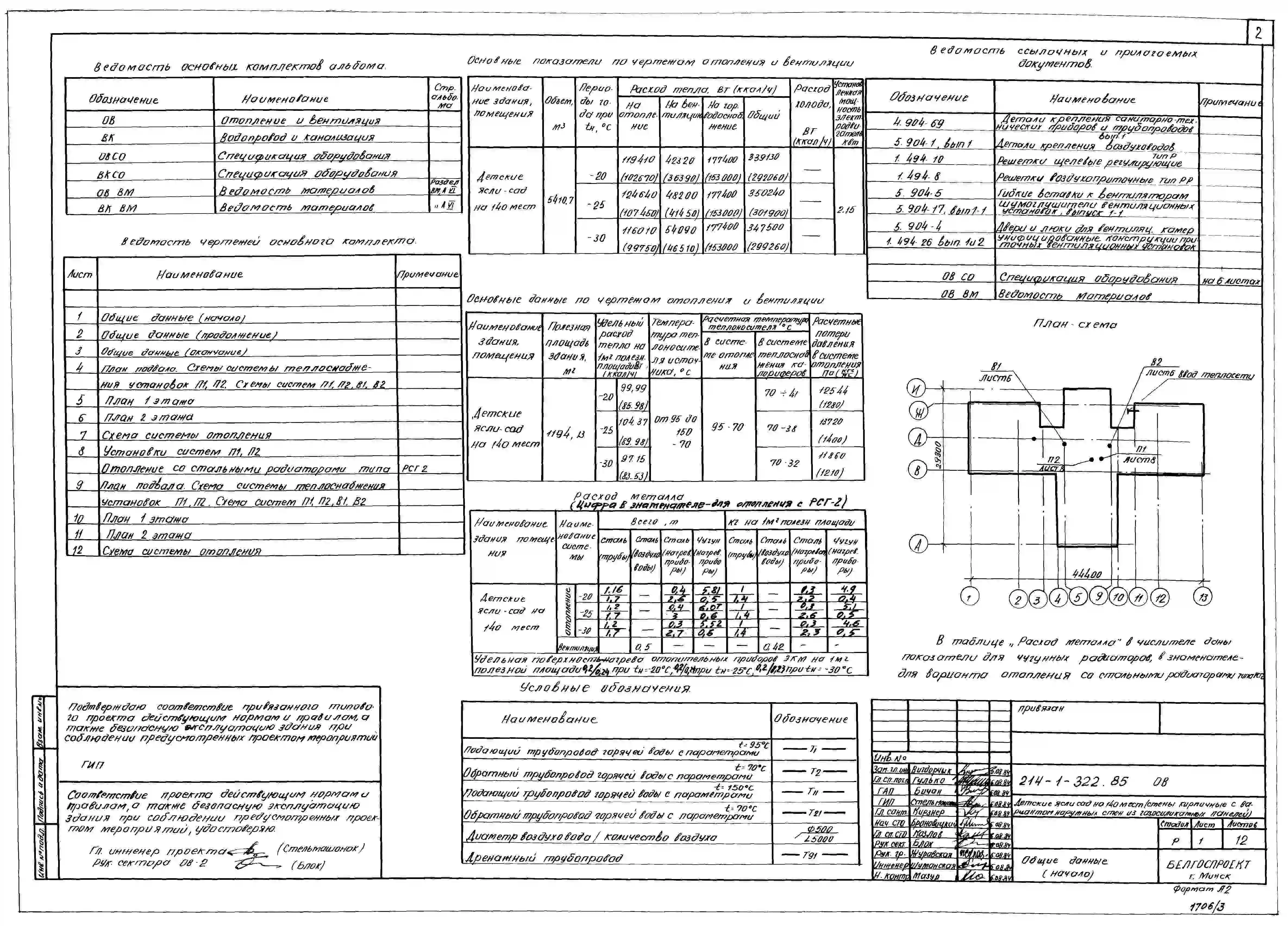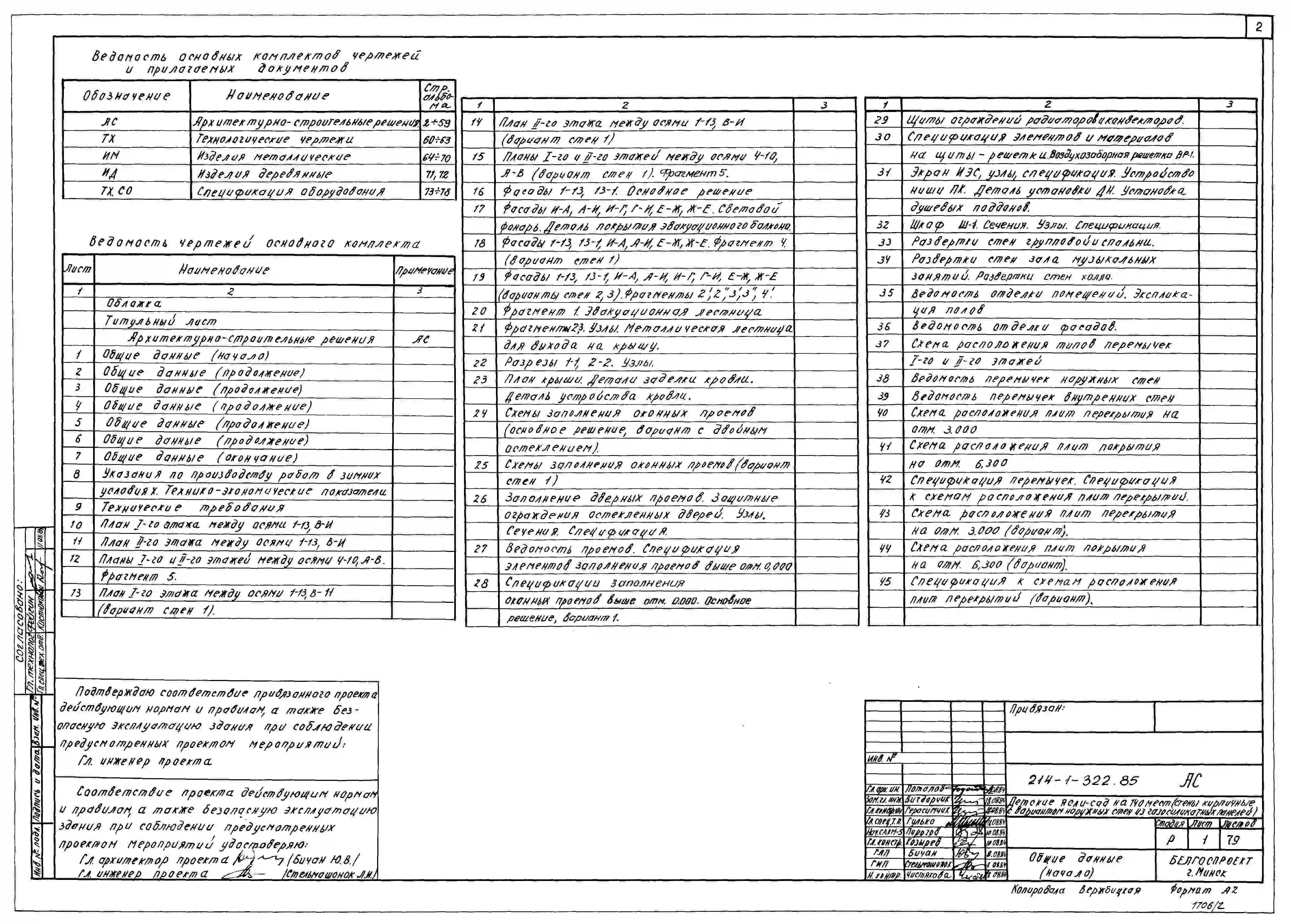 Типовой проект 214-1-322.85 Детские ясли-сад на 140 мест. Здание двухэтажное. Стены из кирпича (вариант - из газосиликатных панелей).