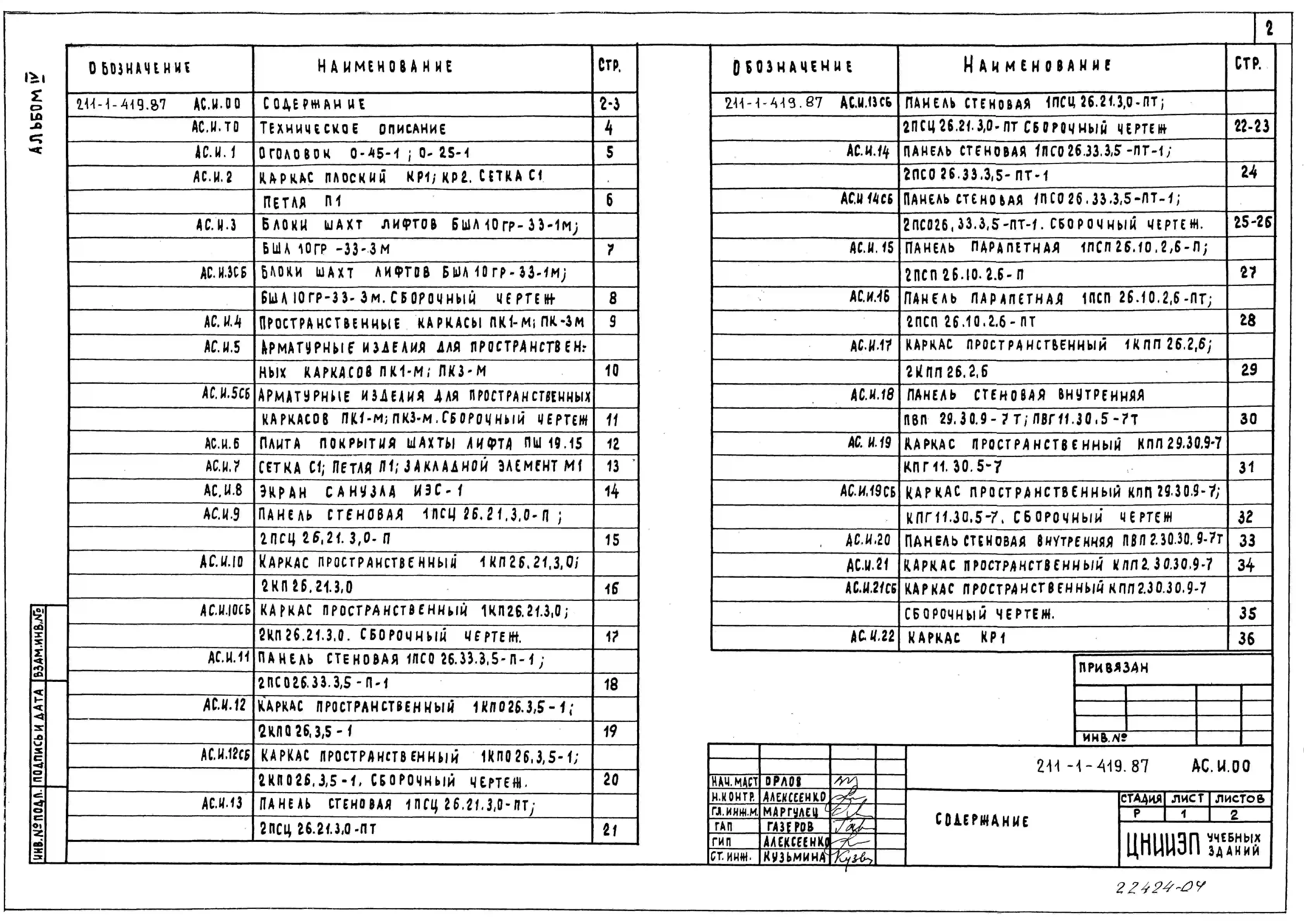 Типовой проект 211-1-419.87 Детские ясли–сад на 280 мест. Здание двухэтажное. Стены из трехслойных легкобетонных панелей по серии 1.090.1-1.