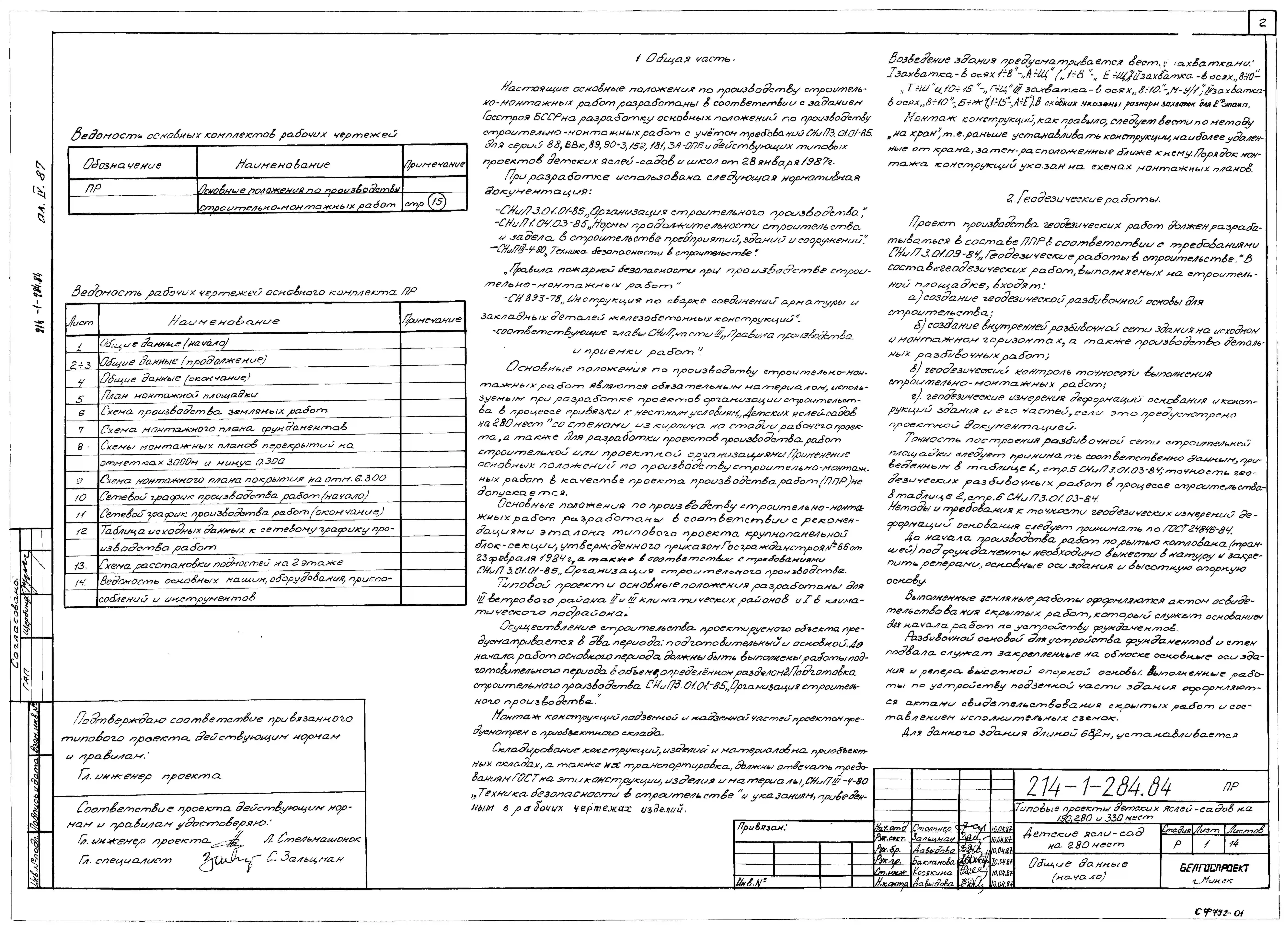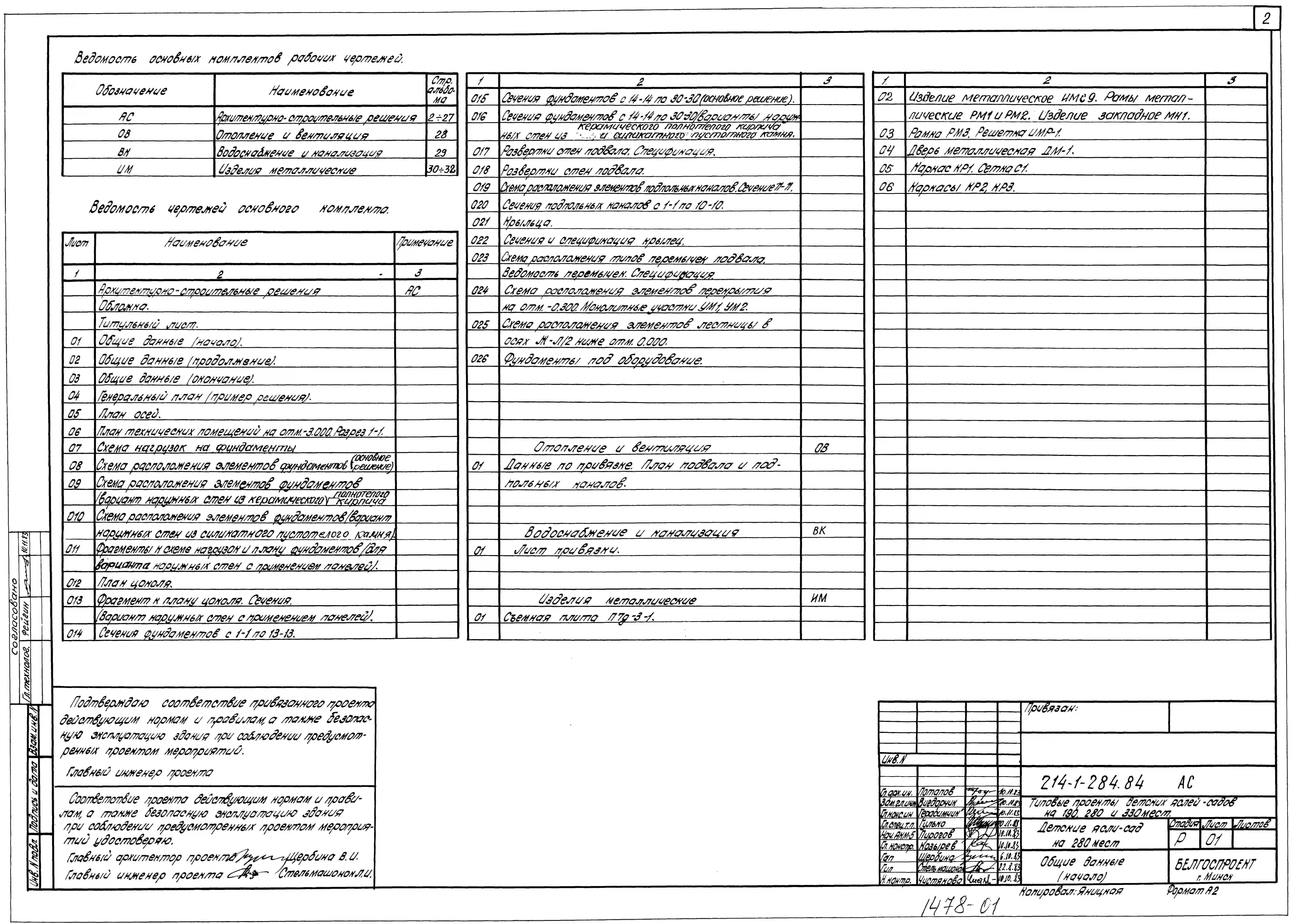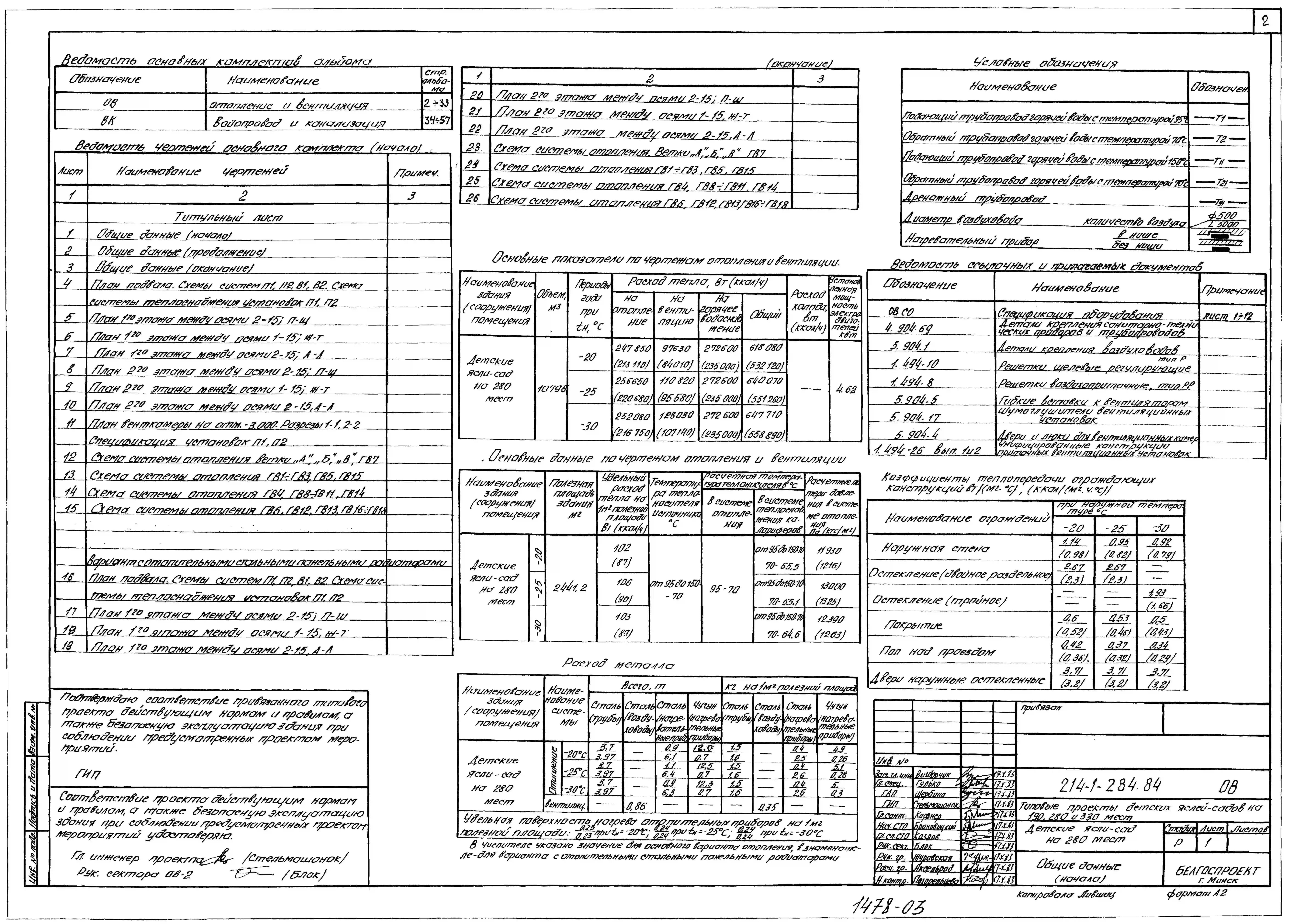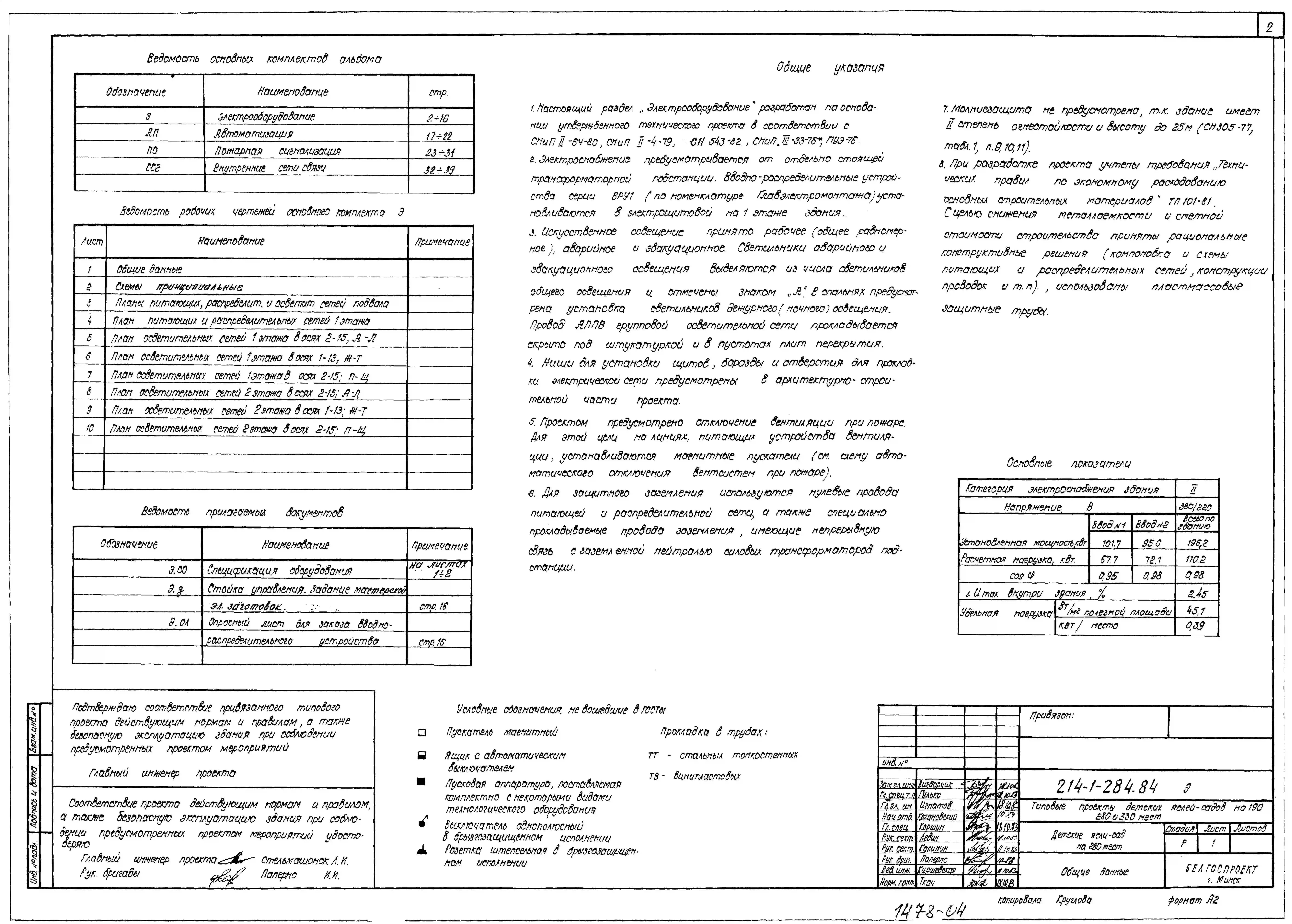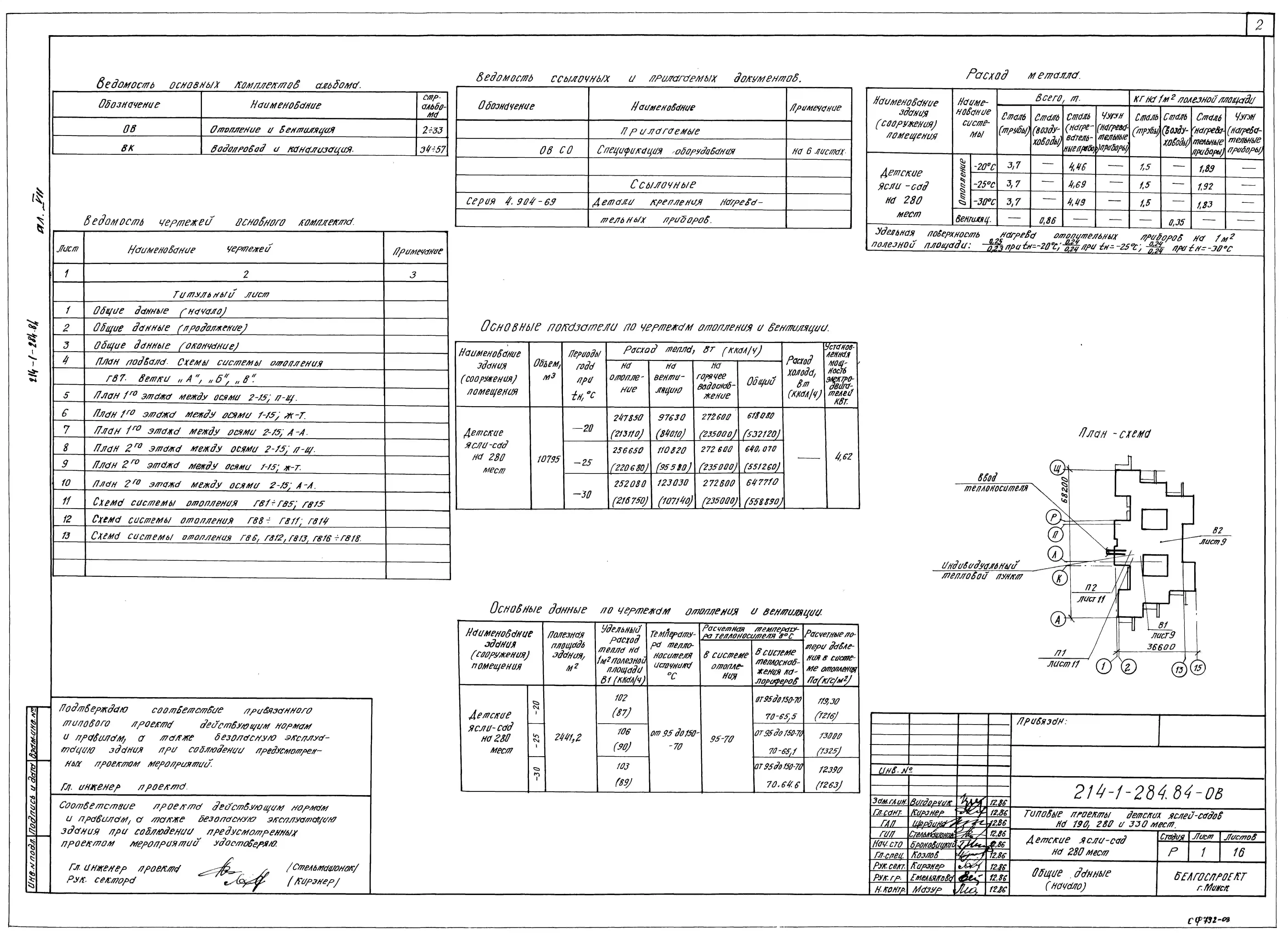 Типовой проект 214-1-284.84 Детские ясли–сад на 280 мест. Здание двухэтажное. Стены из кирпича.