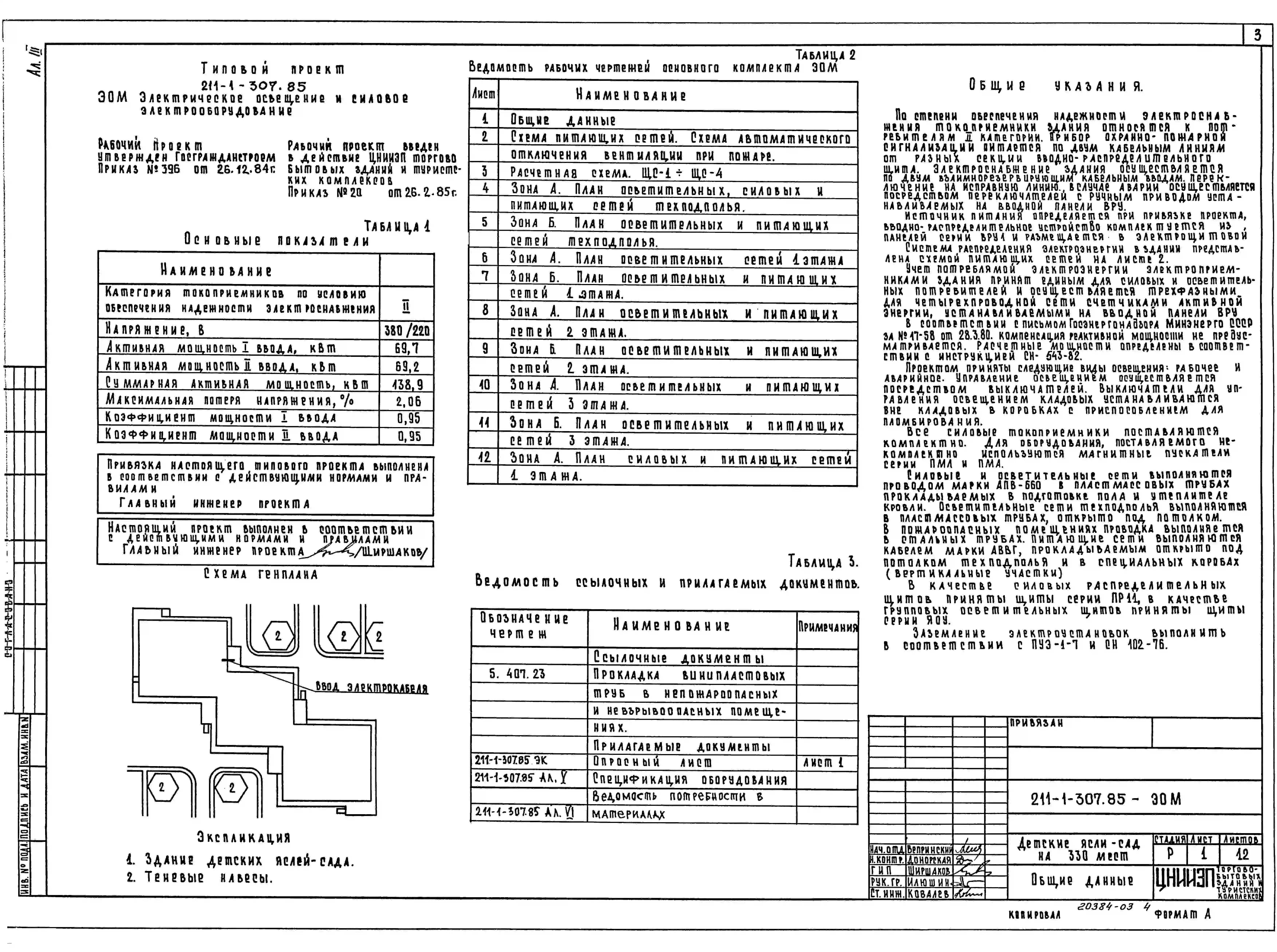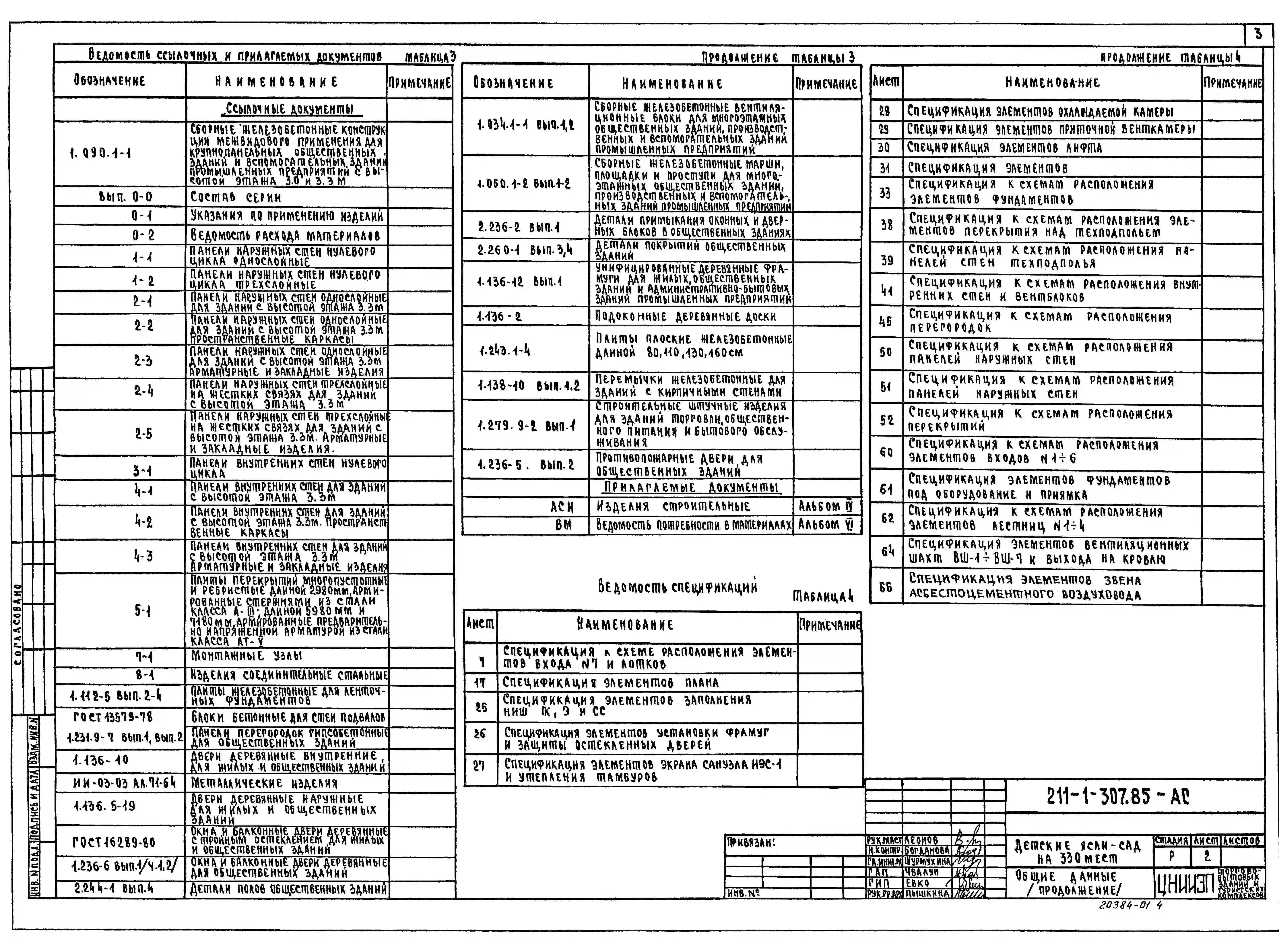 Типовой проект 211-1-307.85 Детские ясли–сад на 330 мест. Здание трехэтажное. Конструкции серии 1.090.1-1. Стены из керамзитобетонных панелей.