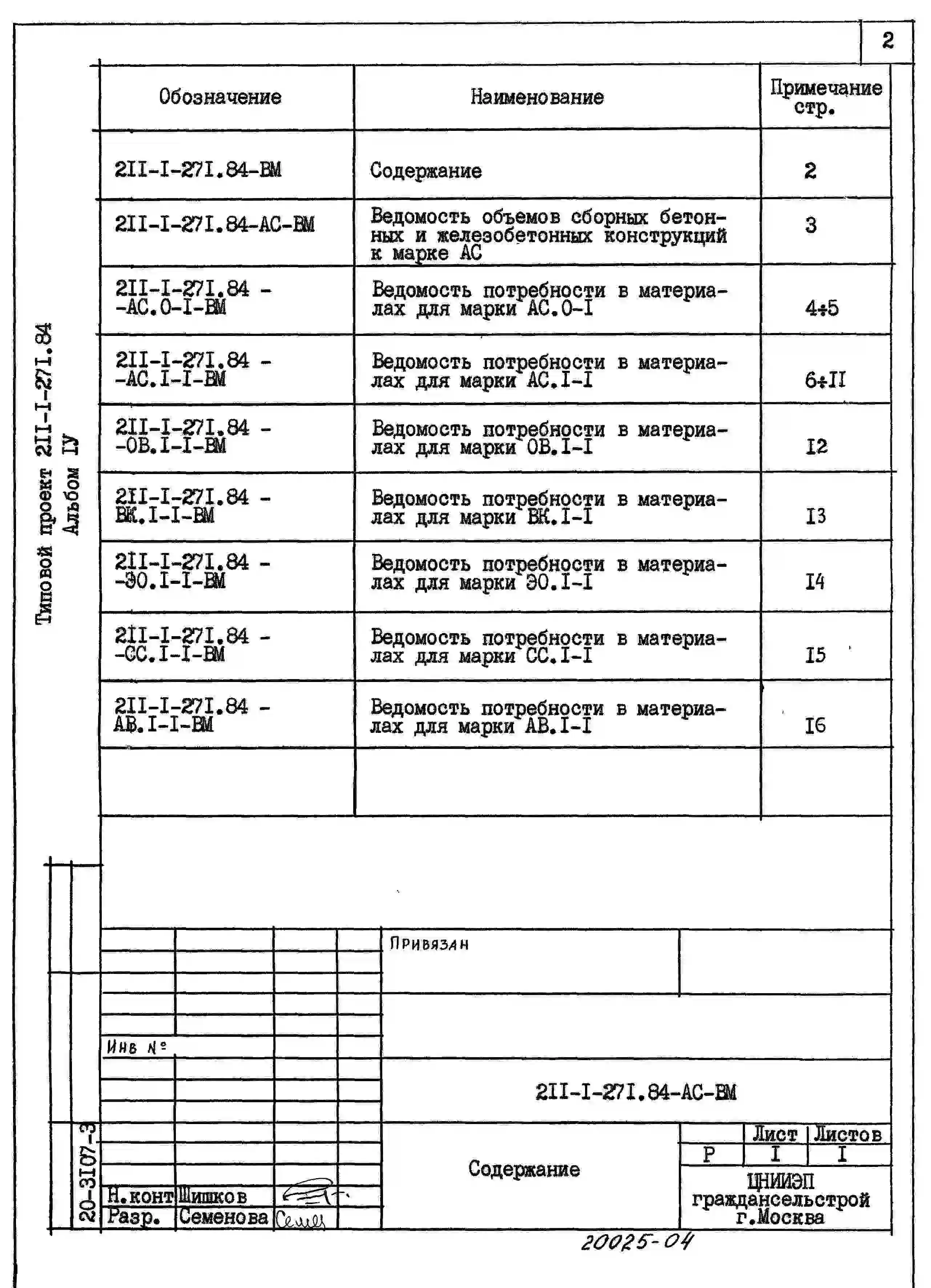 Типовой проект 211-1-271.84 Детские ясли-сад на 50 мест. Здание одноэтажное. Конструкция серии 1.090.1-1. Стены из однослойных легкобетонных панелей.