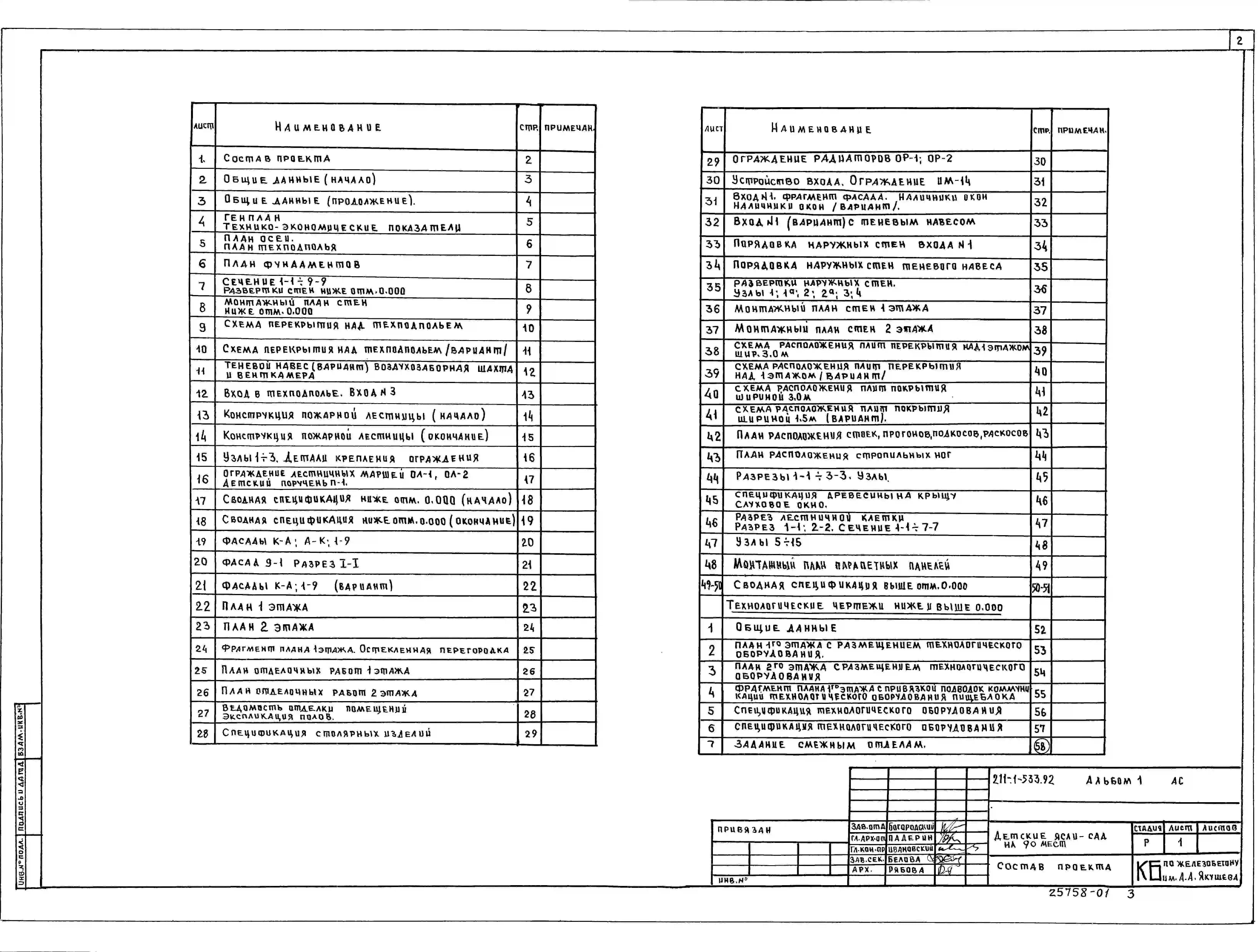 Типовой проект 211-1-533.92 Детские ясли-сад на 90 мест. Здание одноэтажное. Стены из трехслойных керамзитобетонных панелей.