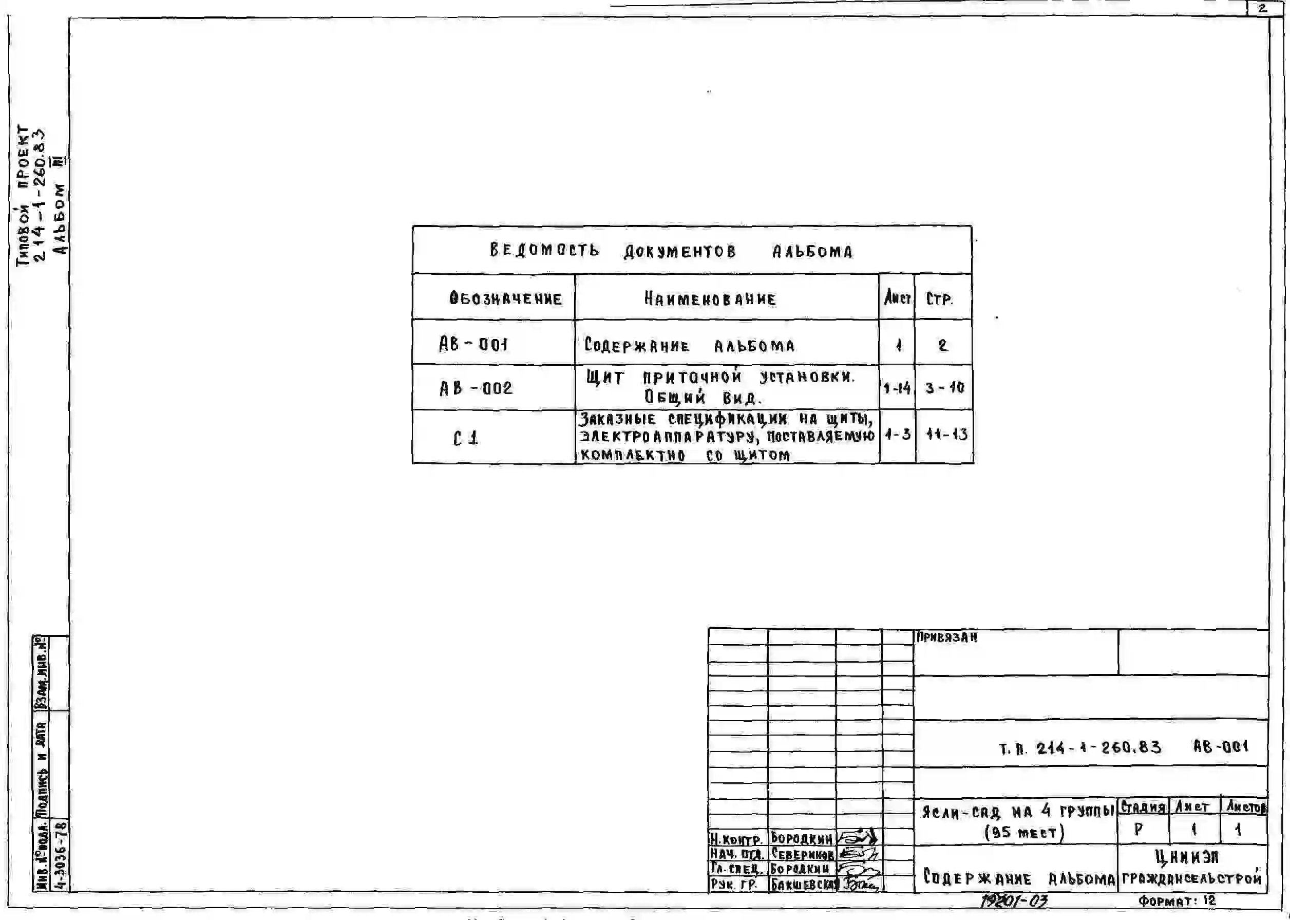 Типовой проект 214-1-260.83 Детские ясли - сад на 95 мест. Здание двухэтажное. Стены из кирпича.