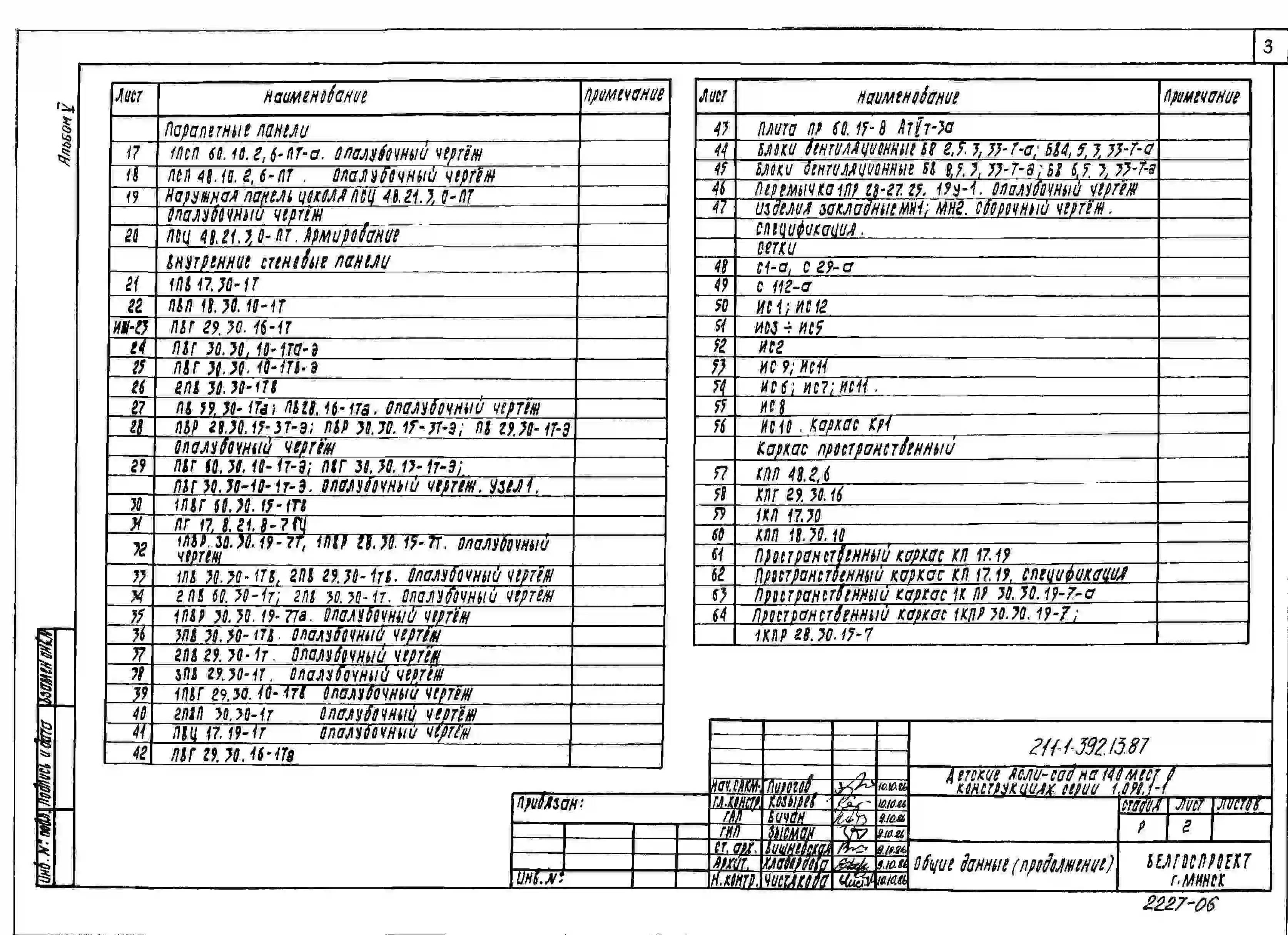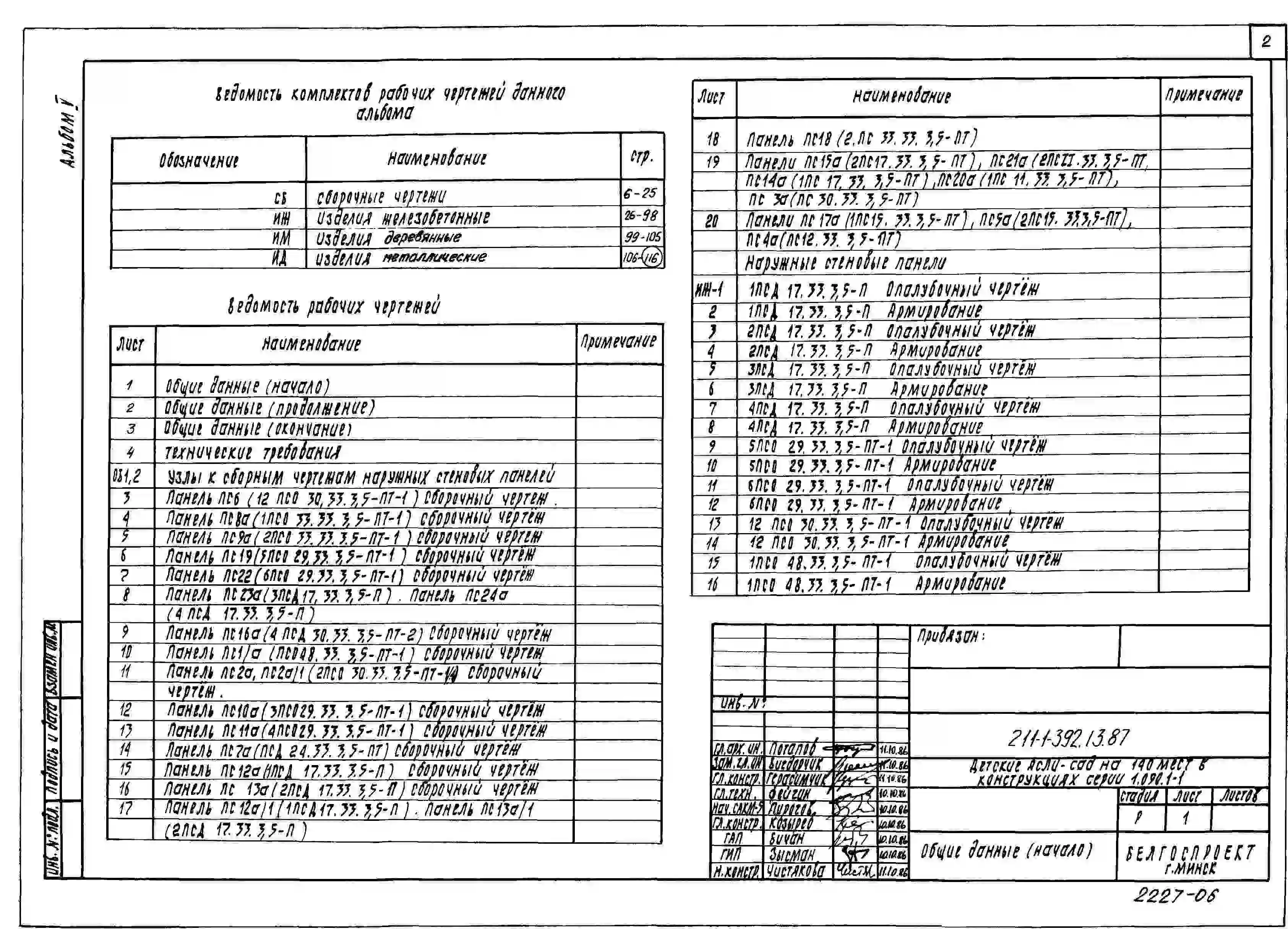 Типовой проект 211-1-392.13.87 Детские ясли-сад на 140 мест в конструкциях серии 1.090.1-1 (для строительства в Белорусской ССР)