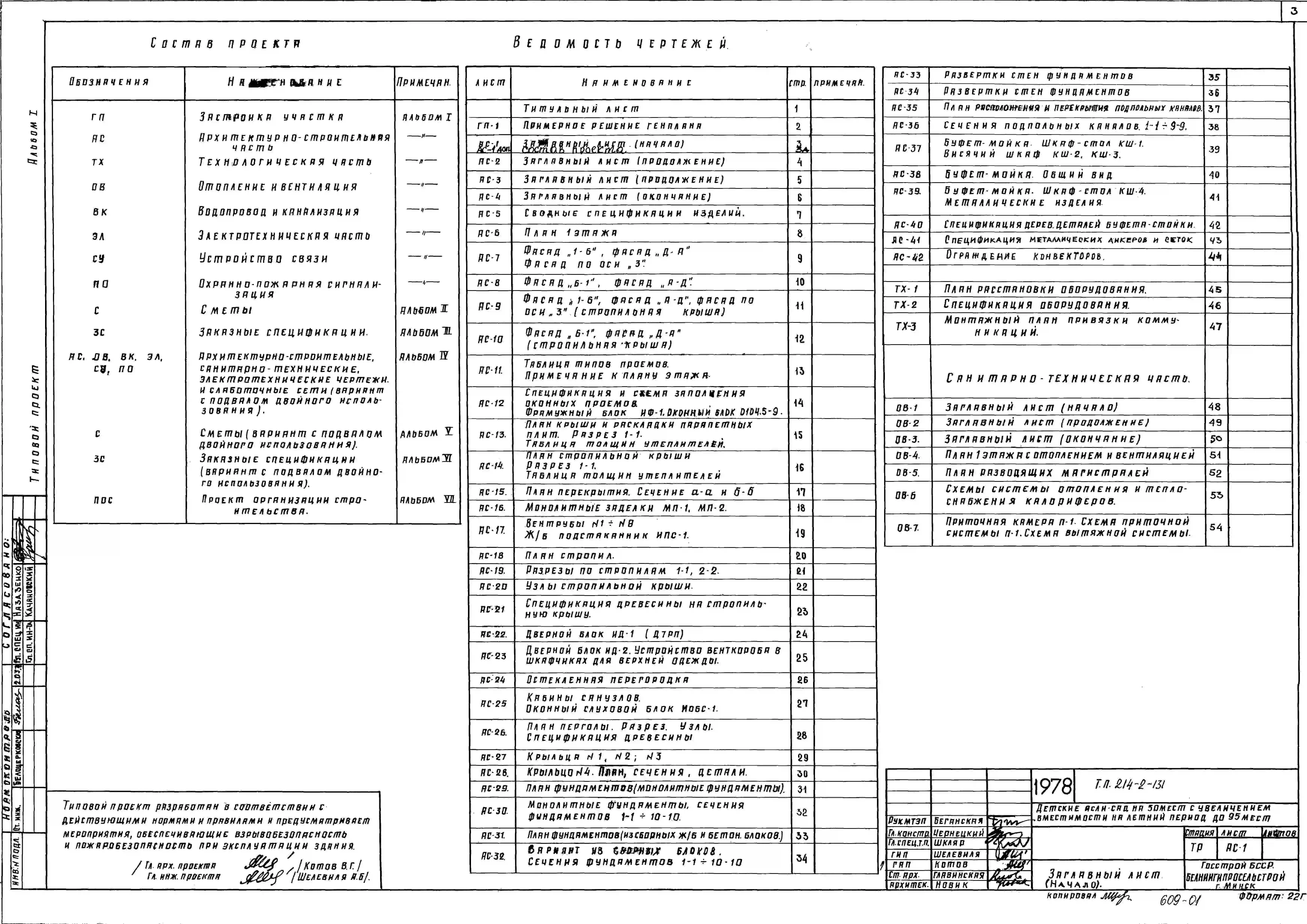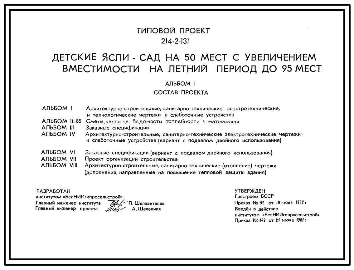 Типовой проект 214-2-131 Детские ясли-сад на 50 мест с увеличением вместимости на летний период до 95 мест, для сельского строительства во 2В климатическом подрайоне