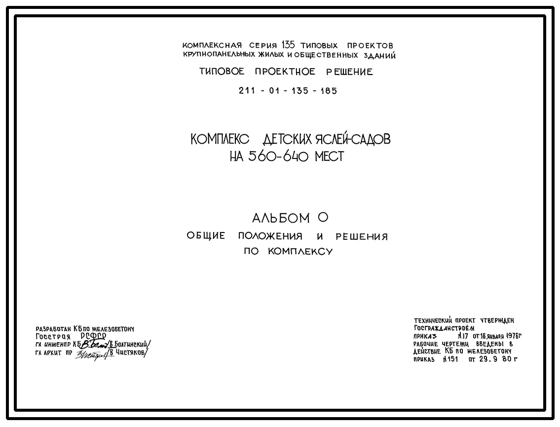 Типовой проект 211-01-135-185 Комплекс детских садов-яслей на 560-640 мест