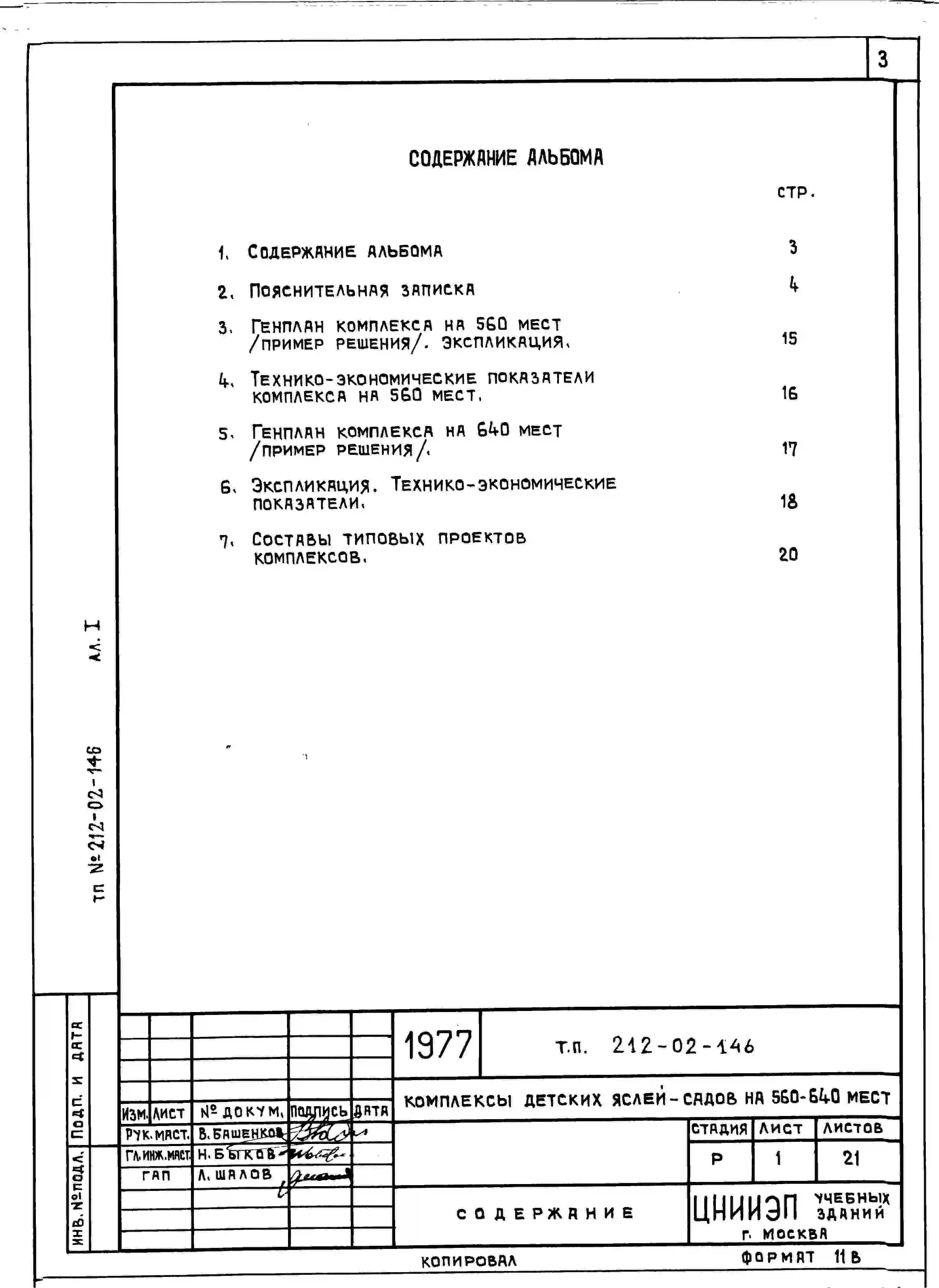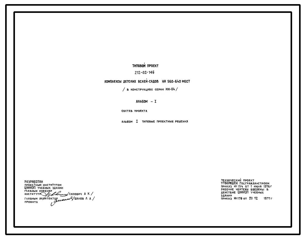 Типовой проект 212-02-146 Комплексы детских яслей-садов на 560-640 мест.