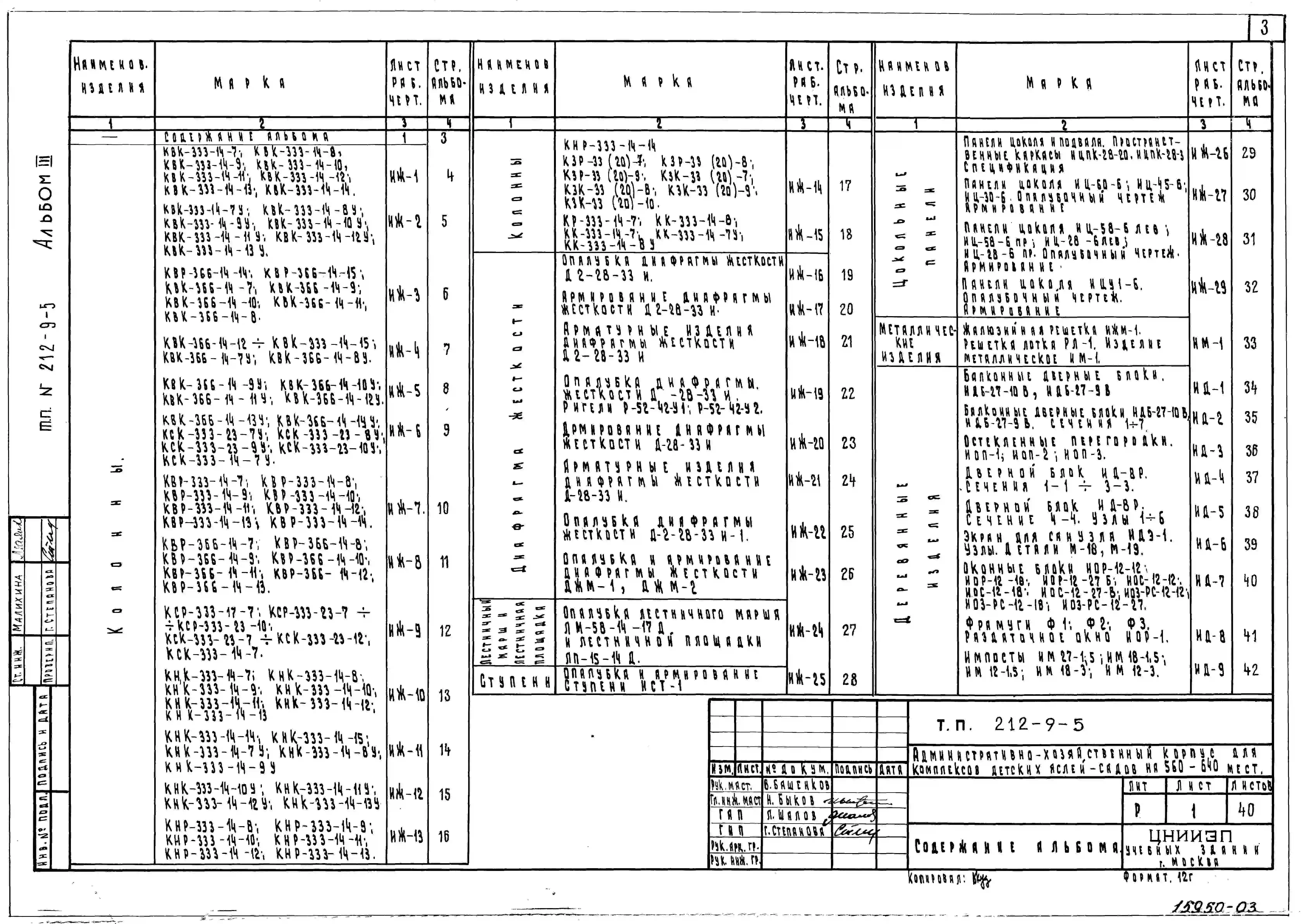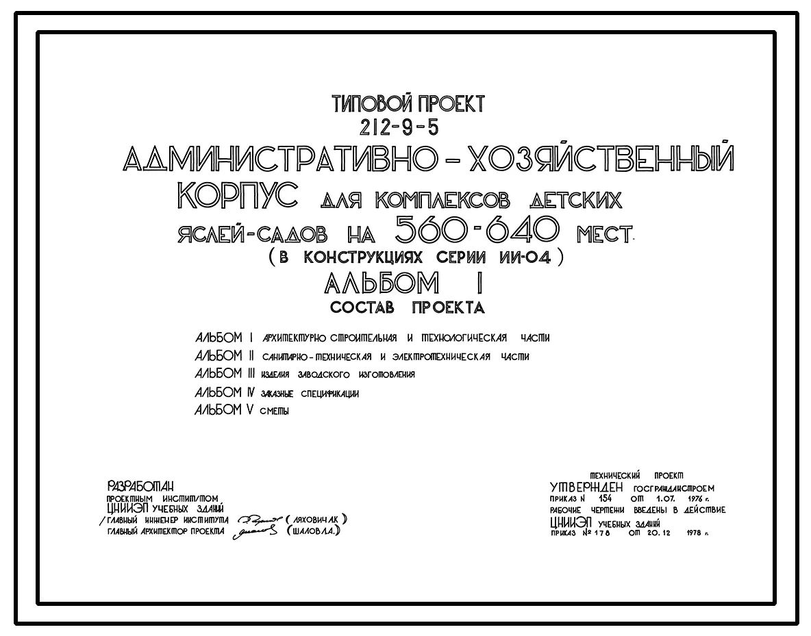 Типовой проект 212-9-5 Административно-хозяйственный корпус для комплексов детских яслей-садов на 560-640 мест. Для строительства в IВ климатическом подрайоне, II и III климатических районах.