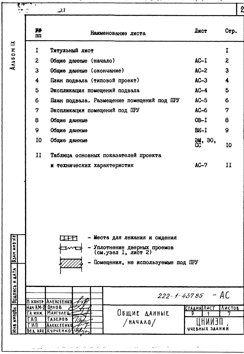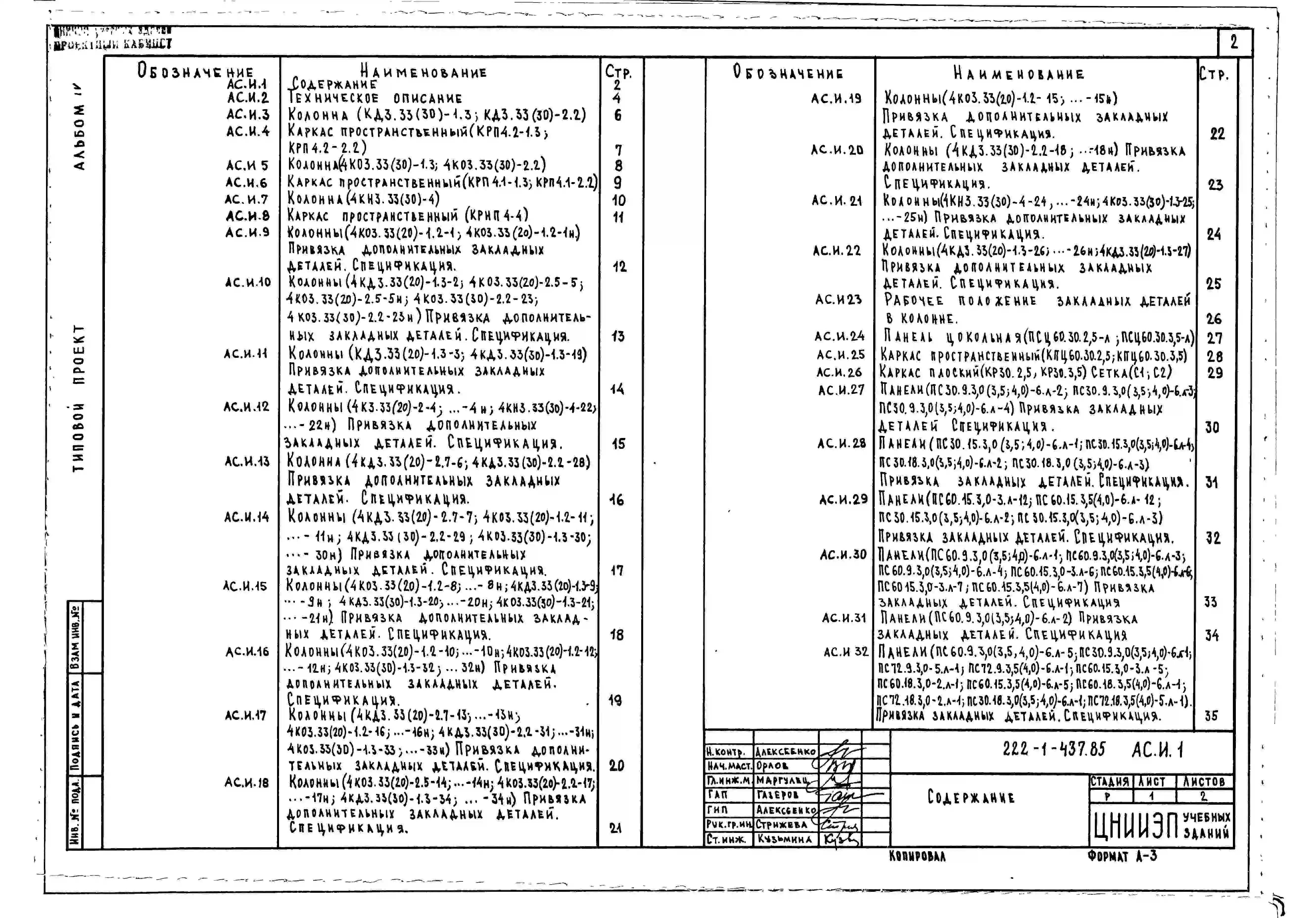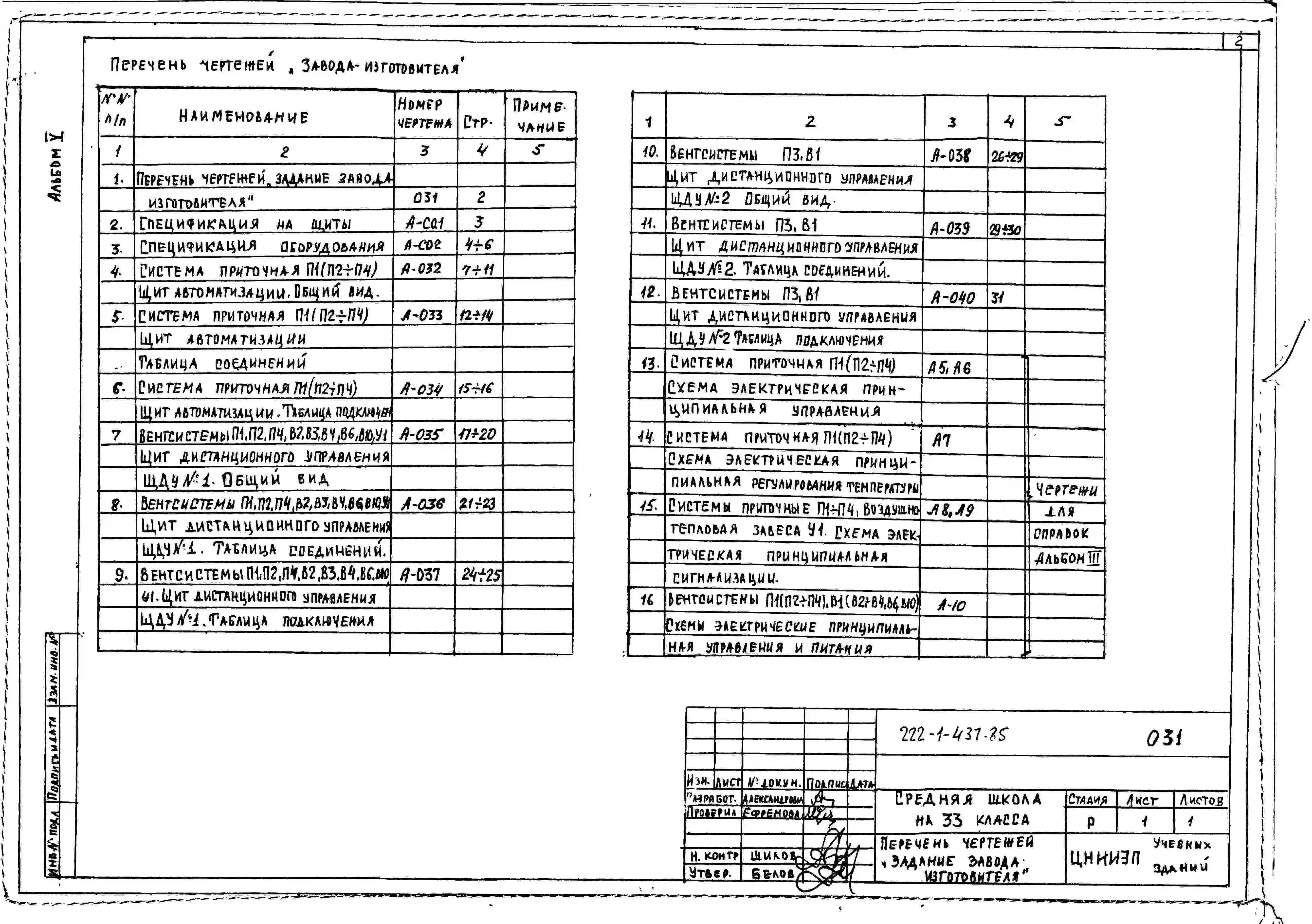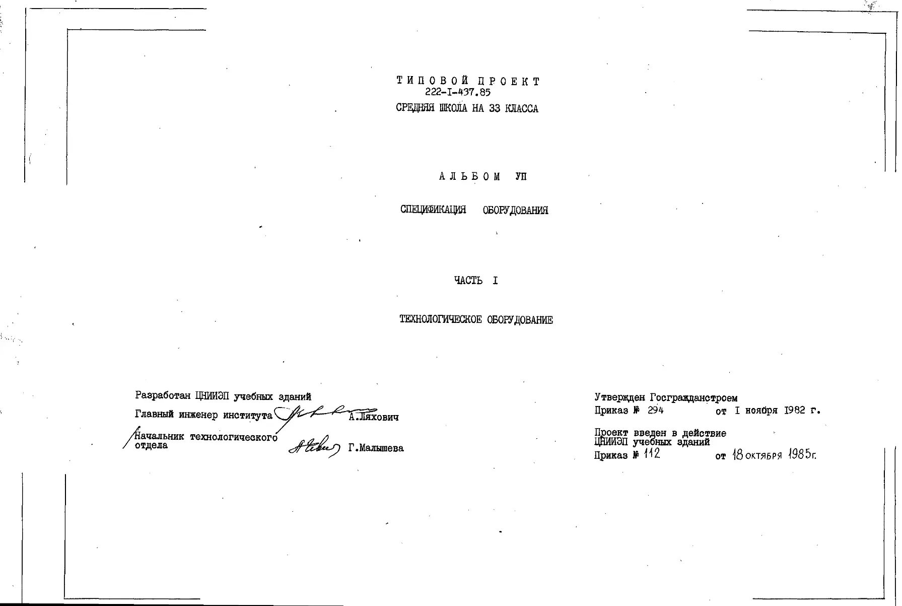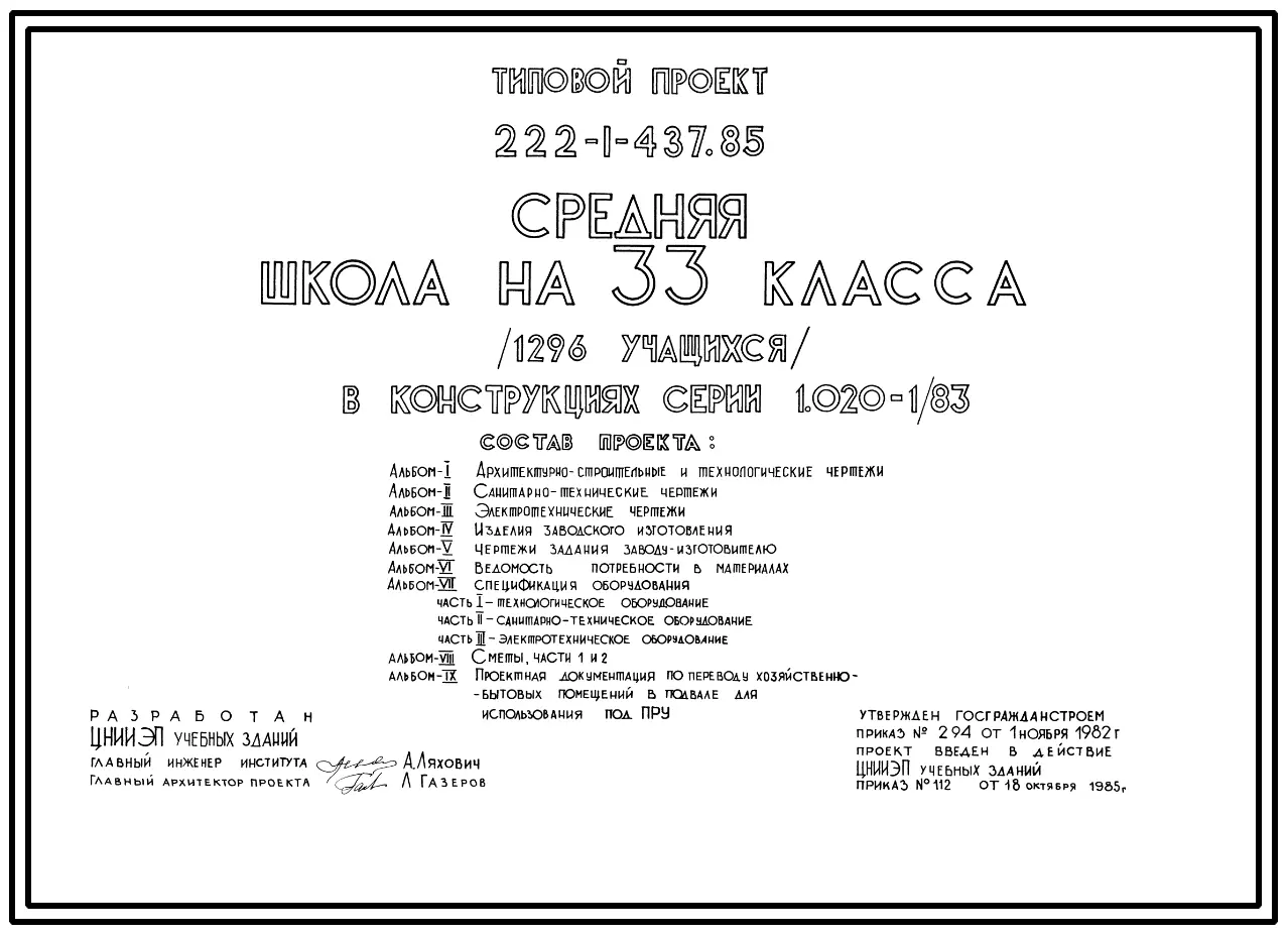 Типовой проект 222-1-437.85 Средняя школа на 33 класса (1296 учащихся). Конструкции по серии 1.020-1/83. Стены из однослойных керамзитобетонных панелей.