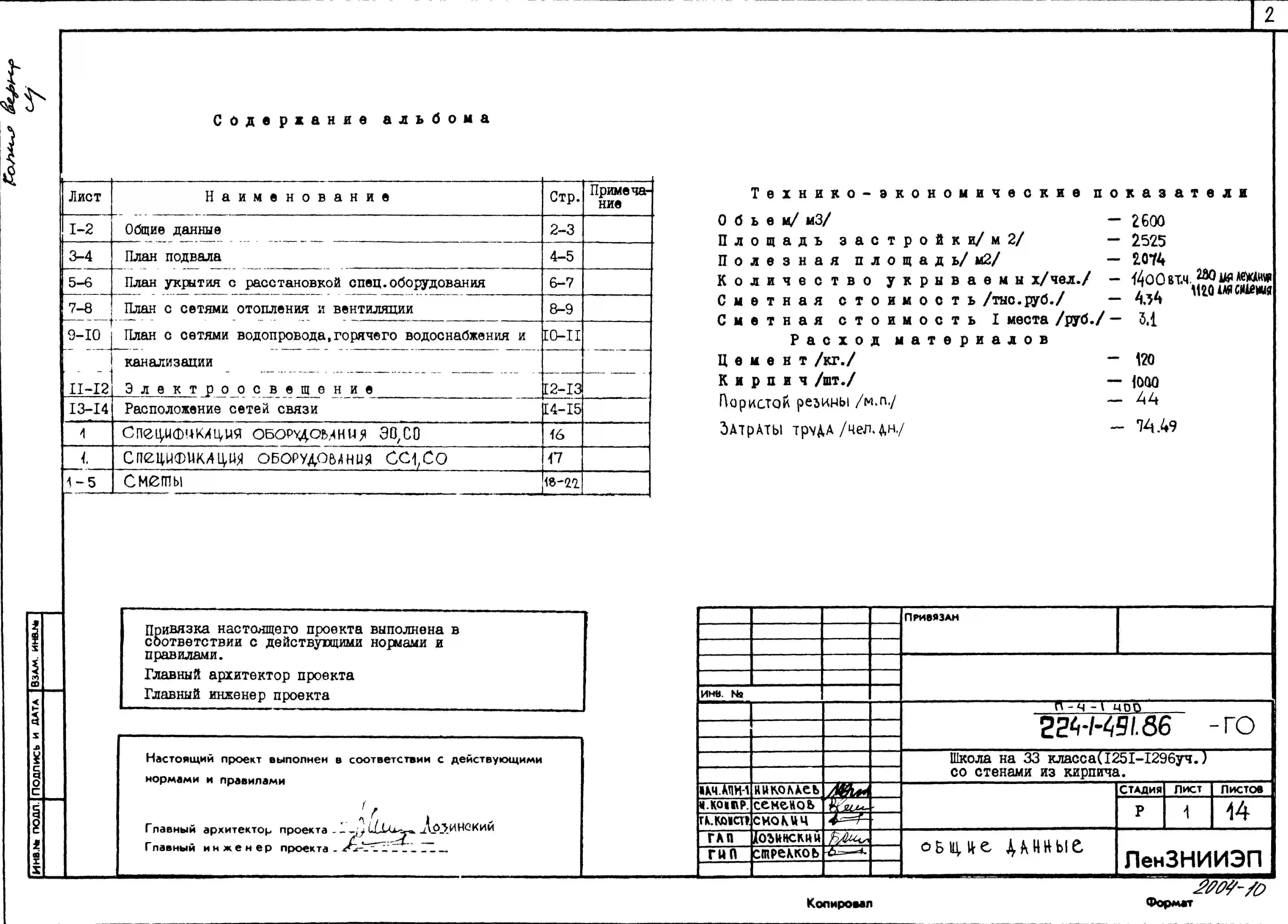 Типовой проект 224-1-491.86 Школа на 33 класса (1251-1296 учащихся) со стенами из кирпича