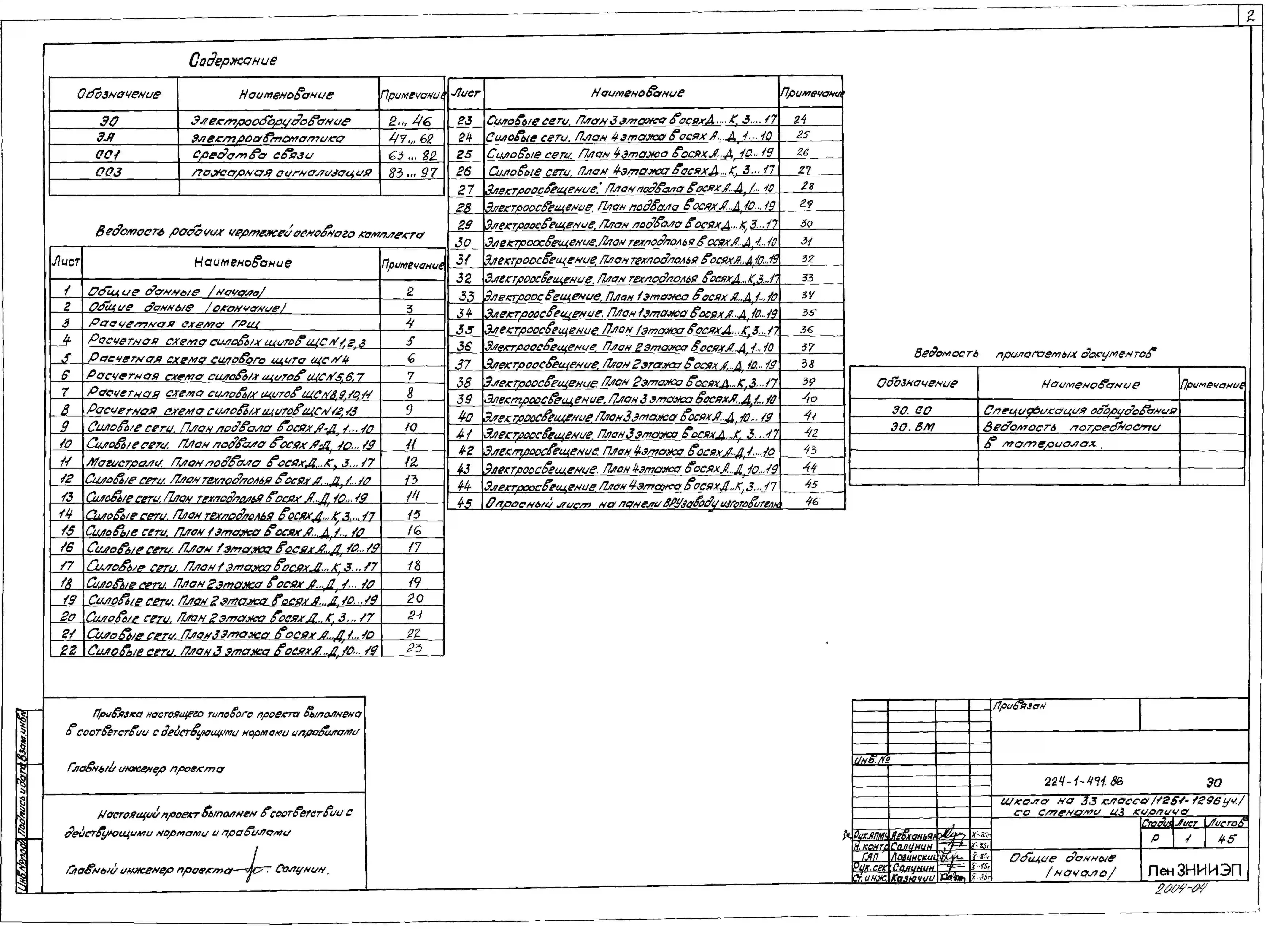 Внимание ! Паспорт проекта не является типовым проектом и не заменяет его.