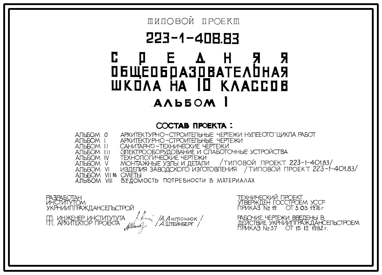 Типовой проект 223-1-408.83 Средняя общеобразовательная школа на 10 классов (на 332 учащихся)