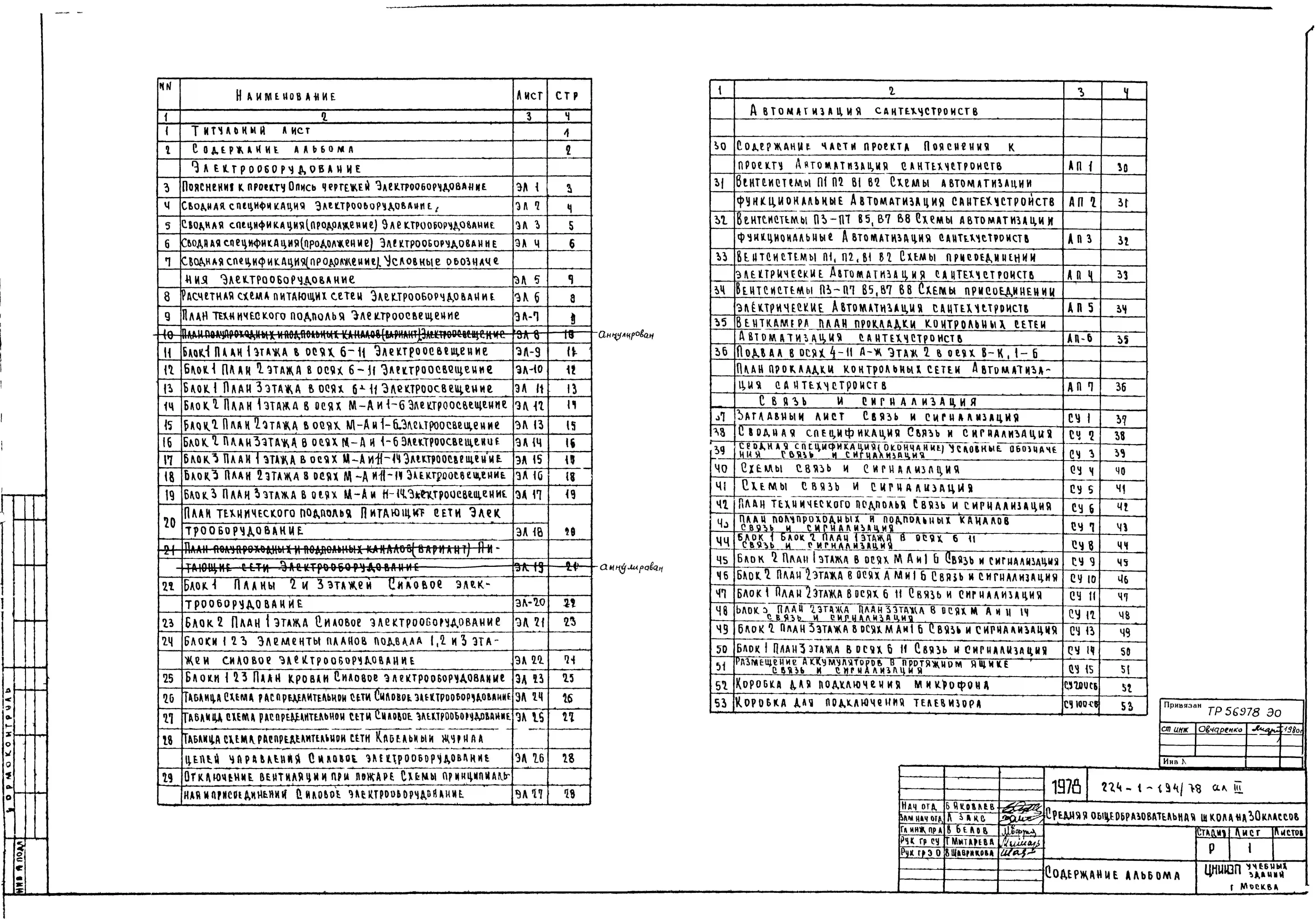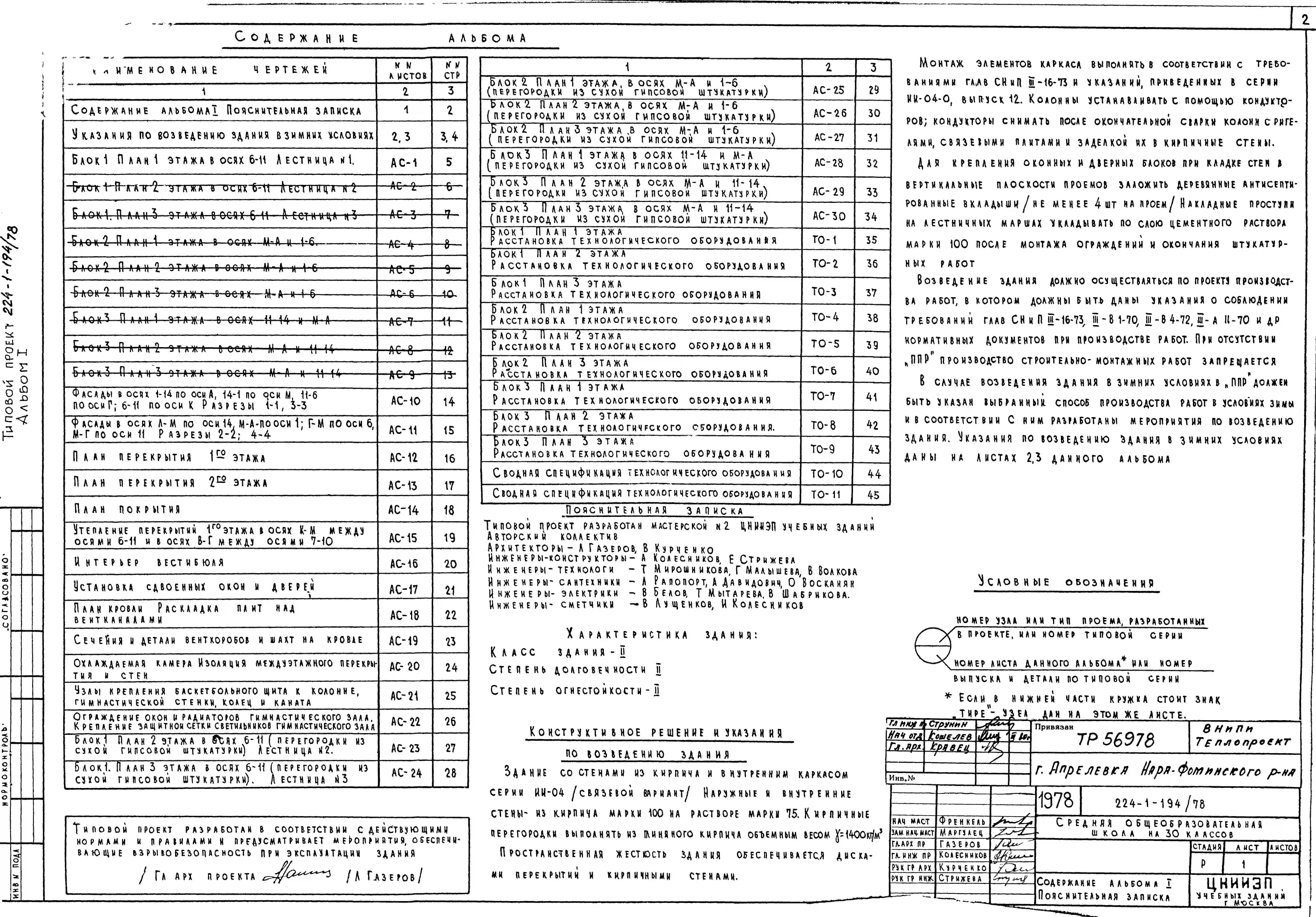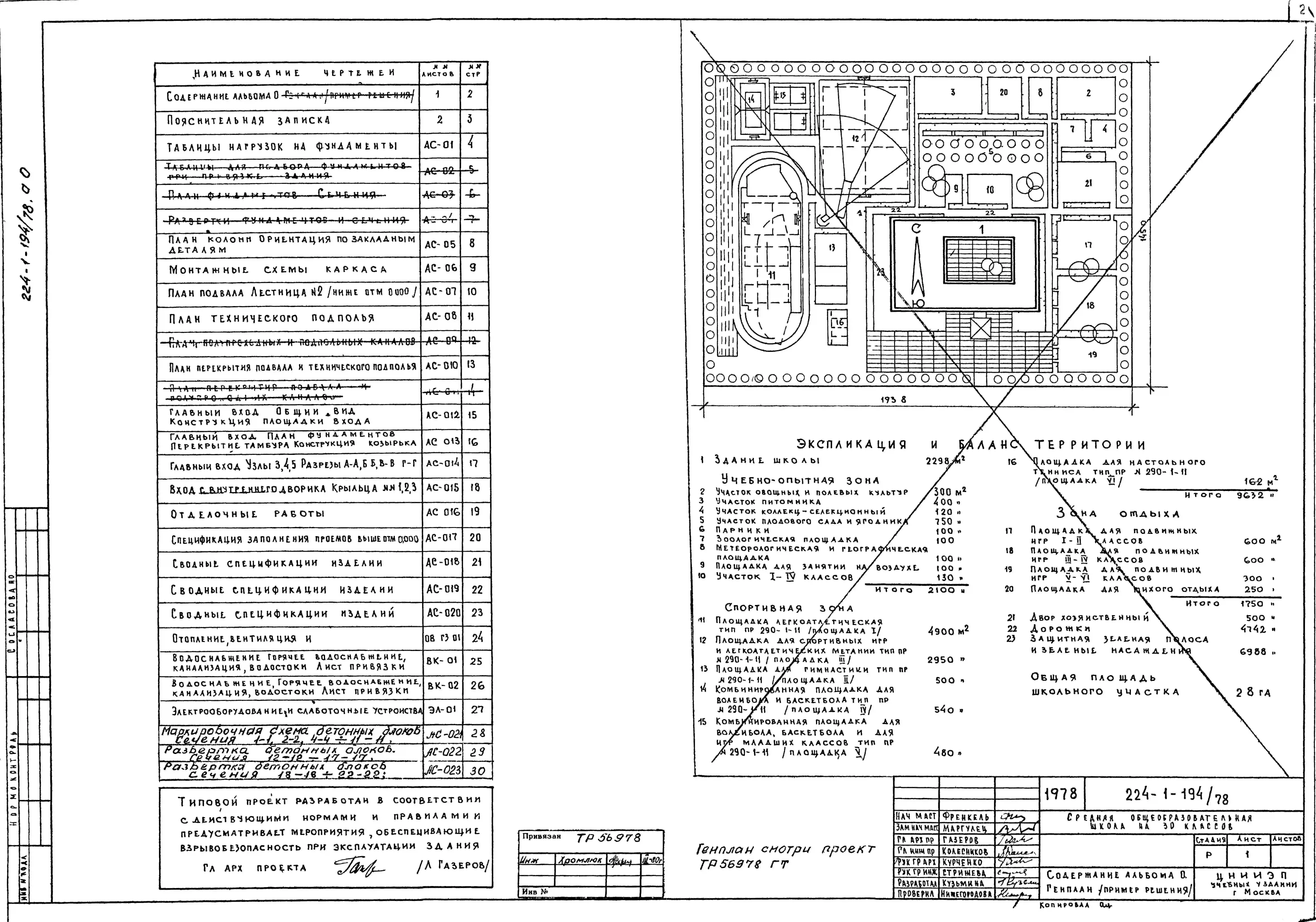 Типовой проект 224-1-194/78 Средняя общеобразовательная школа на 30 классов (1176 учащихся)