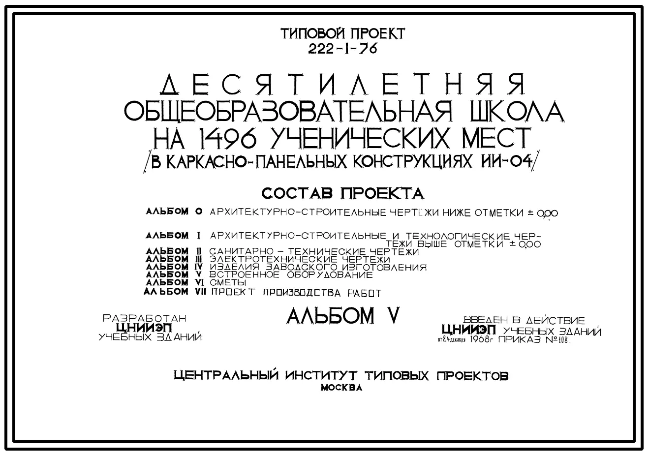 Типовой проект 222-1-76 Десятилетняя общеобразовательная школа на 1496 ученических мест, для строительства во 2и 3 строительно-климатических зонах.