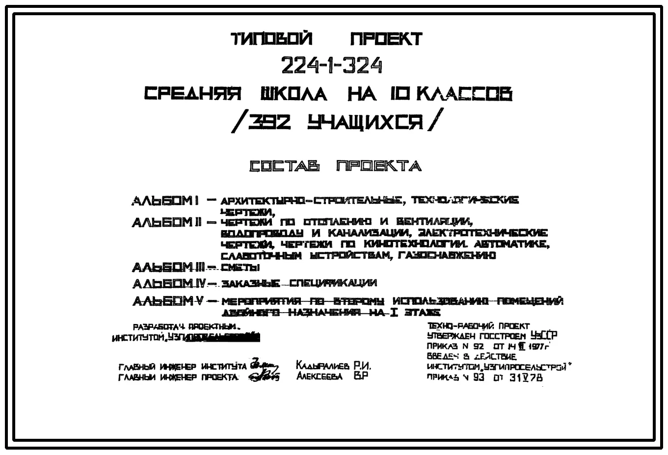 Типовой проект 224-1-324 Средняя школа на 10 классов (392 учащихся) для строительства в 4А и 4Г климатических подрайонах