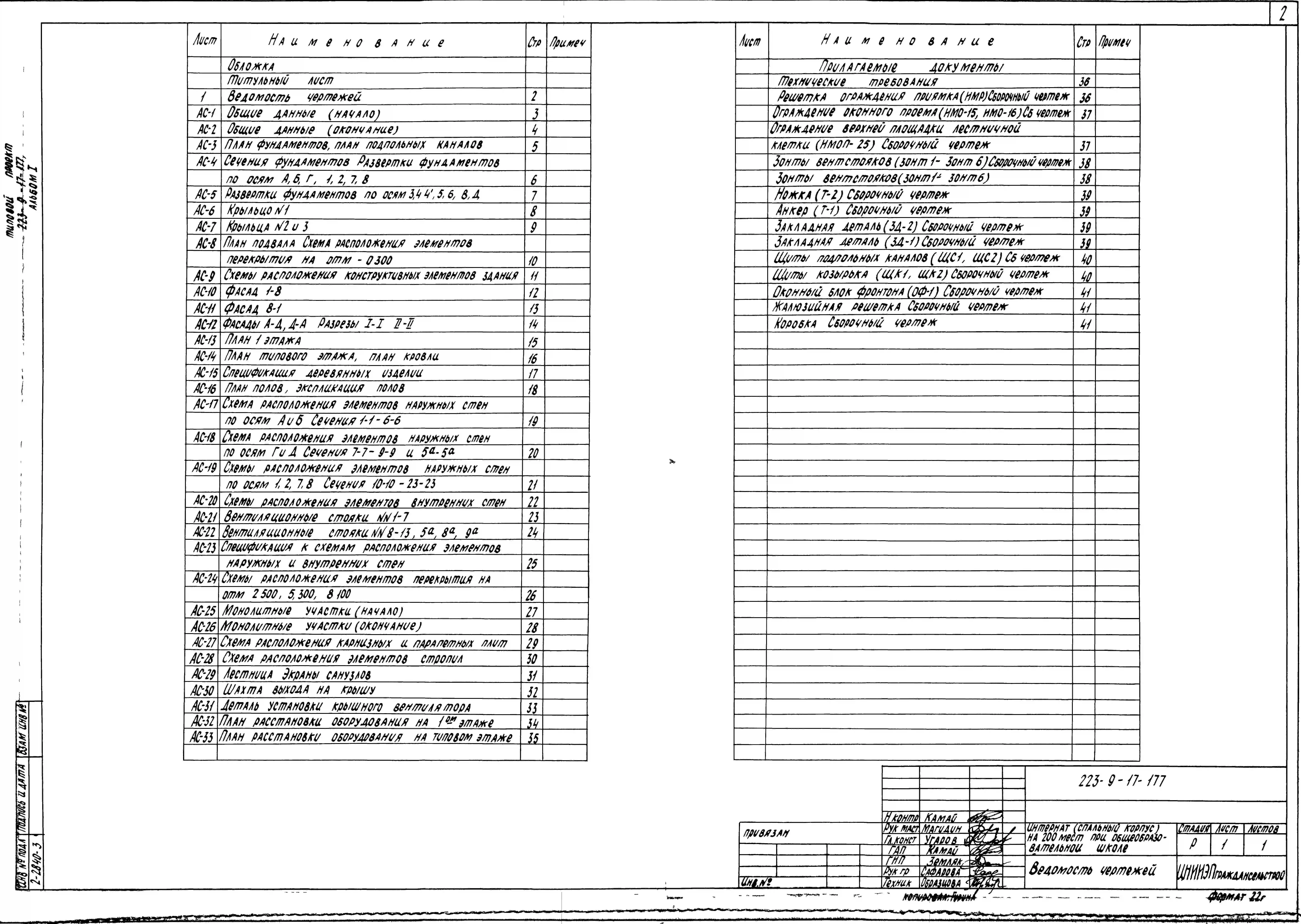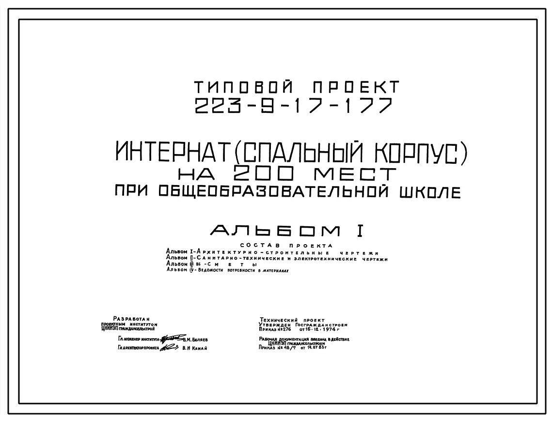 Типовой проект 223-9-17-177 Интернат (спальный корпус) на 200 мест при общеобразовательной школе. Здание трехэтажное. Конструкции серии 17. Стены из крупных легкобетонных блоков.