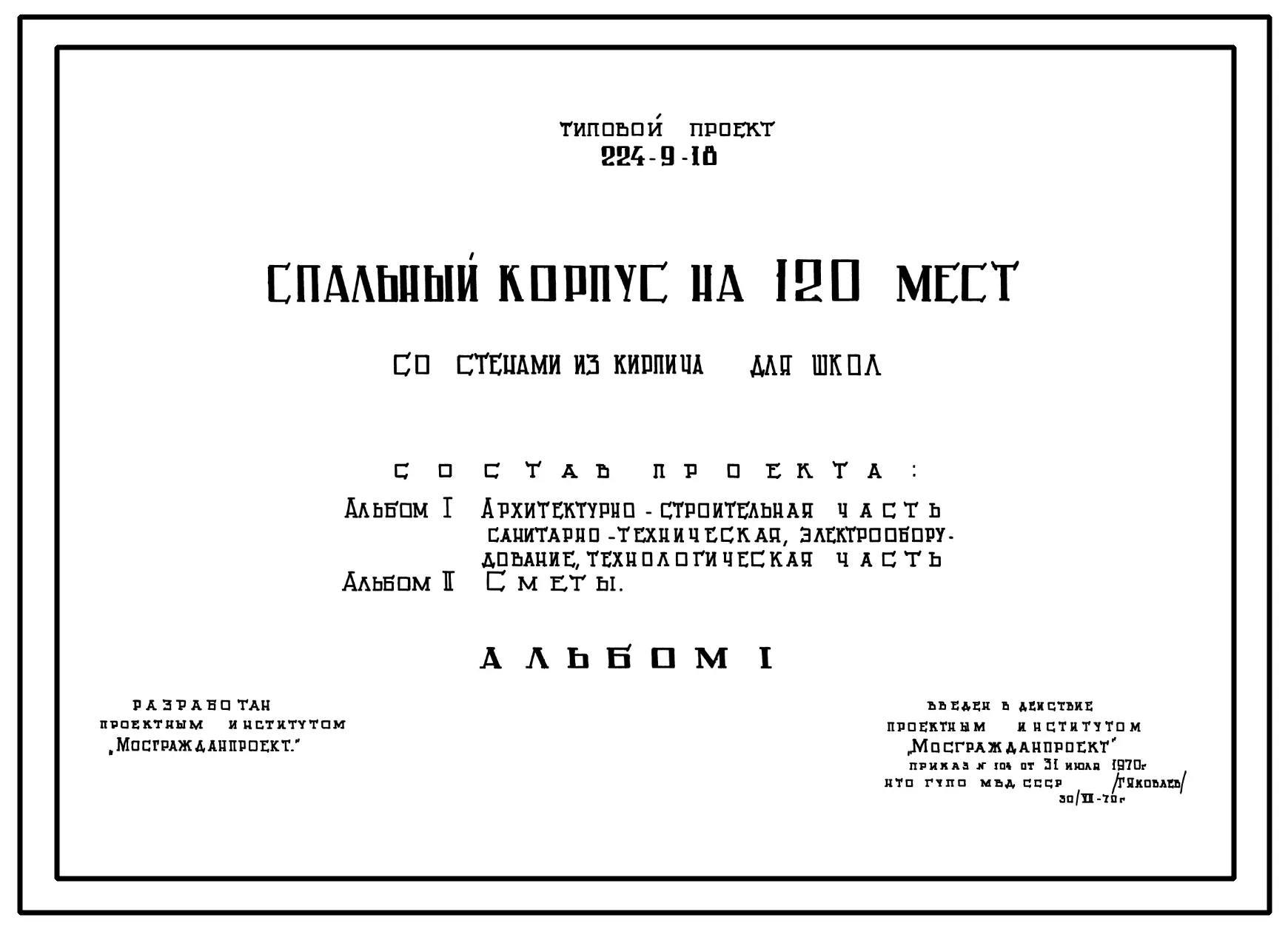Типовой проект 224-9-18 Спальный корпус на 120 мест для школ.
