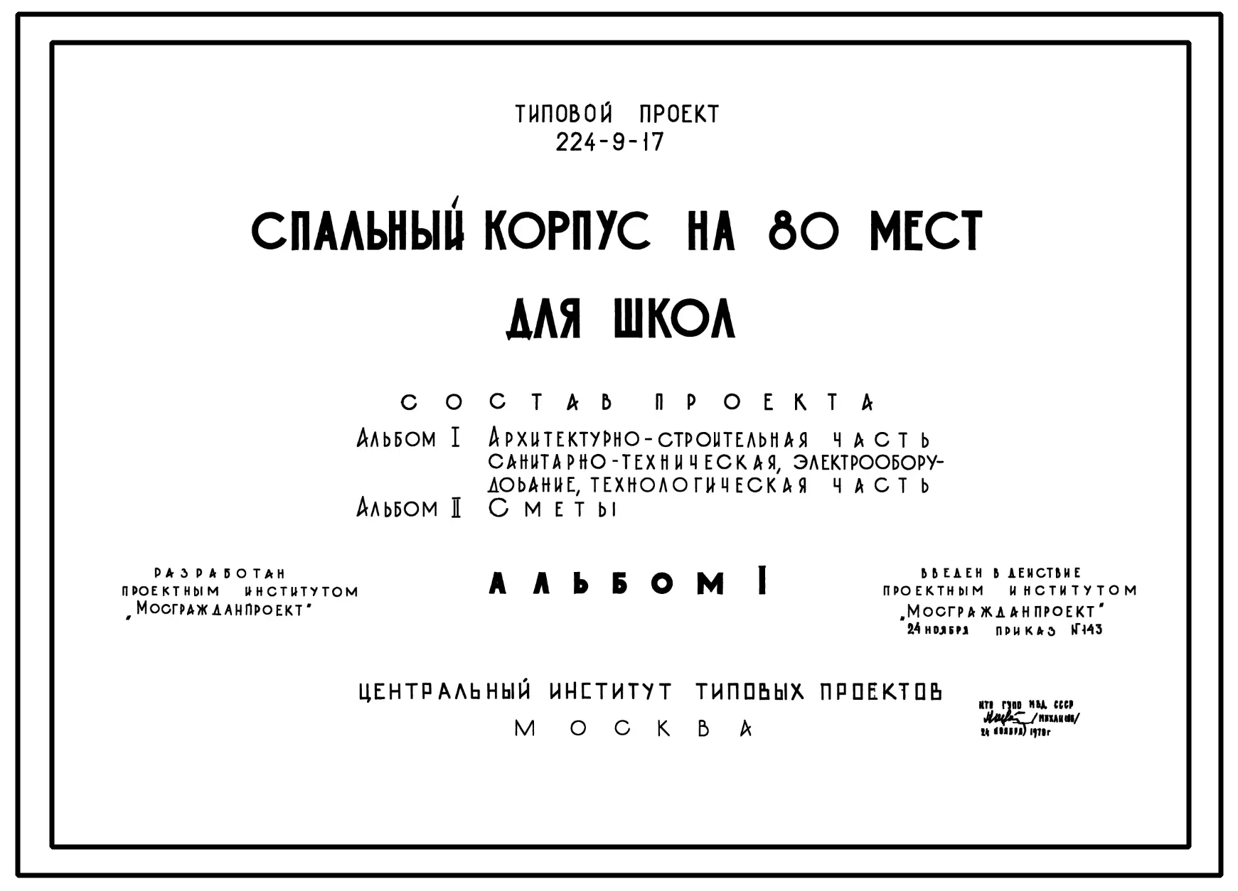 Типовой проект 224-9-17 Спальный корпус на 80 мест для школ. Для строительства во 2 и 3 строительно-климатических зонах.