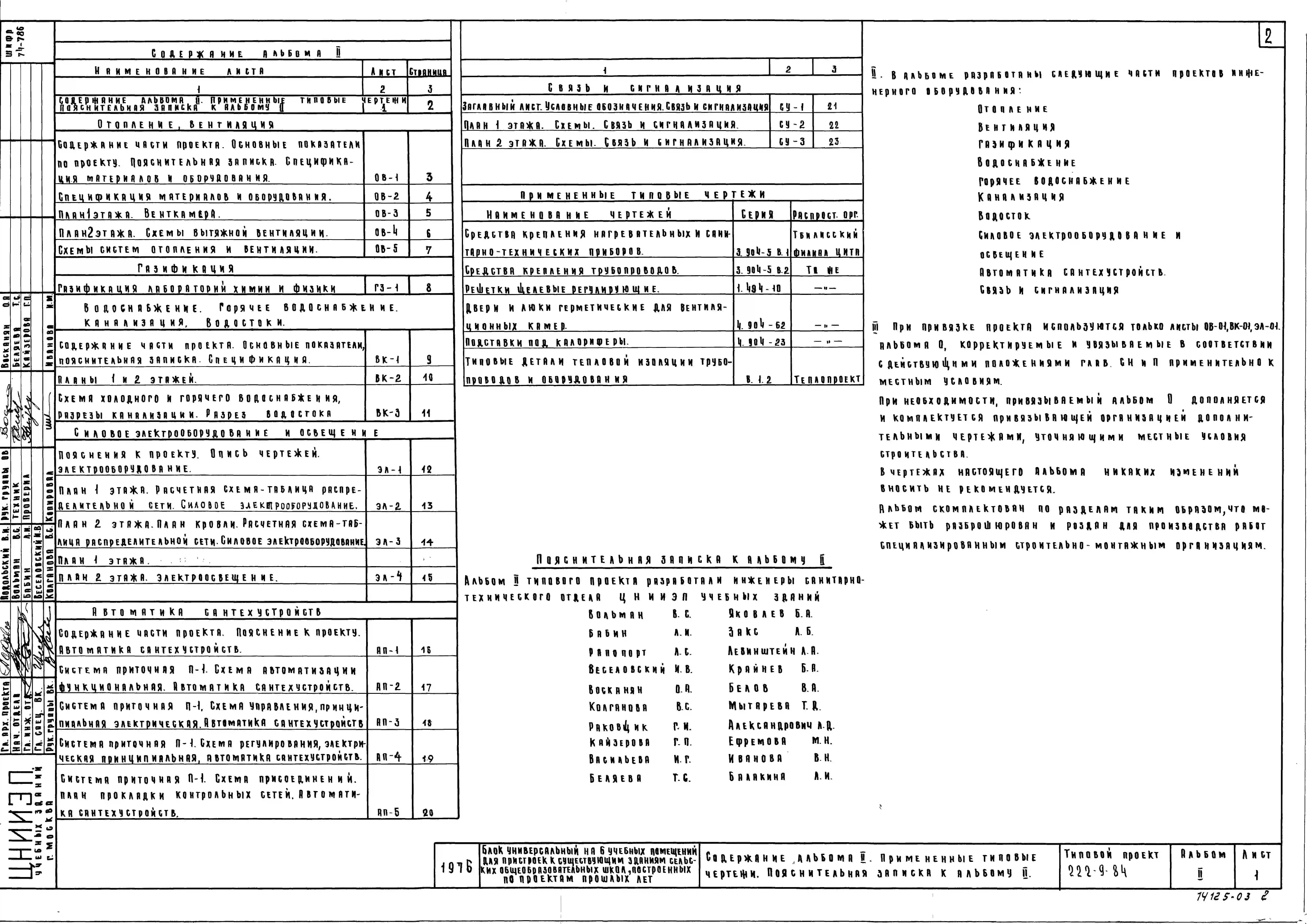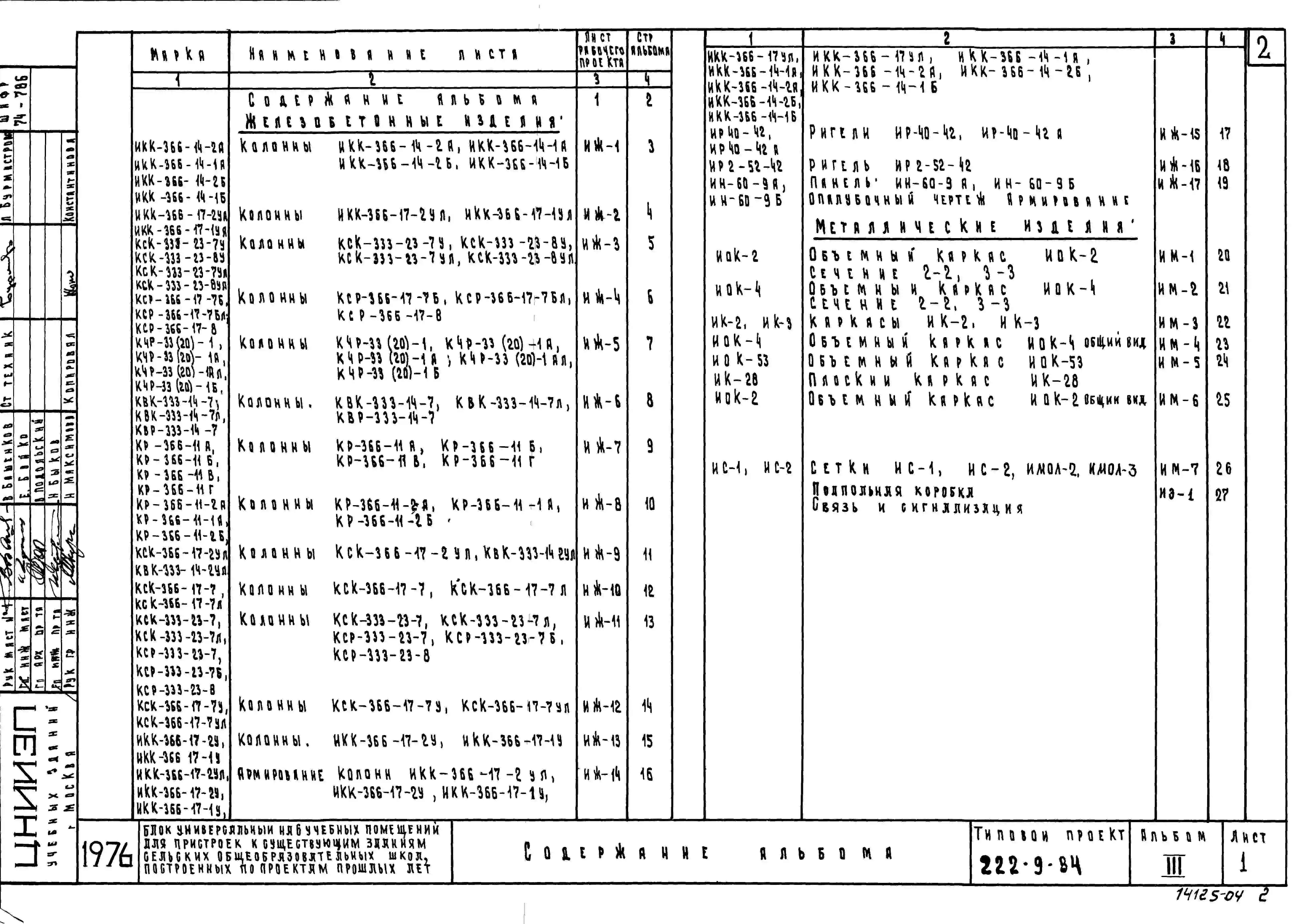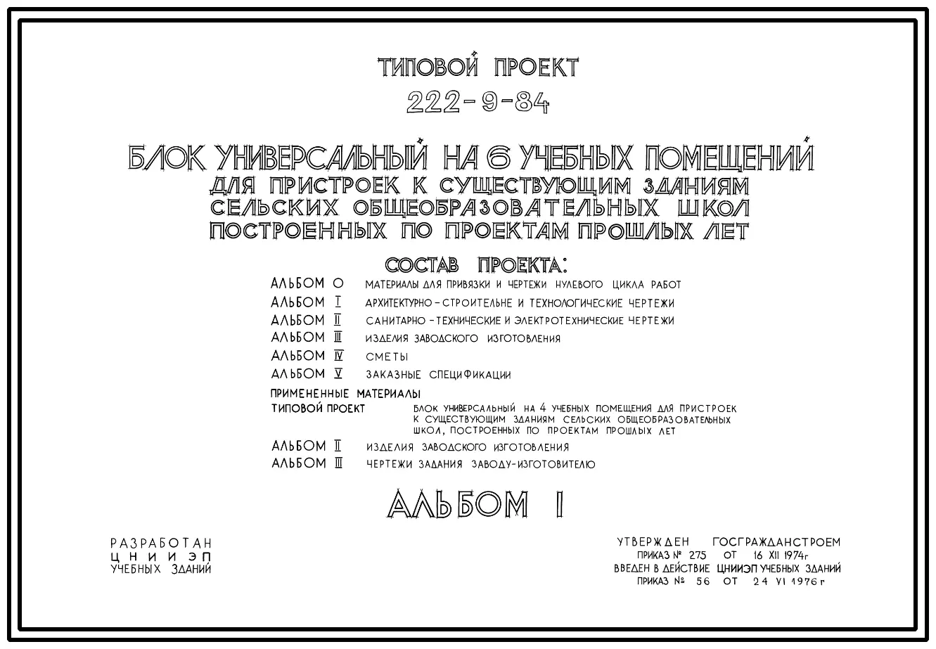 Типовой проект 222-9-84 Блок универсальный на 6 учебных помещения для пристроек к существующим зданиям школ. Здание двухэтажное. Каркас сборный железобетонный серии ИИ-04. Стены из навесных керамзитобетонных панелей.