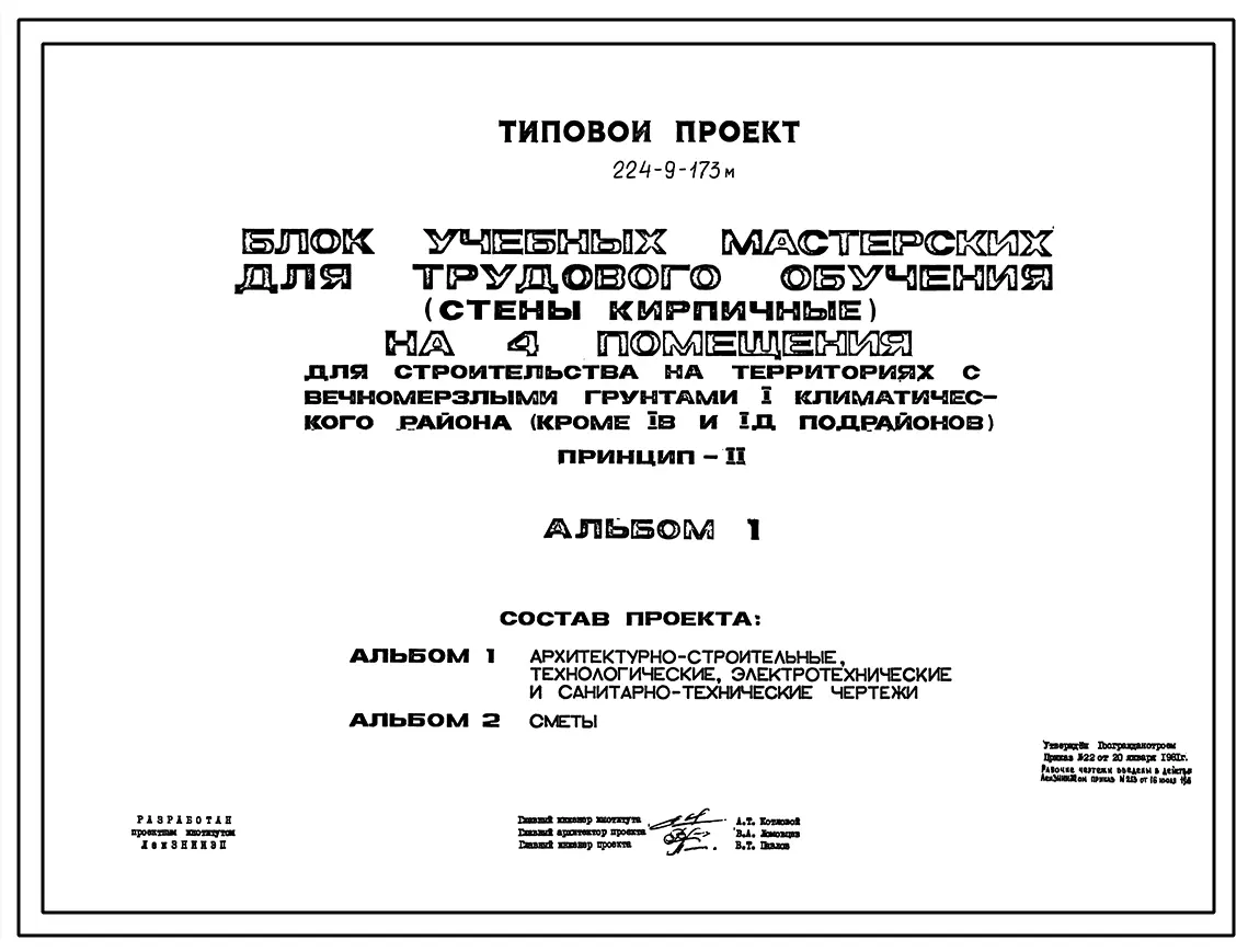 Типовой проект 224-9-173м Блок учебных мастерских для трудового обучения (стены кирпичные) на 4 помещения.