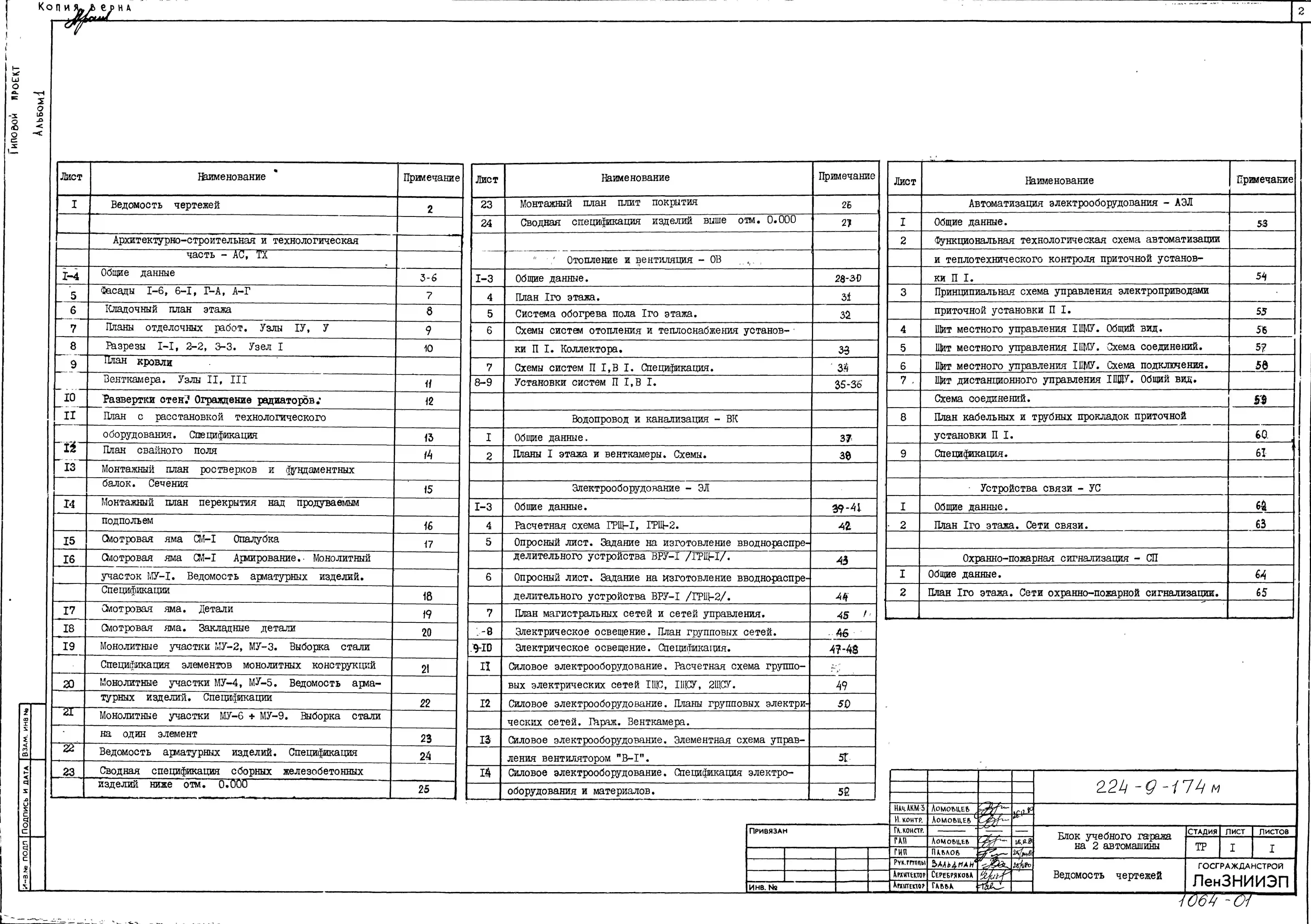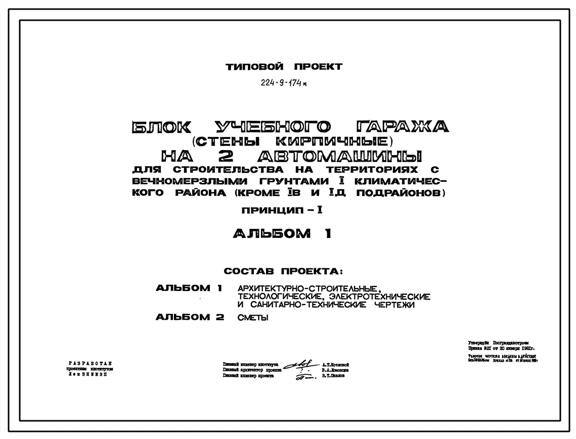 Типовой проект 224-9-174м Блок учебного гаража (стены кирпичные) на 2 автомашины.