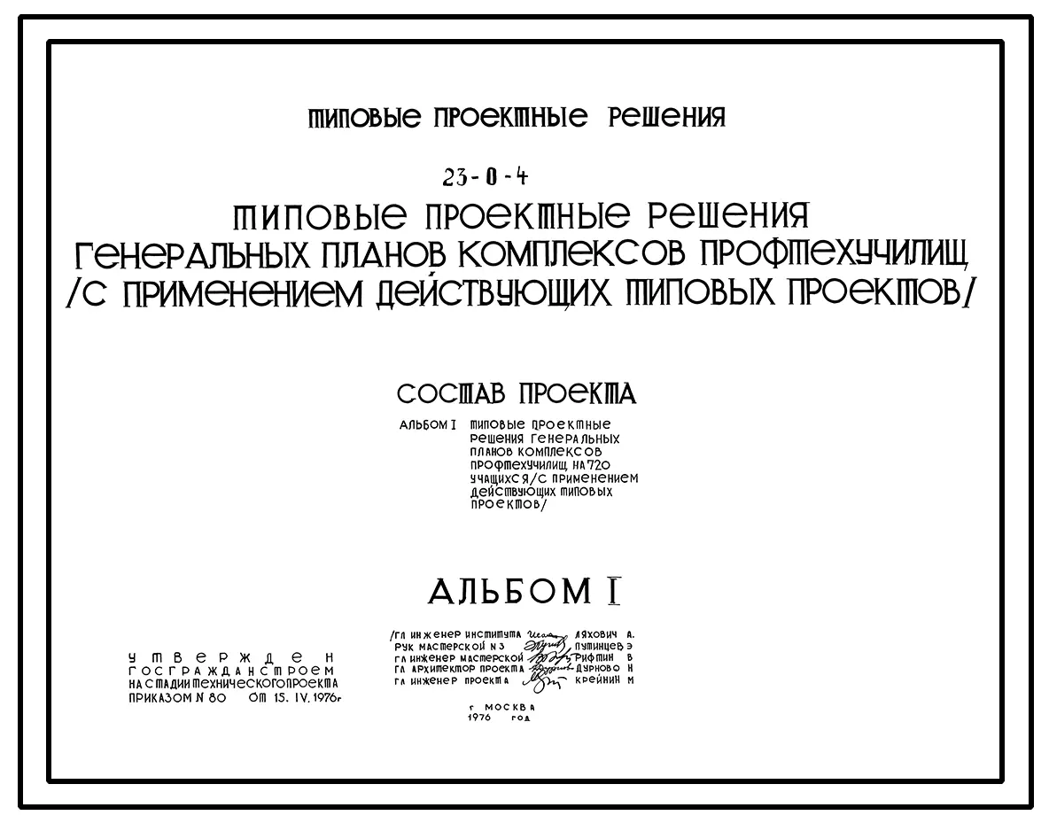Типовой проект 23-0-4 ГЕНЕРАЛЬНЫЕ ПЛАНЫ КОМПЛЕКСОВ ПРОФТЕХУЧИЛИЩ НА 720 УЧАЩИХСЯ