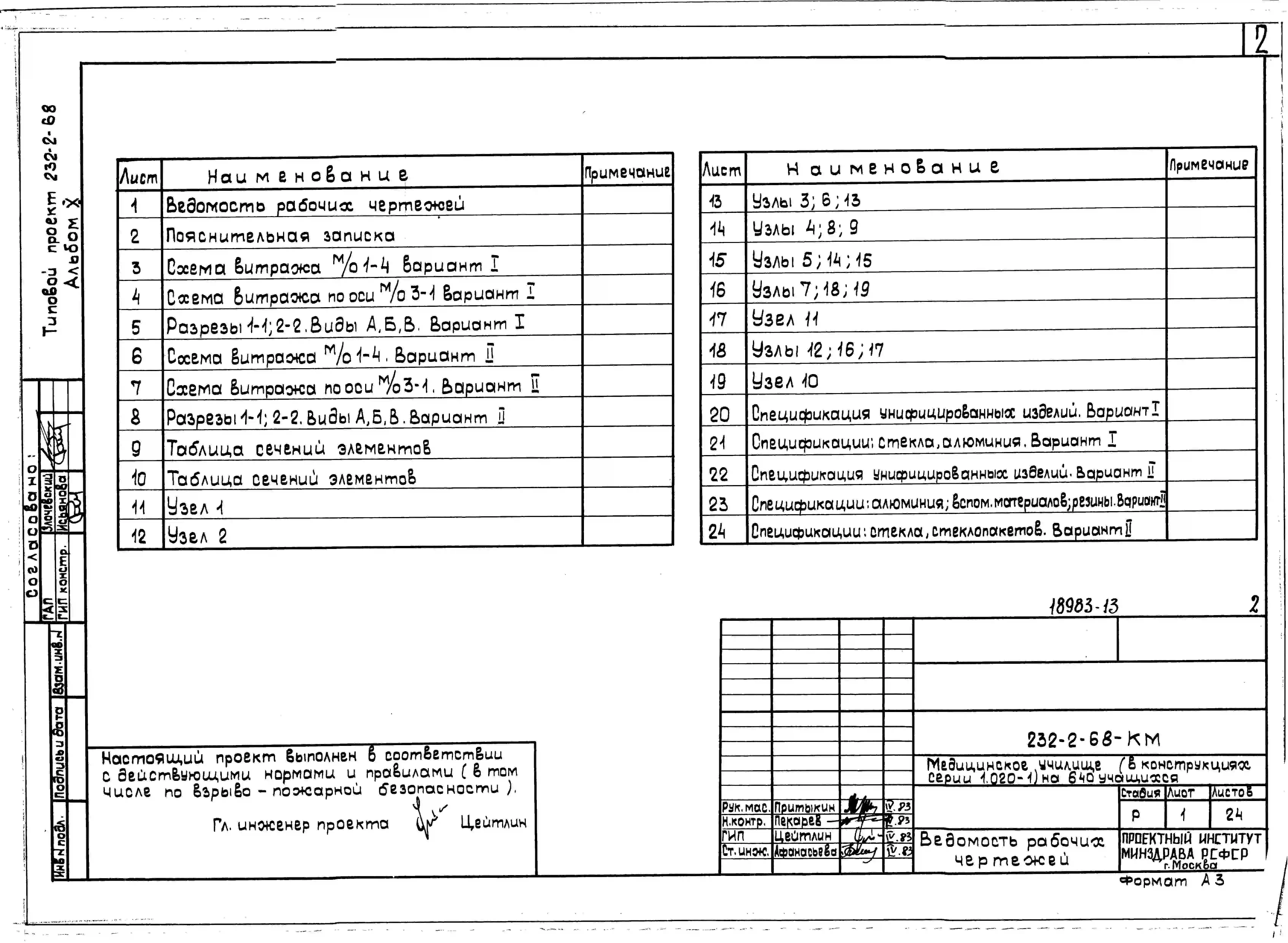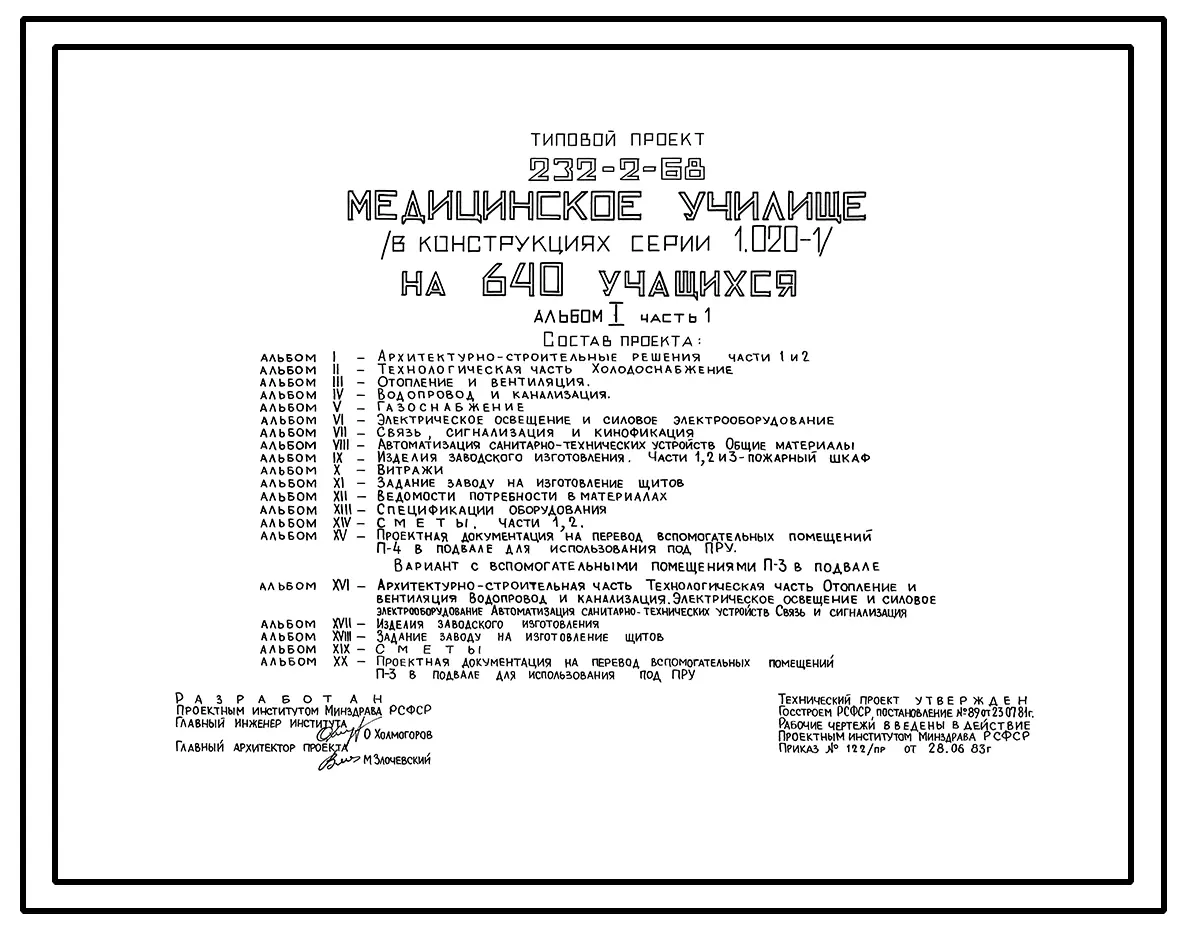 Типовой проект 232-2-68 Медицинское училище на 640 учащихся. Для строительства в 1В климатическом подрайоне, 2 и 3 климатических районах