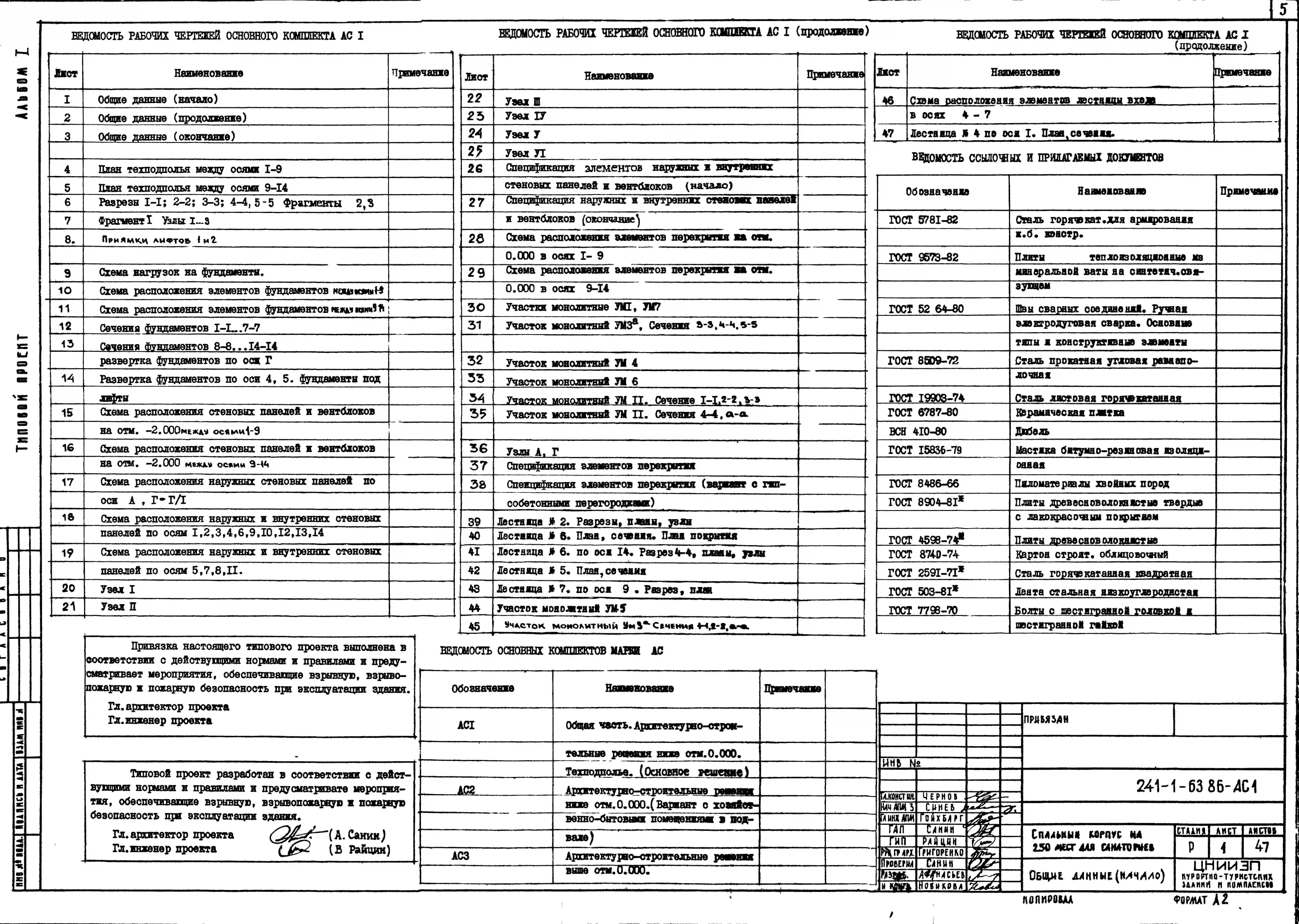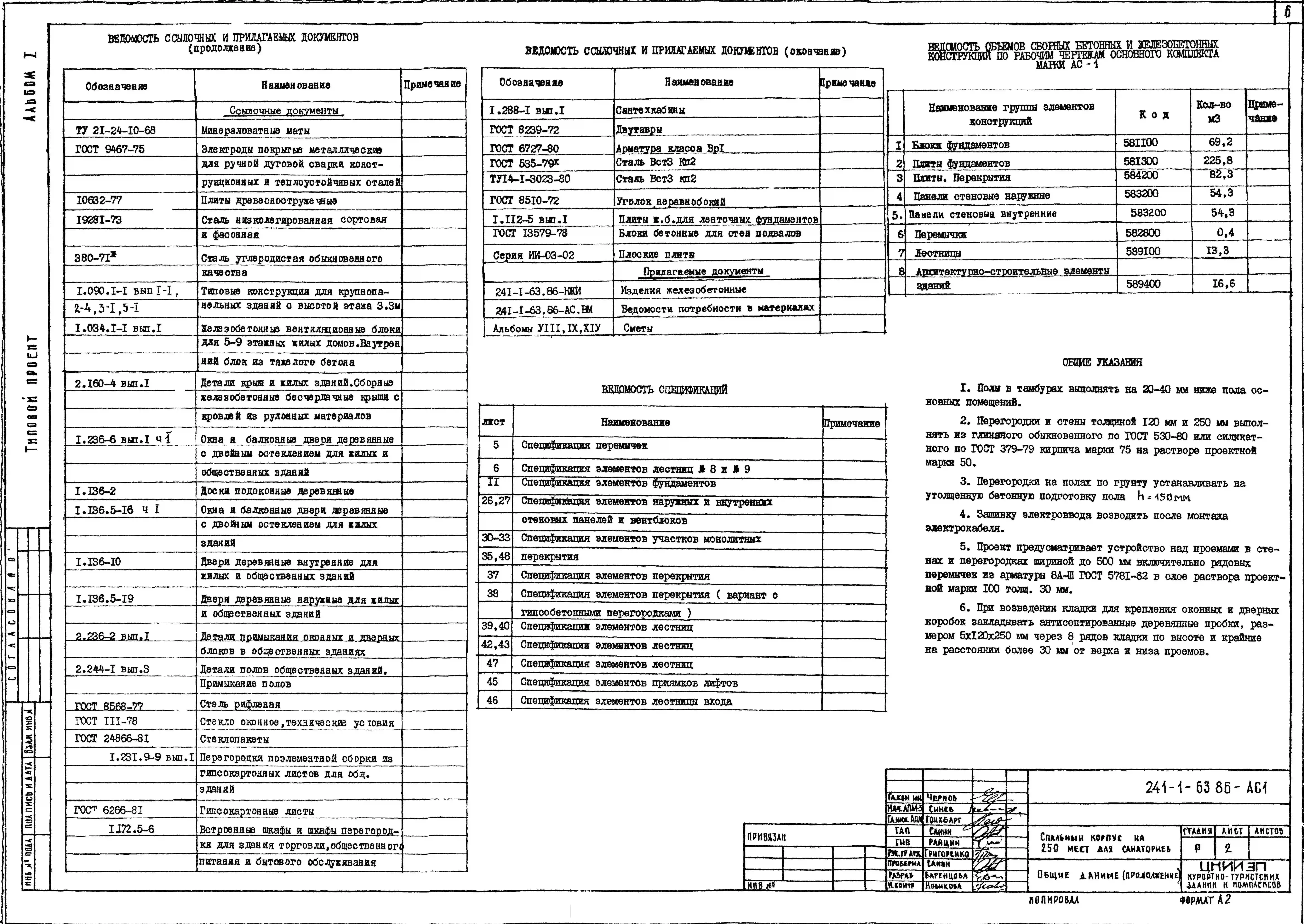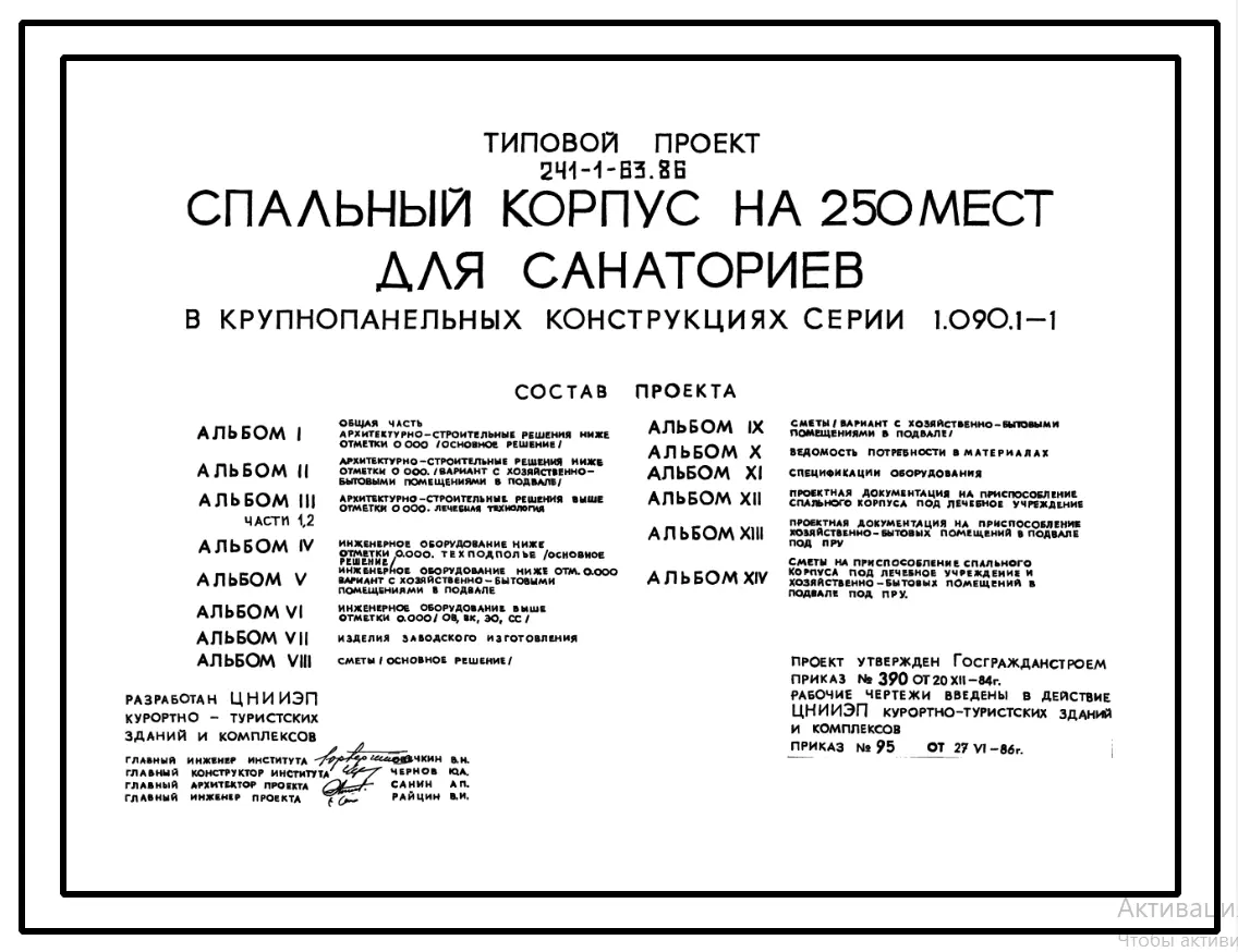 Типовой проект 241-1-63.86 Спальный корпус на 250 мест для санаториев (в крупнопанельных конструкциях серии 1.090.1-1)