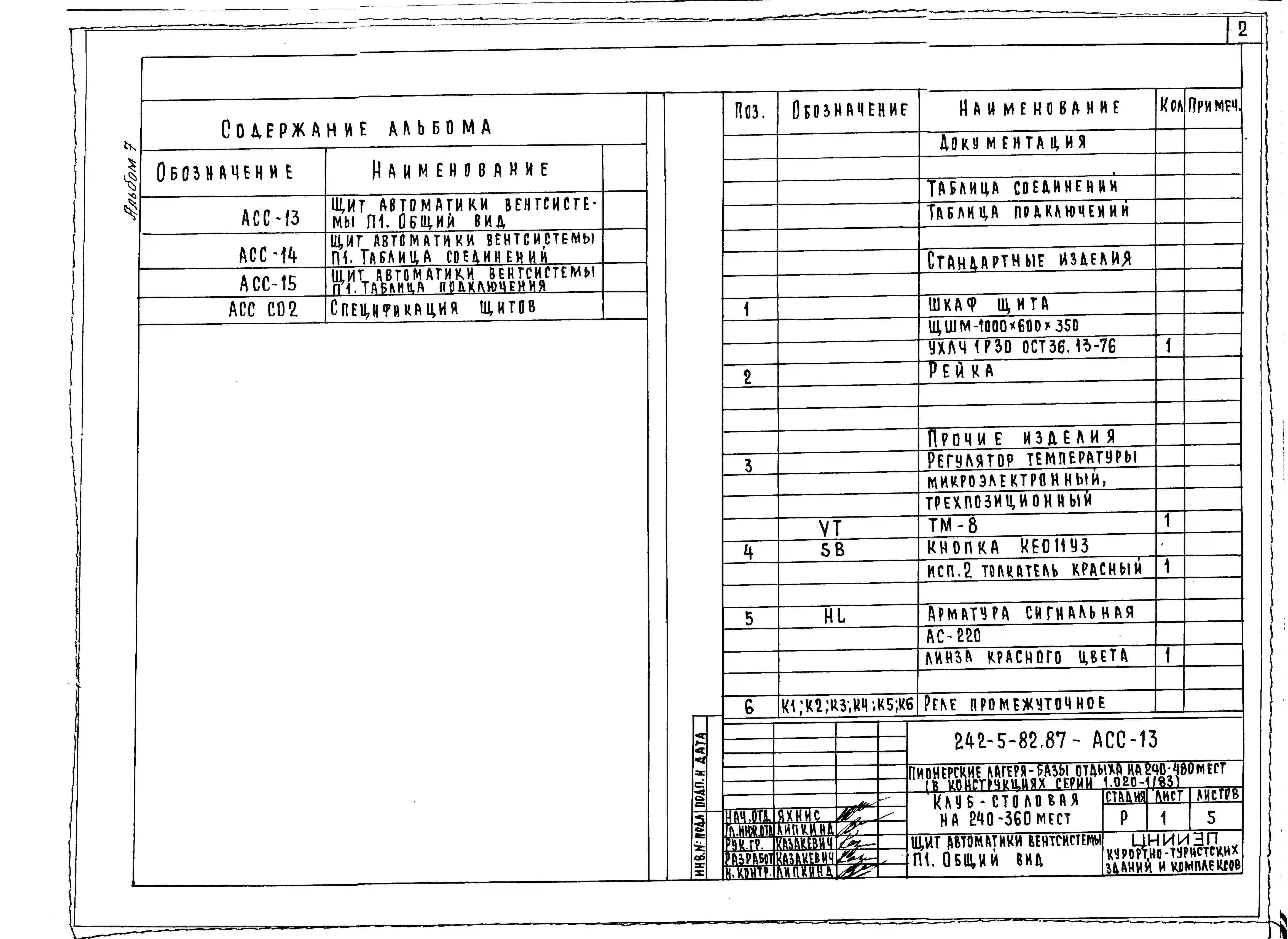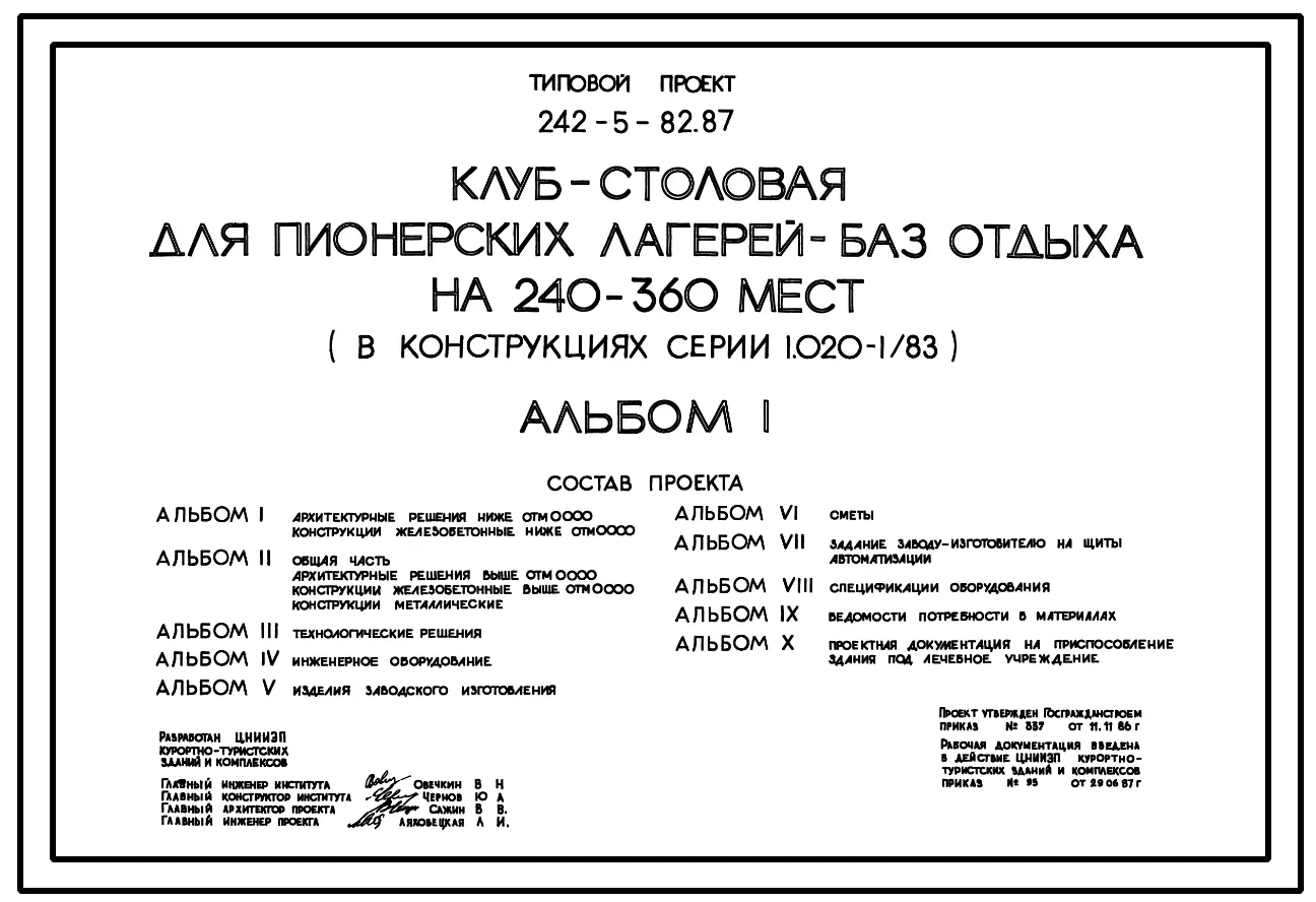 Типовой проект 242-5-82.87 Клуб-столовая для пионерских лагерей-баз отдыха на 240-360 мест (в конструкциях серии 1.020-1/83)