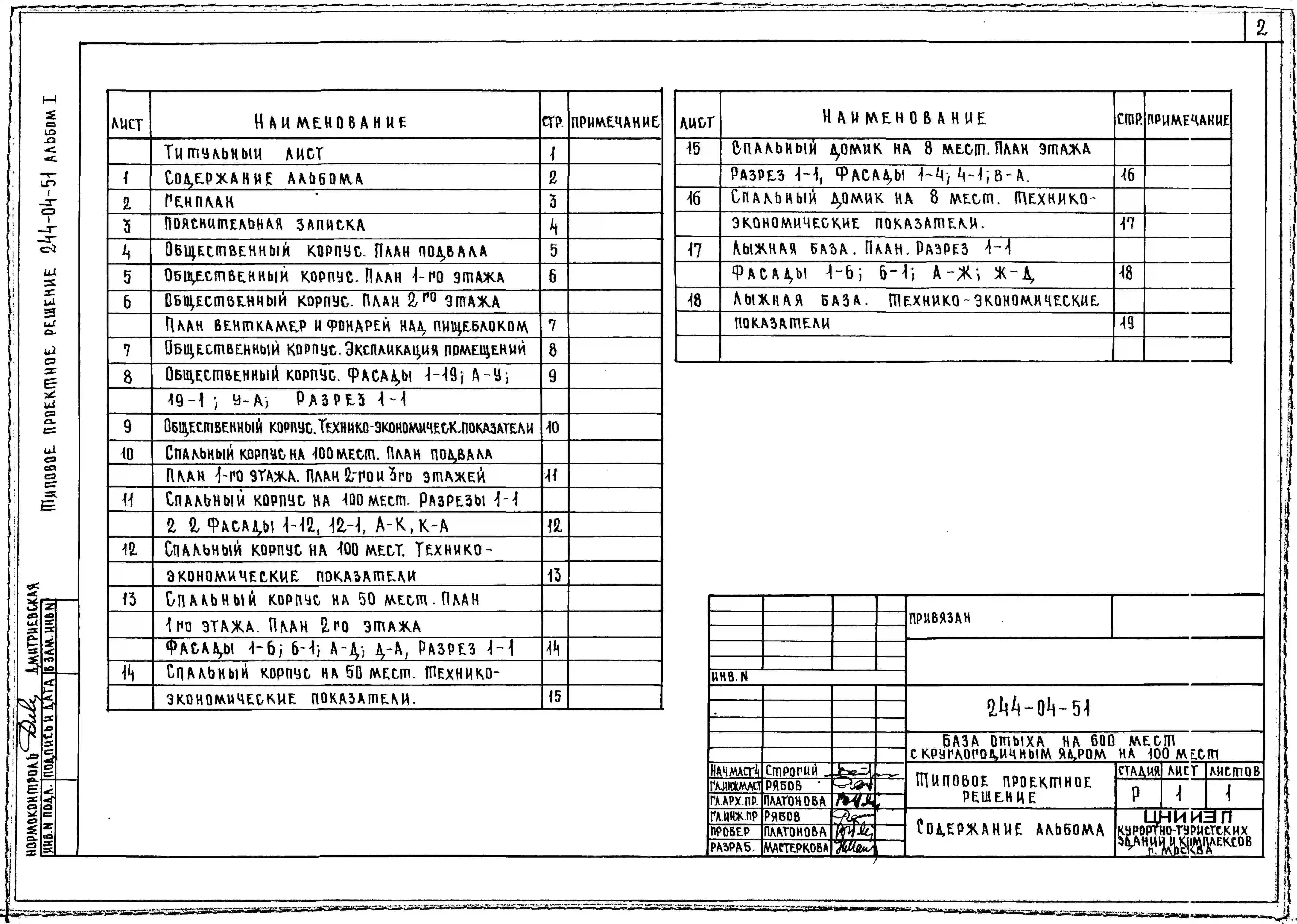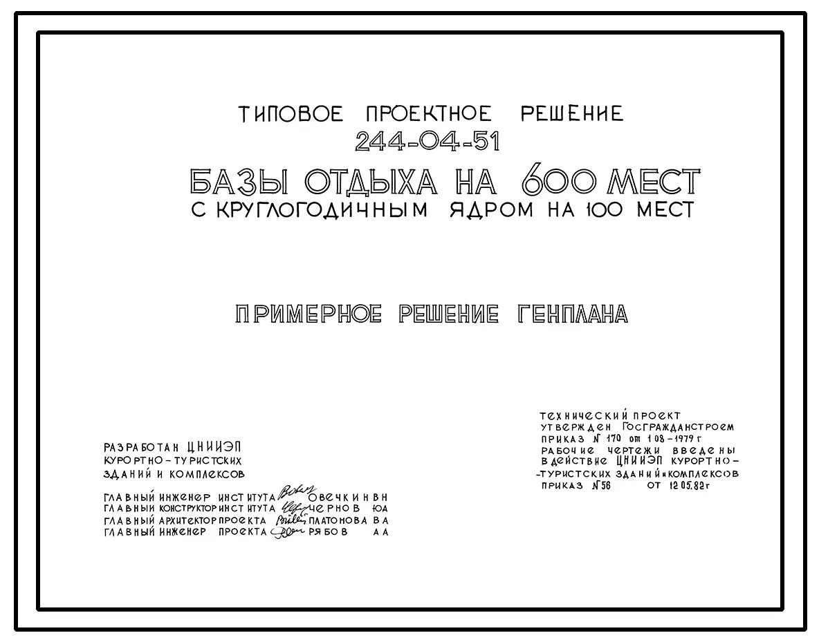 Типовой проект 244-04-51 Базы отдыха на 600 мест с круглогодичным ядром на 100 мест