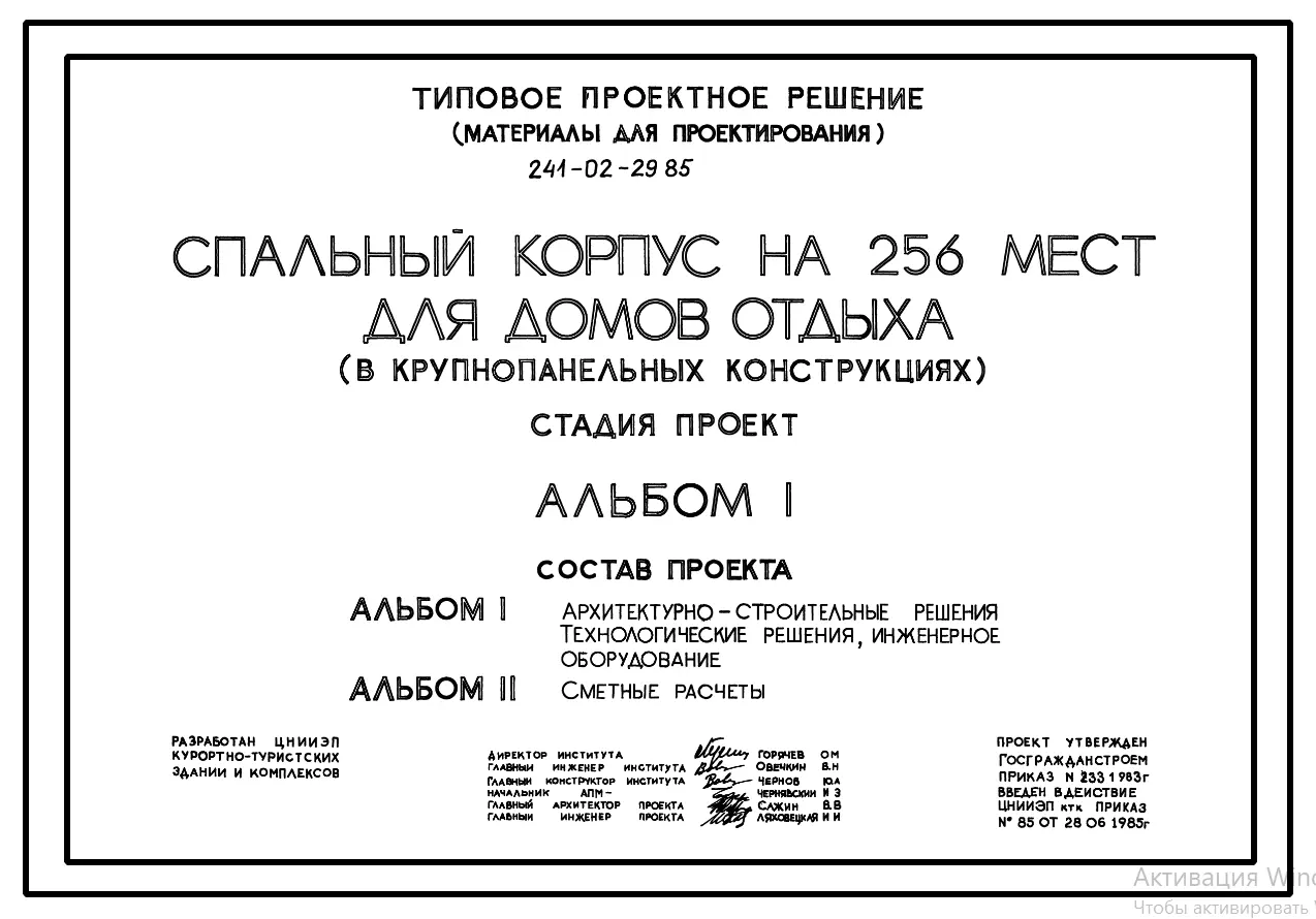 Типовой проект 241-02-29.85 Спальный корпус на 256 мест для домов отдыха (в крупнопанельных конструкциях)