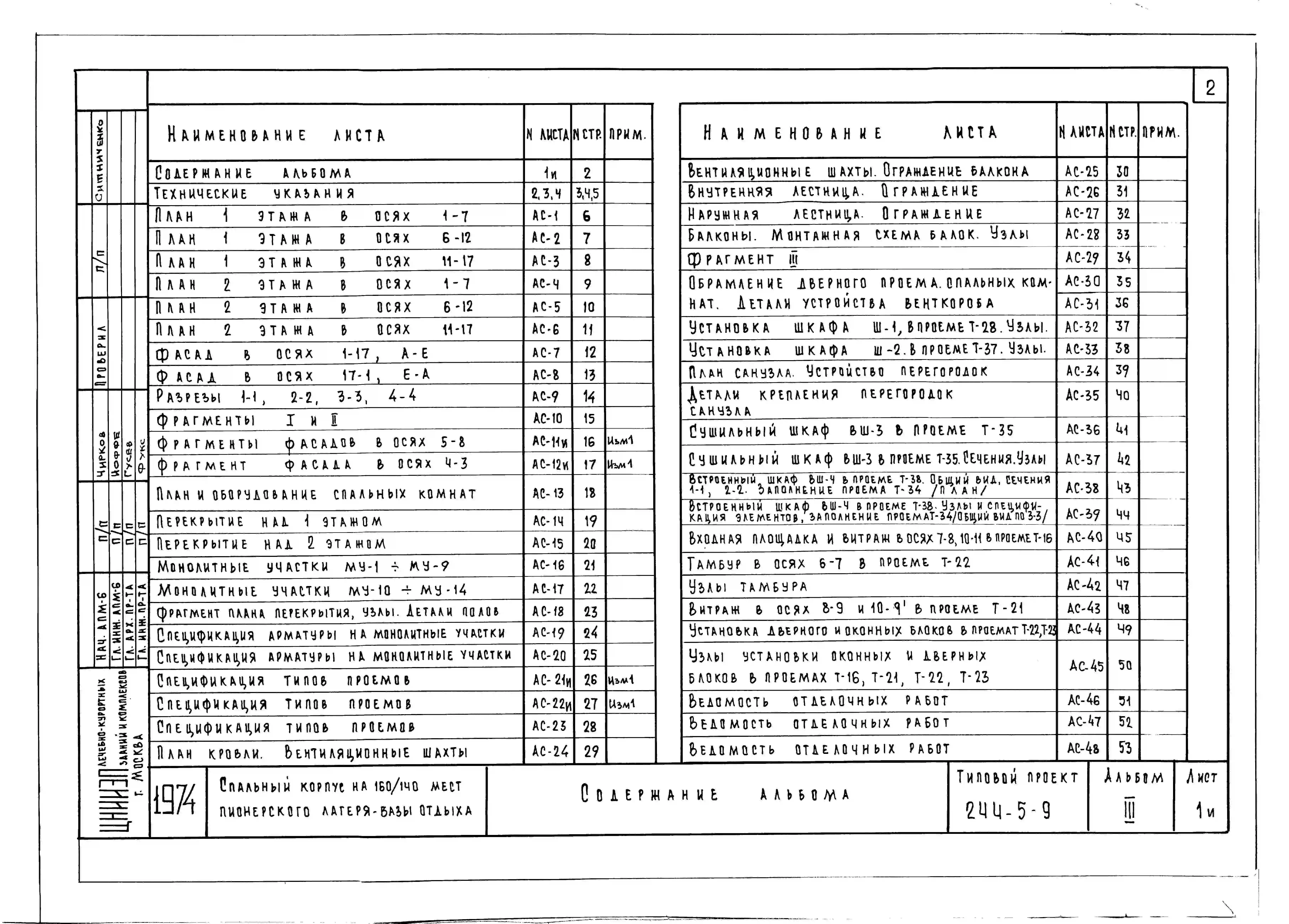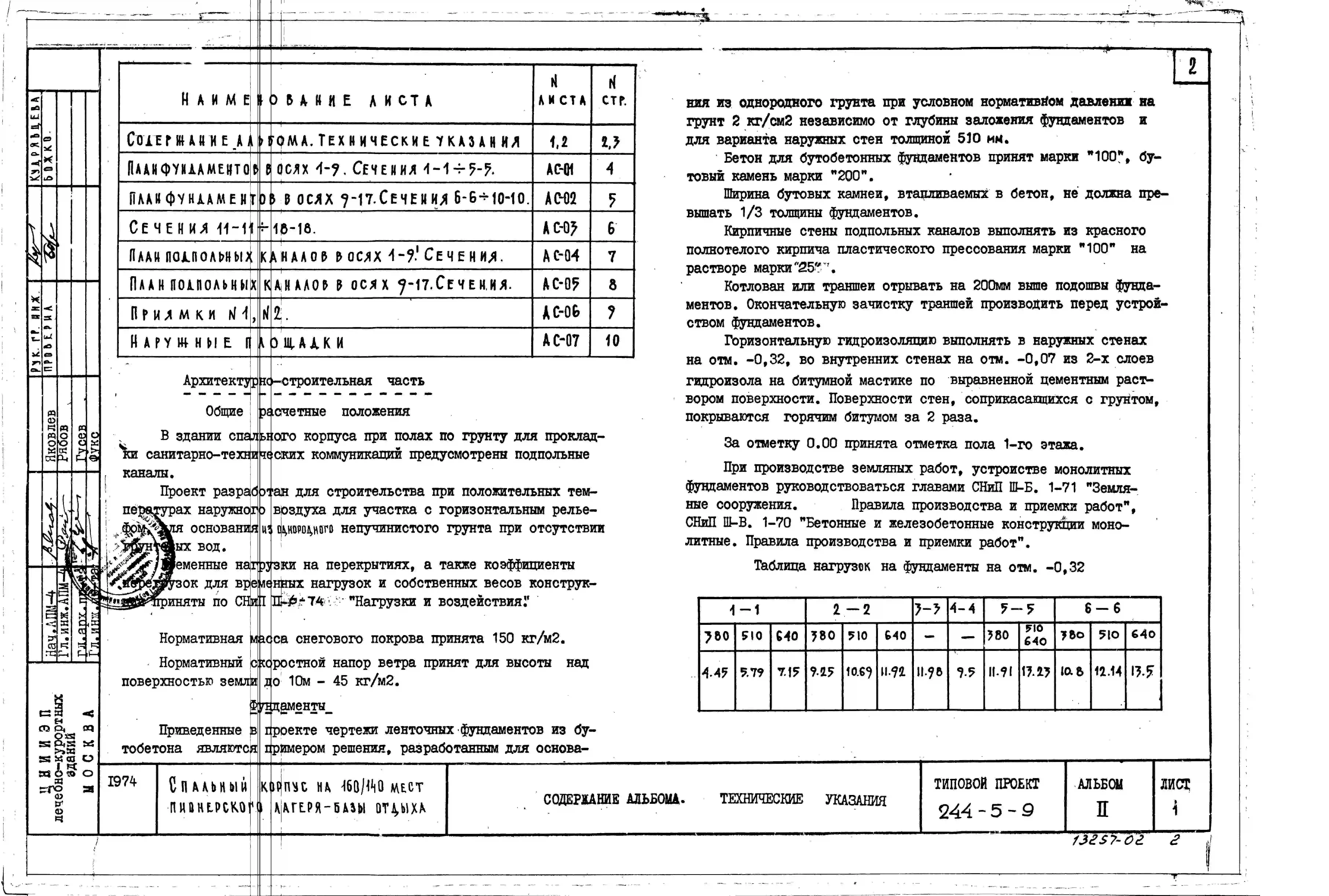 Типовой проект 244-5-9 Спальный корпус на 160/140 мест пионерского лагеря-базы отдыха, для строительства в 1В климатическом подрайоне, 2 и 3 климатических районах