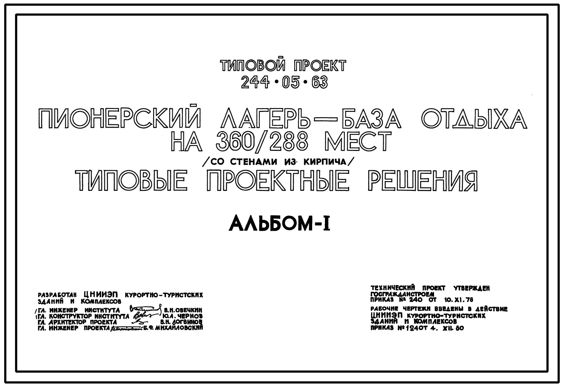 Типовой проект 244-05-63 Пионерский лагерь-база отдыха на 360/288 мест. Со стенами из кирпича