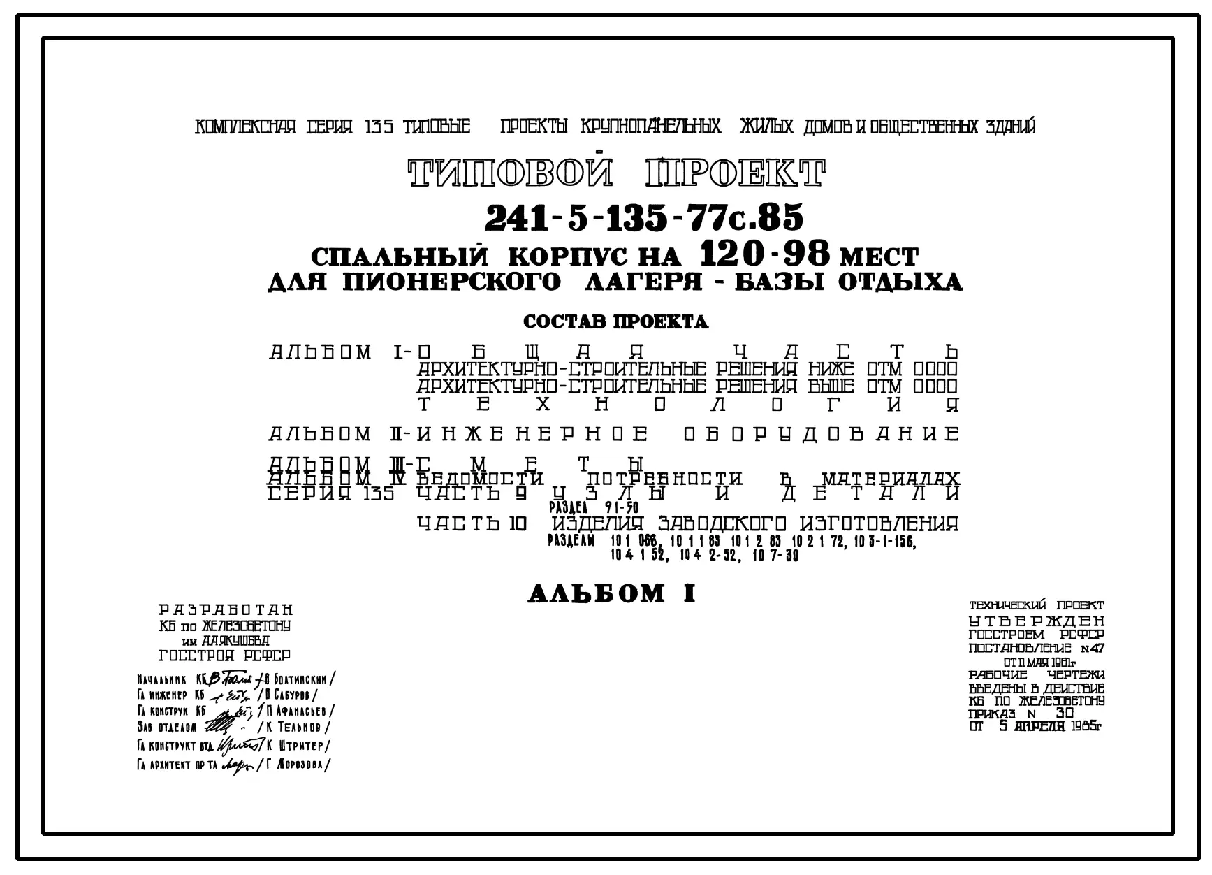 Типовой проект 241-5-135-77с.85 Спальный корпус на 98-120 мест для пионерского лагеря-базы отдыха. Для строительства в 3 и 4 климатических районах сейсмичностью 7 и 8 баллов