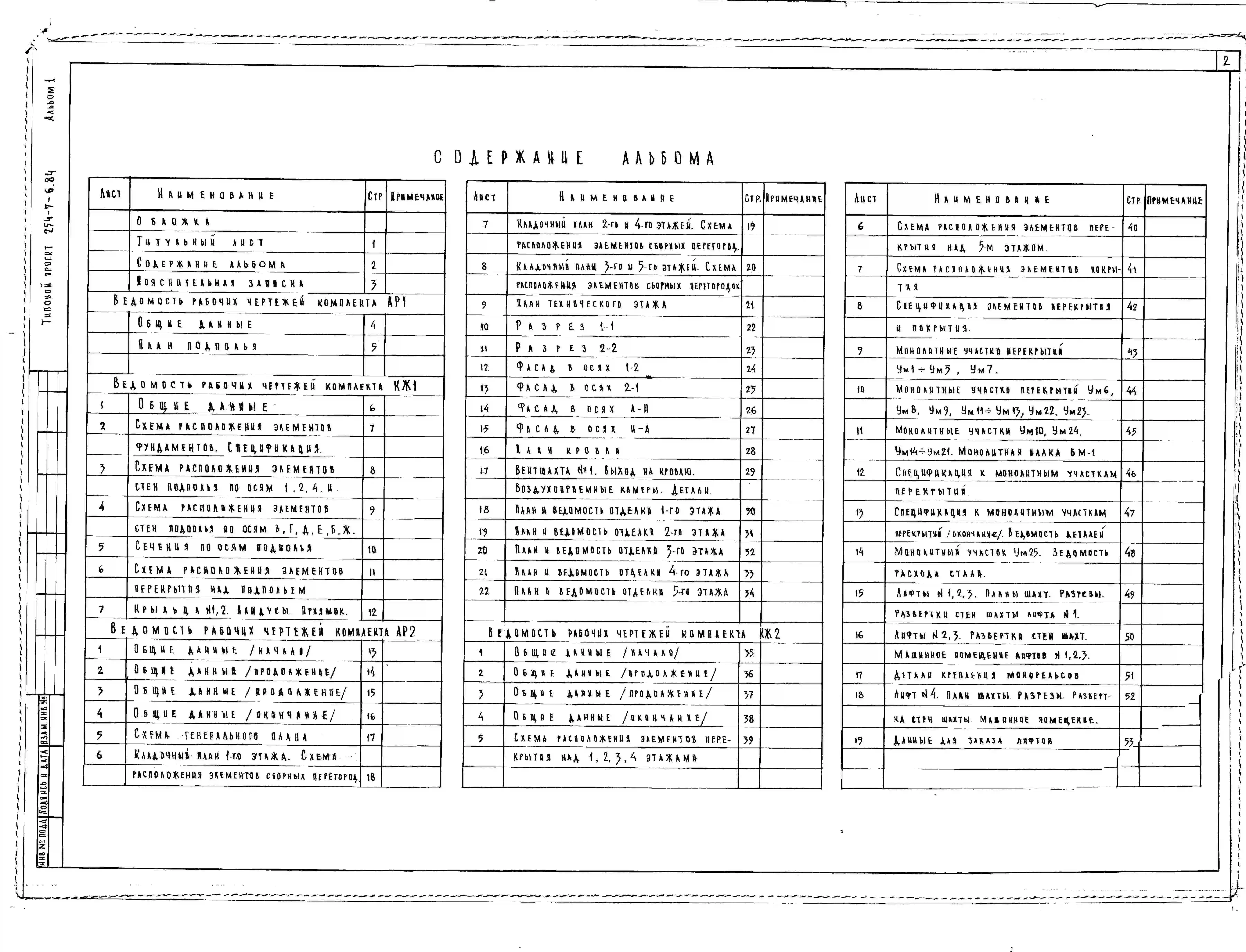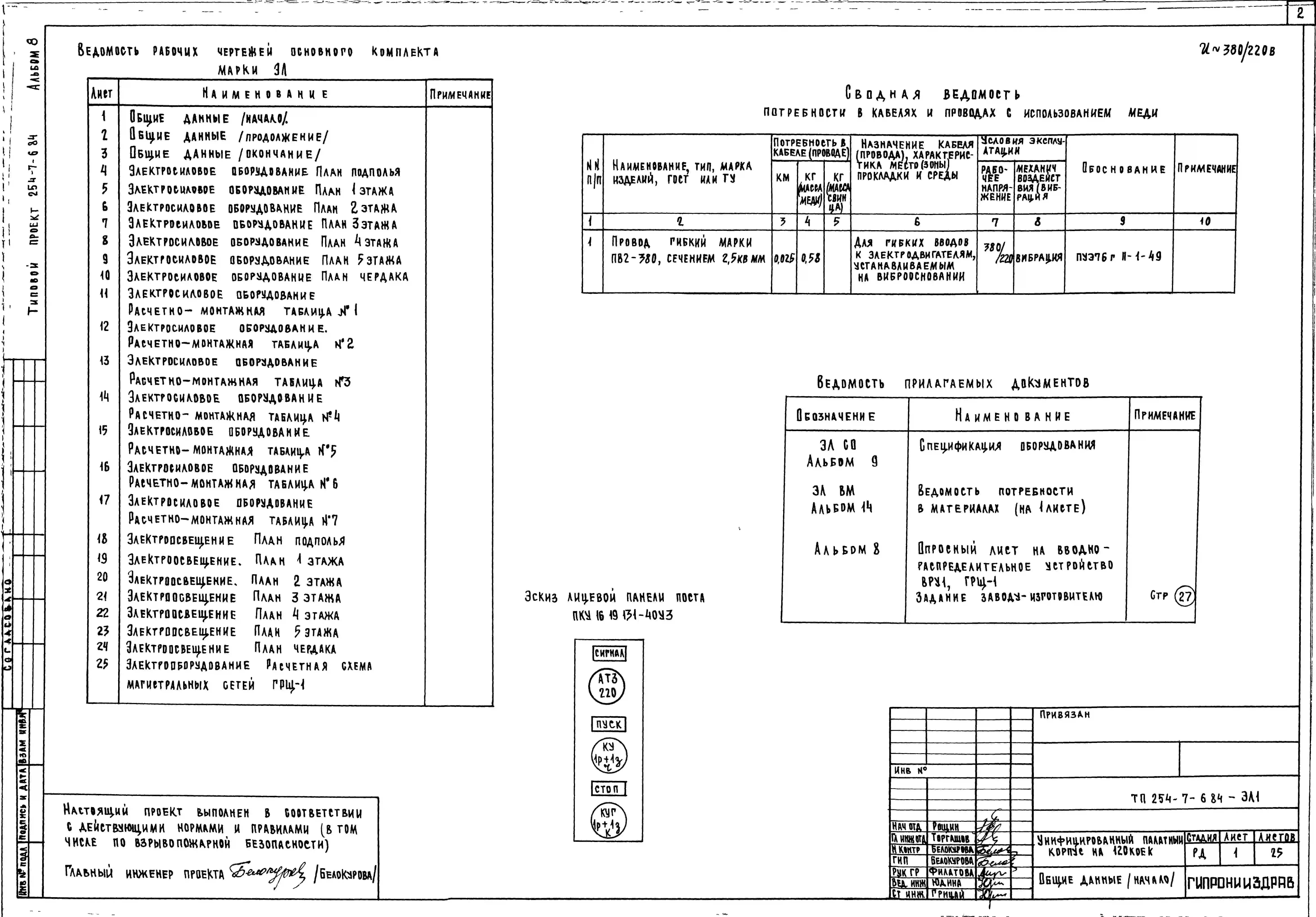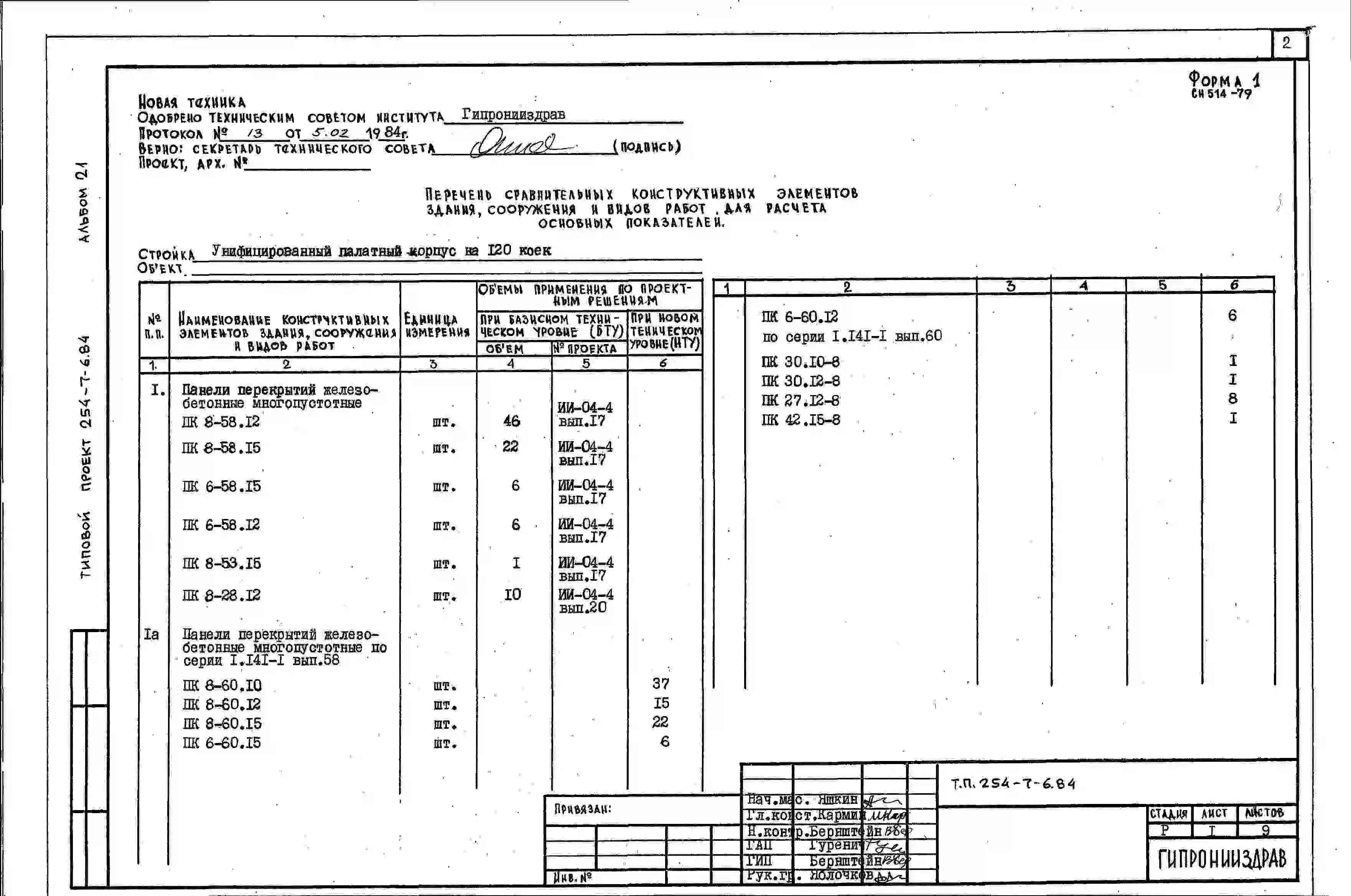Типовой проект 254-7-6.84 Унифицированный палатный корпус на 120 коек. Здание шестиэтажное. Стены из кирпича.