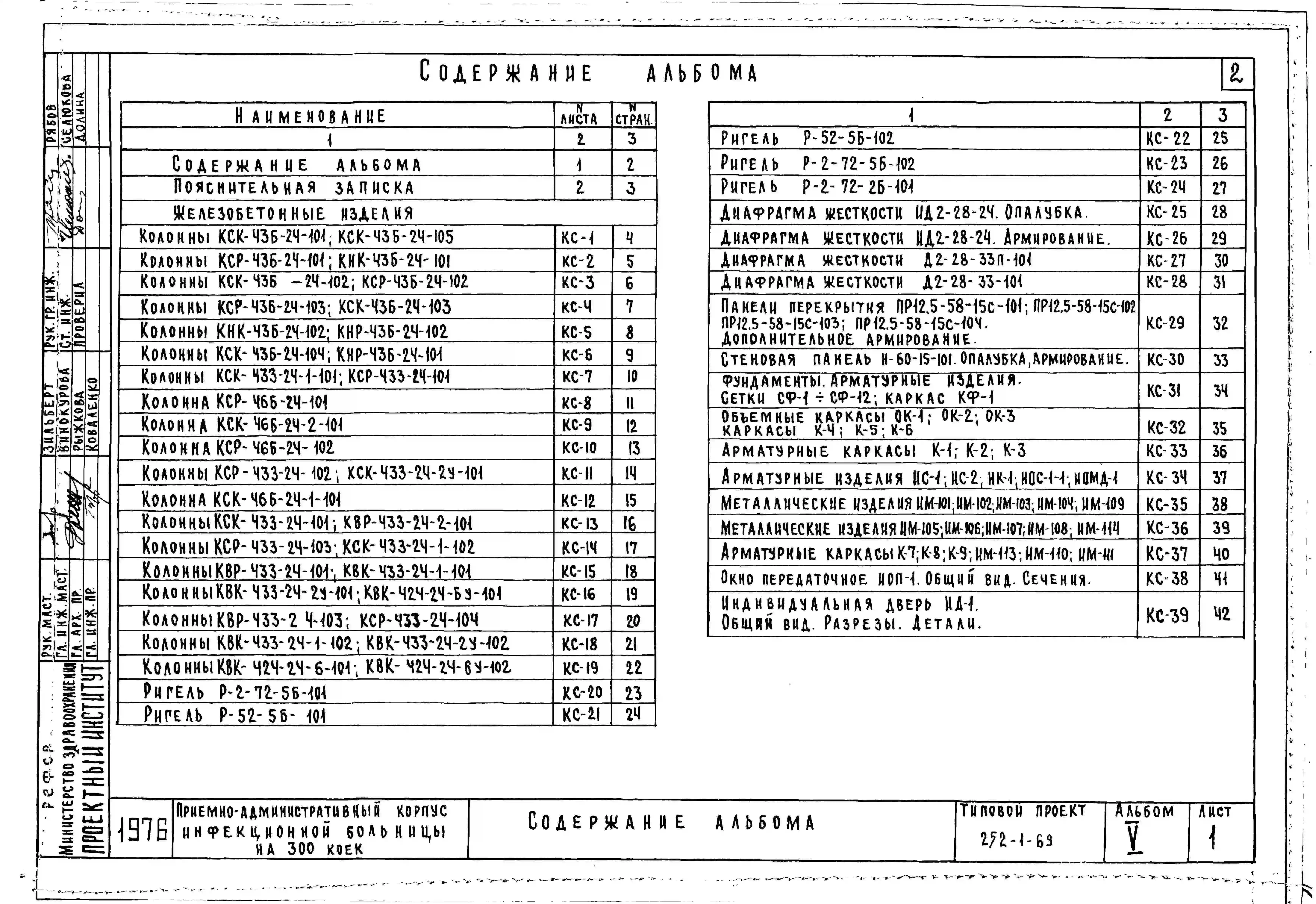 Типовой проект 252-1-69 Приёмно-административный корпус инфекционной больницы на 300 коек. Здание двухэтажное. Каркас сборный железобетонный серии ИИ-04. Стены из керамзитобетонных панелей.