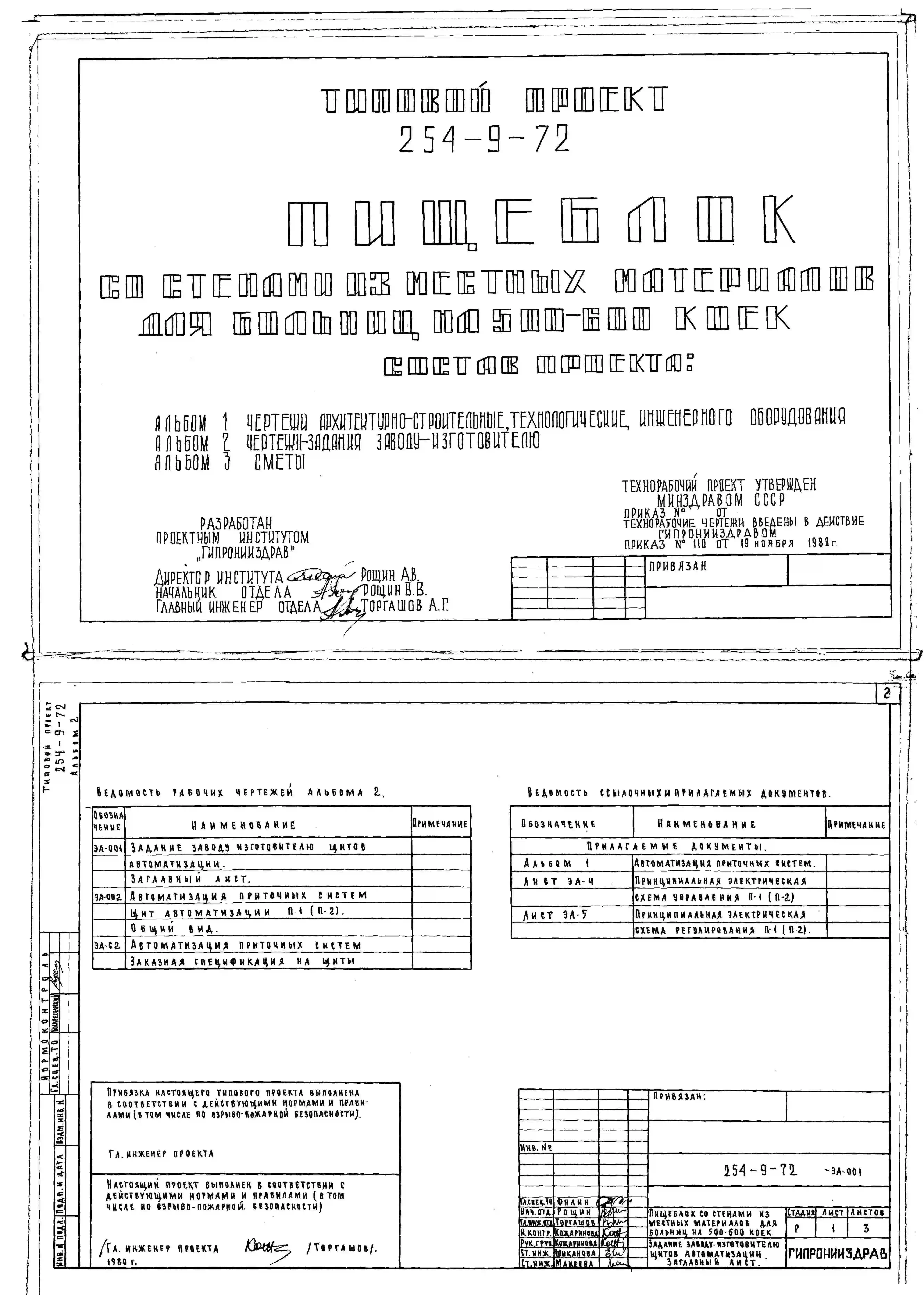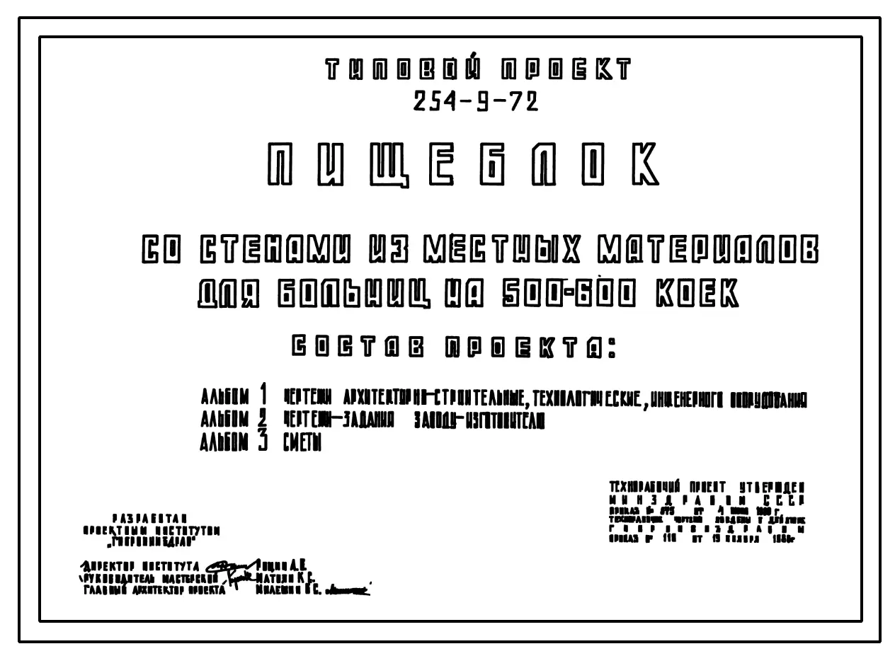 Типовой проект 254-9-72 Пищеблок для больниц на 500-600 коек. Здание одноэтажное. Стены из кирпича.