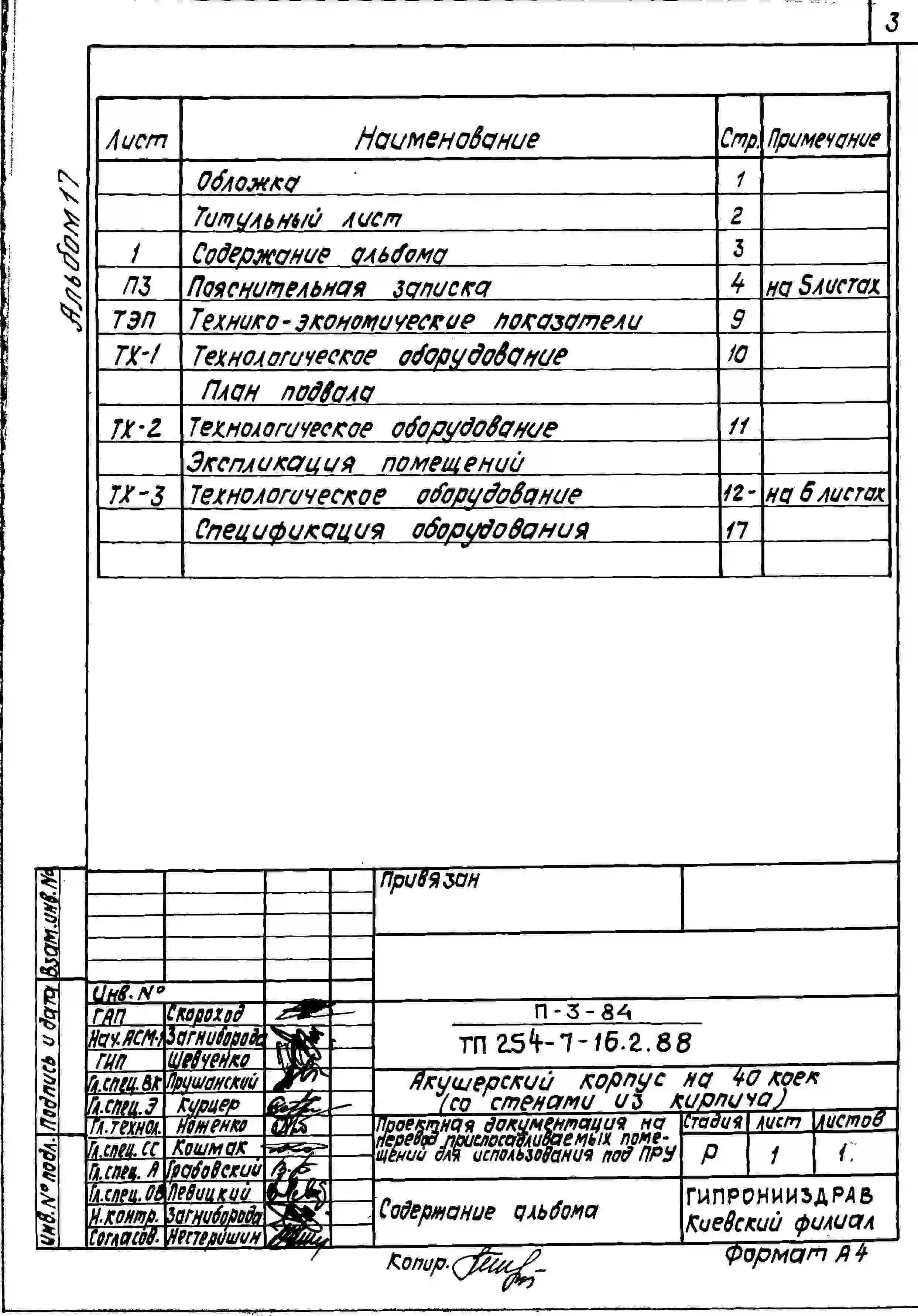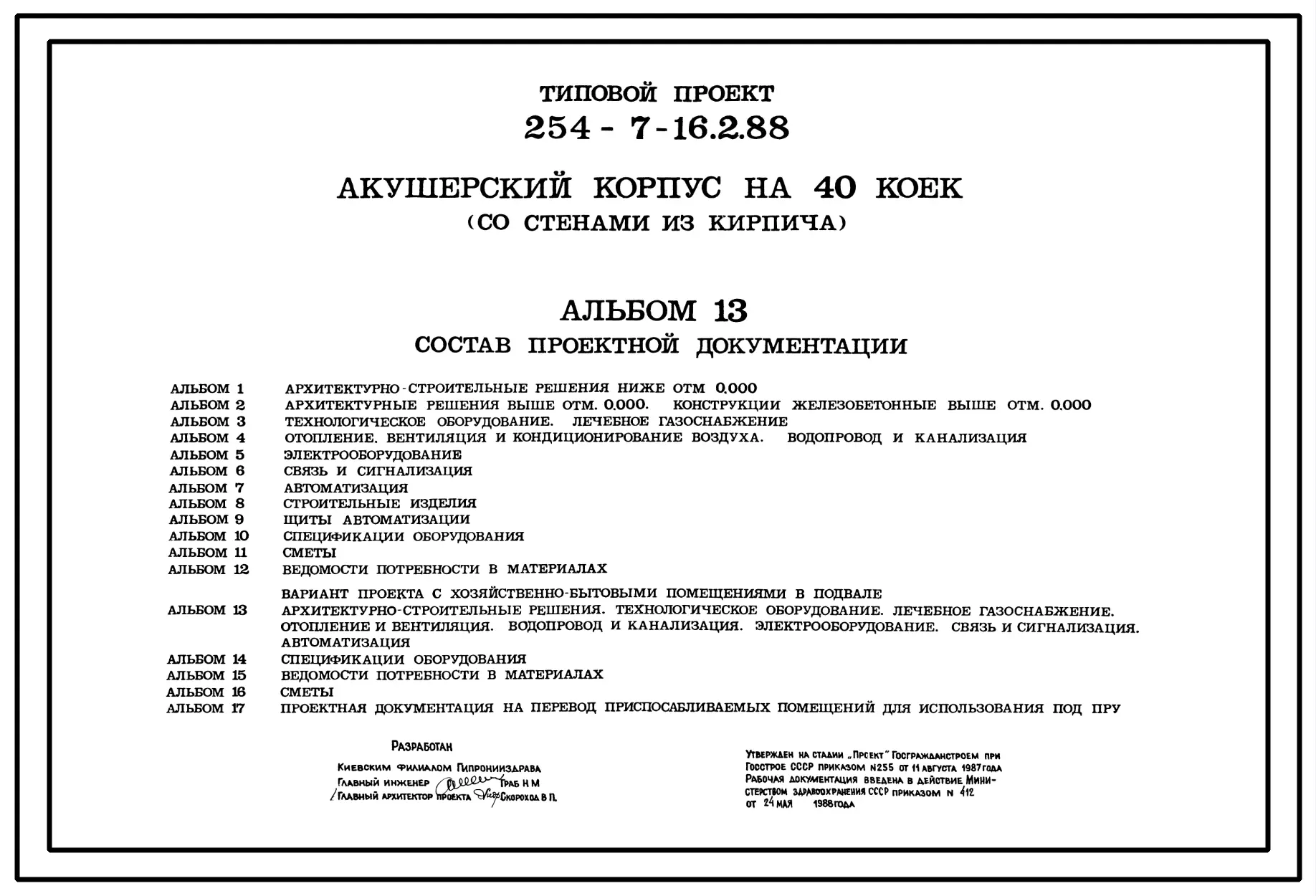 Типовой проект 254-7-16.2.88 Акушерский корпус на 40 коек (со стенами из кирпича). Вариант с хозяйственно-бытовыми помещениями в подвале.