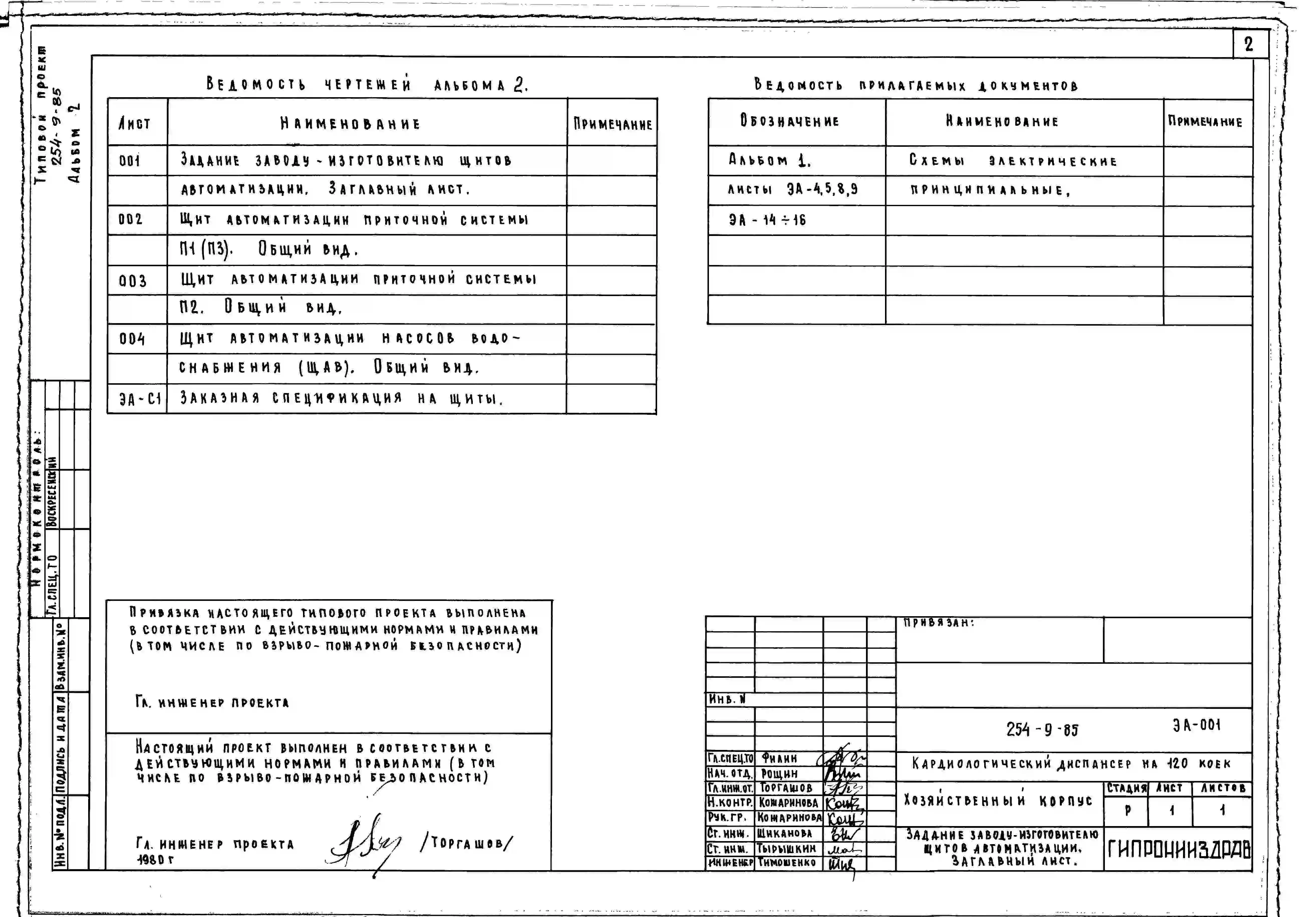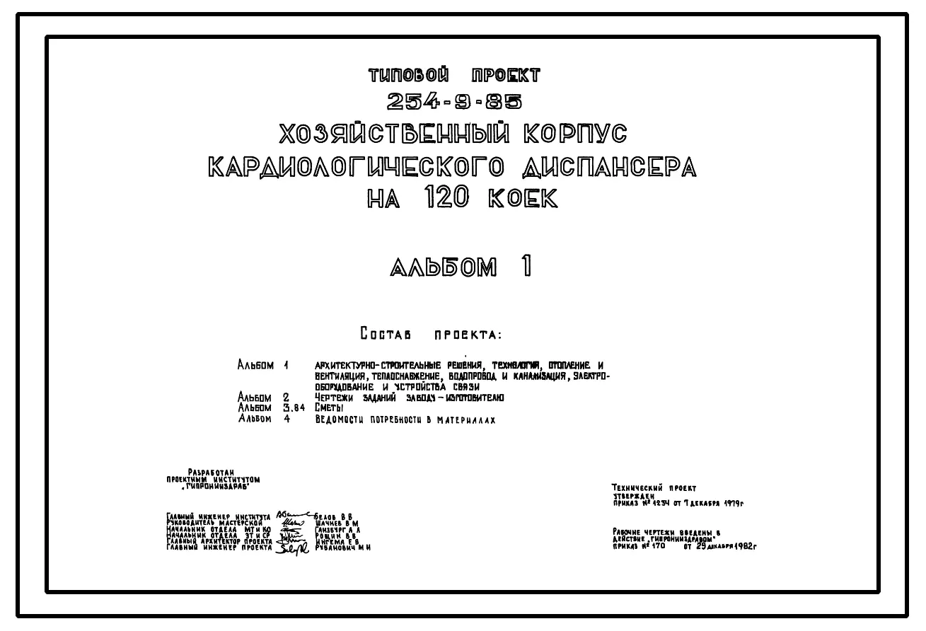 Типовой проект 254-9-85 Хозяйственный корпус кардиологического диспансера на 120 коек. Здание одноэтажное. Стены из кирпича.