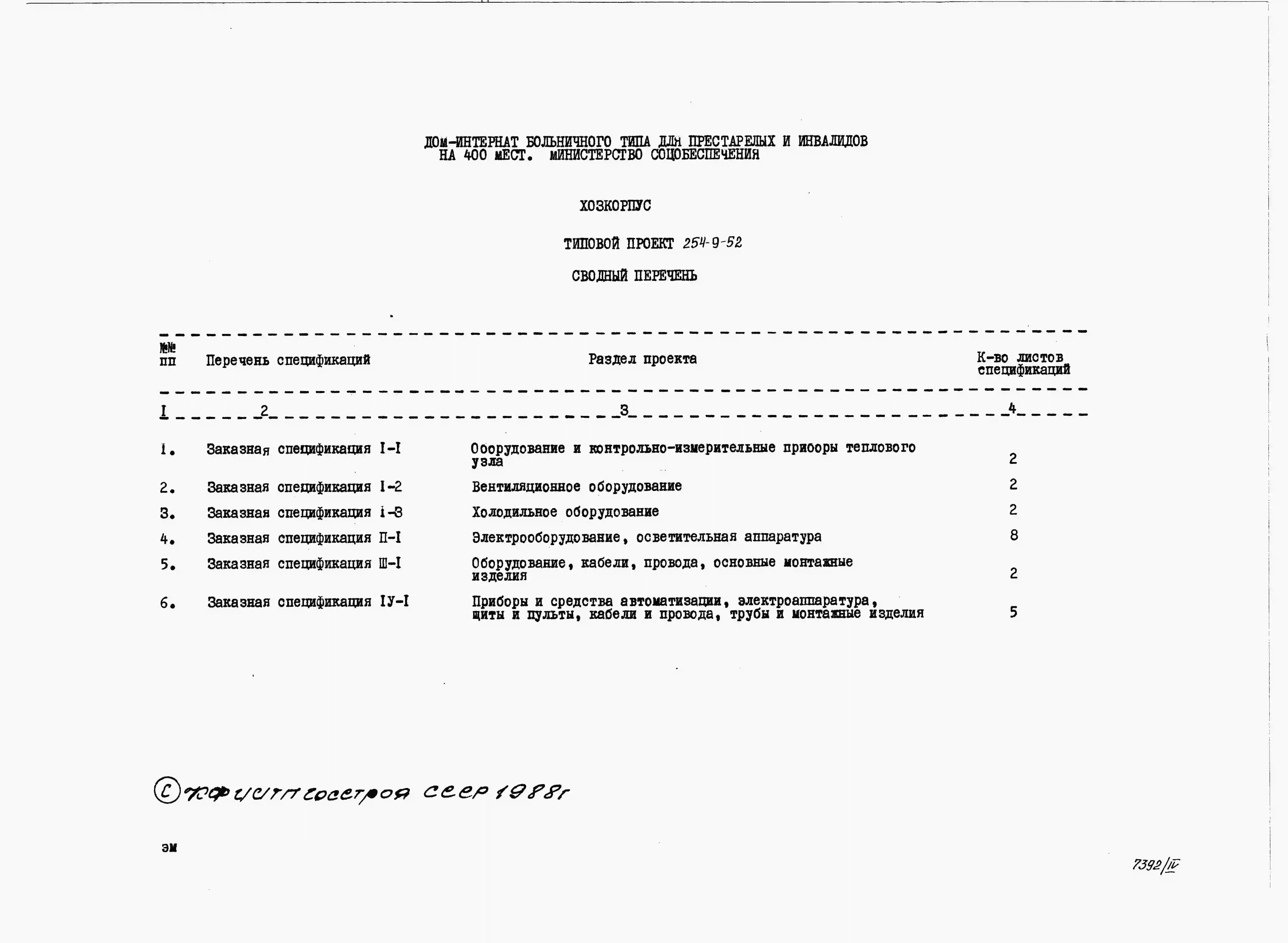Типовой проект 254-9-52 Хозяйственный корпус дома-интерната больничного типа для престарелых и инвалидов на 400 мест