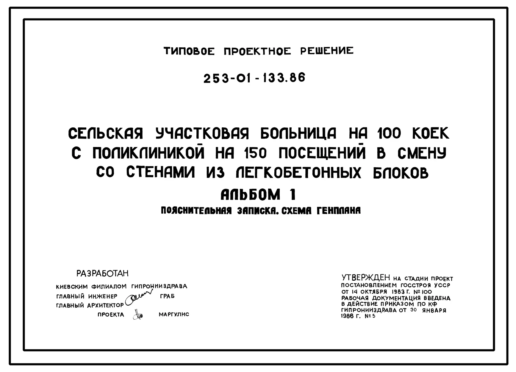 Типовой проект 253-01-133.86 Сельская участковая больница на 100 коек с поликлиникой на 150 посещений в смену со стенами из легкобетонных блоков