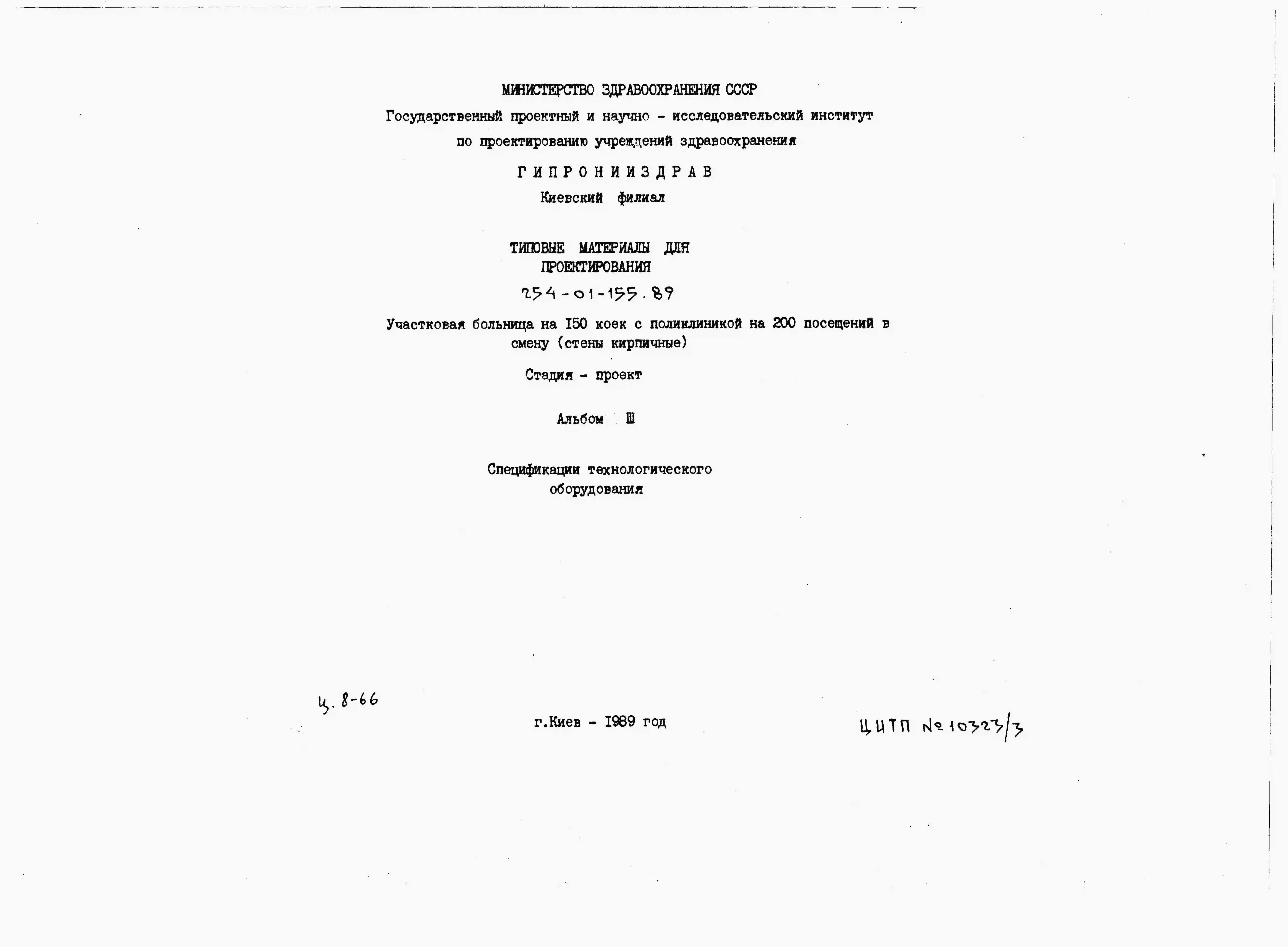 Типовой проект 254-01-155.89 Участковая больница на 150 коек с поликлиникой на 200 посещений в смену (стены кирпичные)