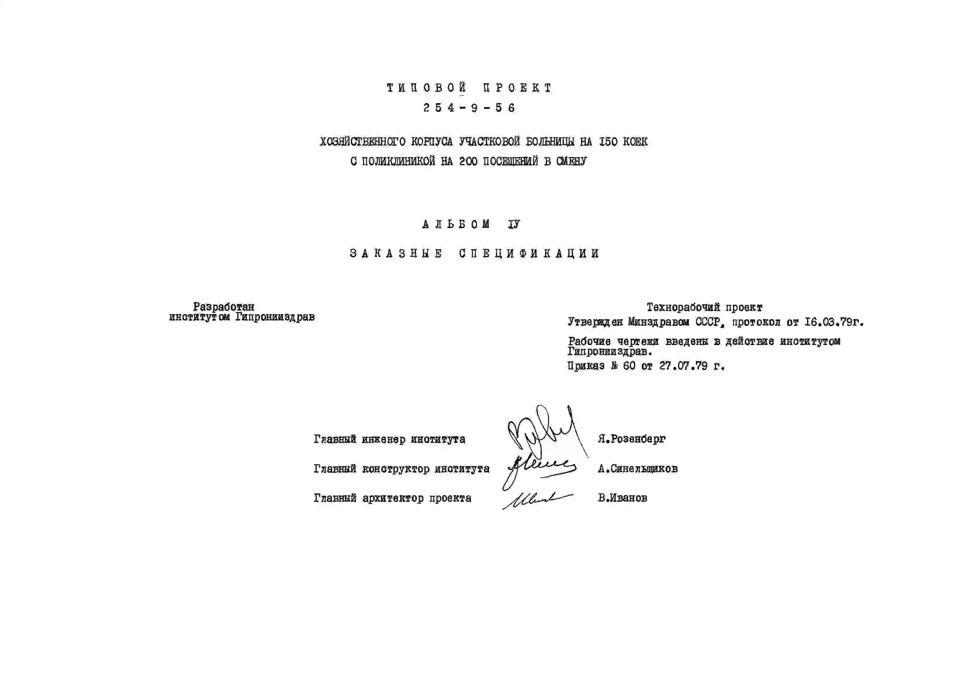 Типовой проект 254-9-56 Хозяйственный корпус участковой больницы на 150 коек с поликлиникой на 200 посещений в смену