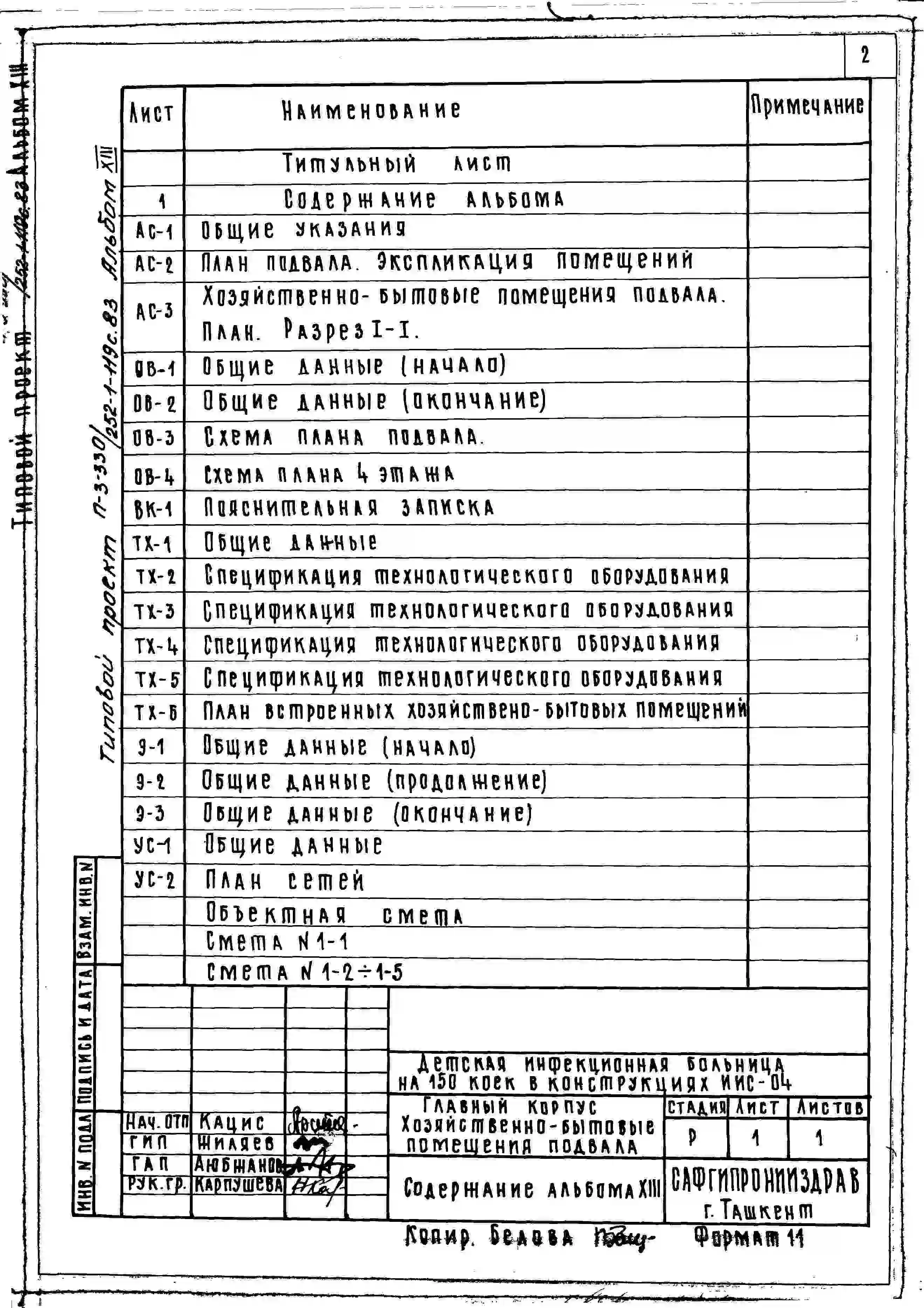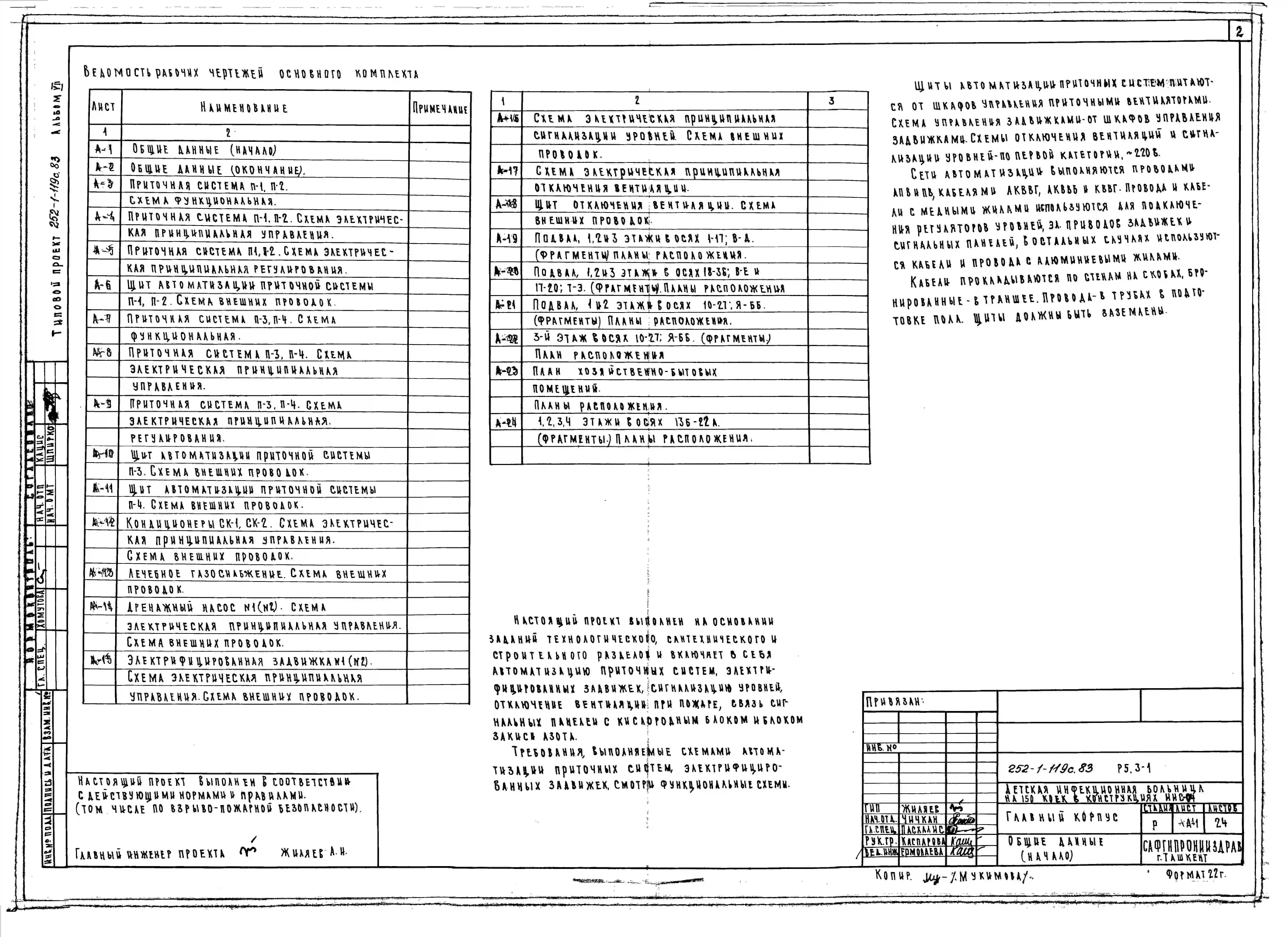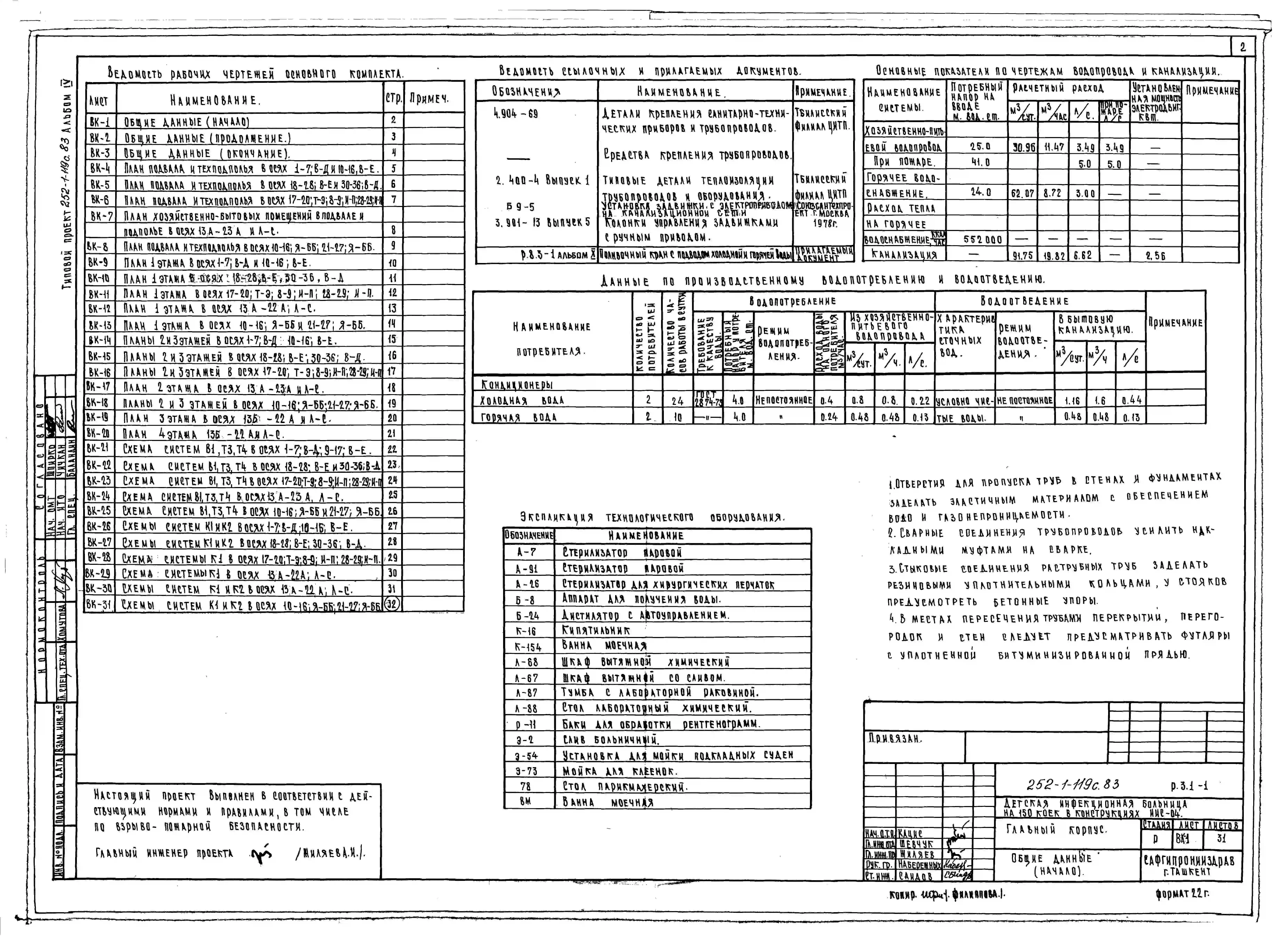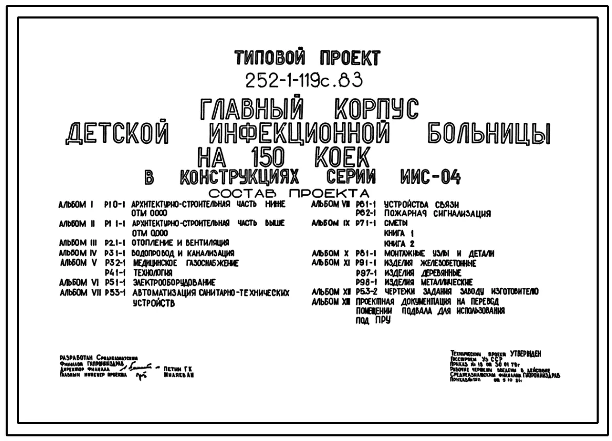 Типовой проект 252-1-119с.83 Главный корпус детской инфекционной больницы на 150 коек. Для строительства в 4А и 4Г климатических подрайонах сейсмичностью 7, 8 и 9 баллов