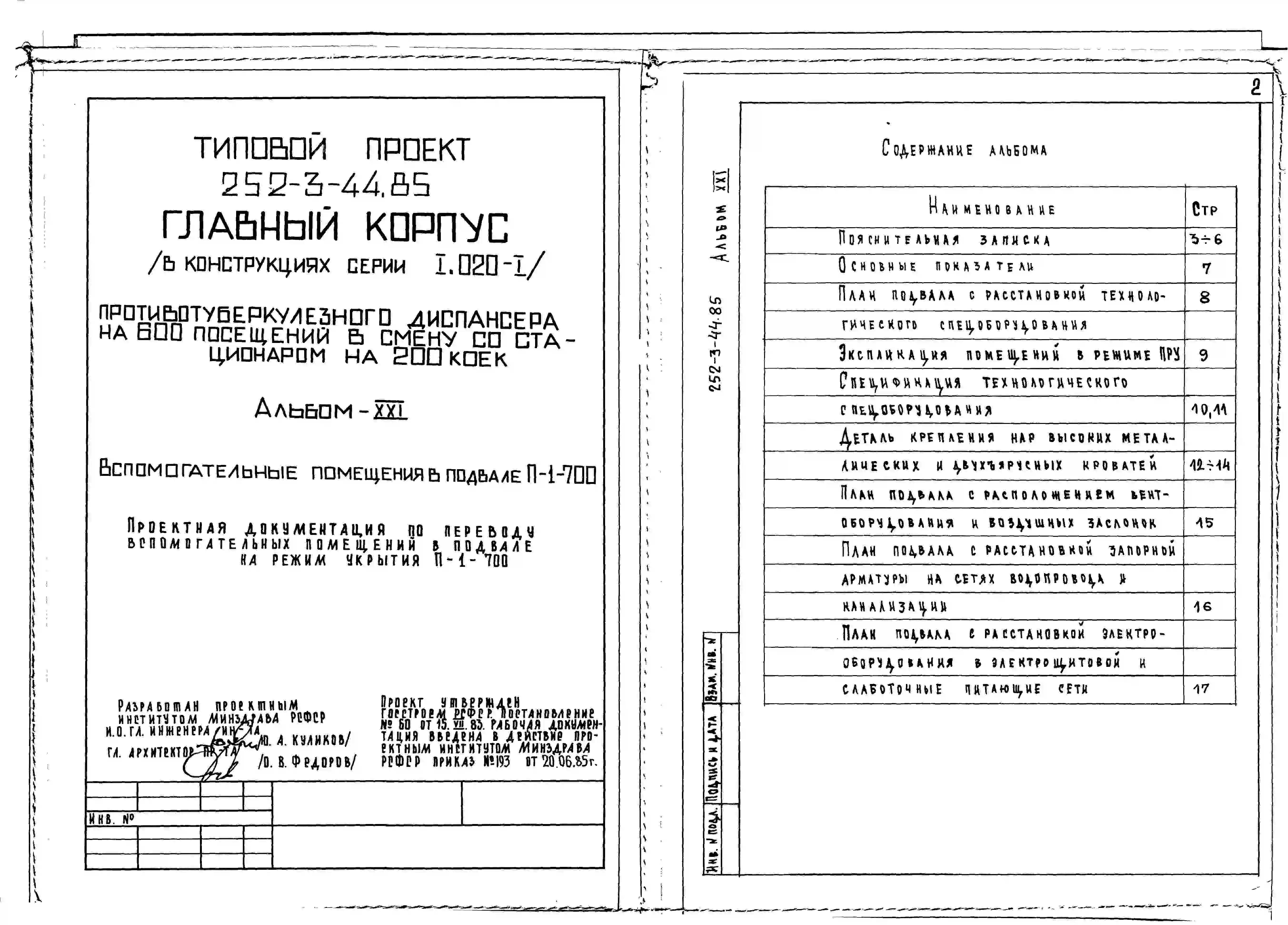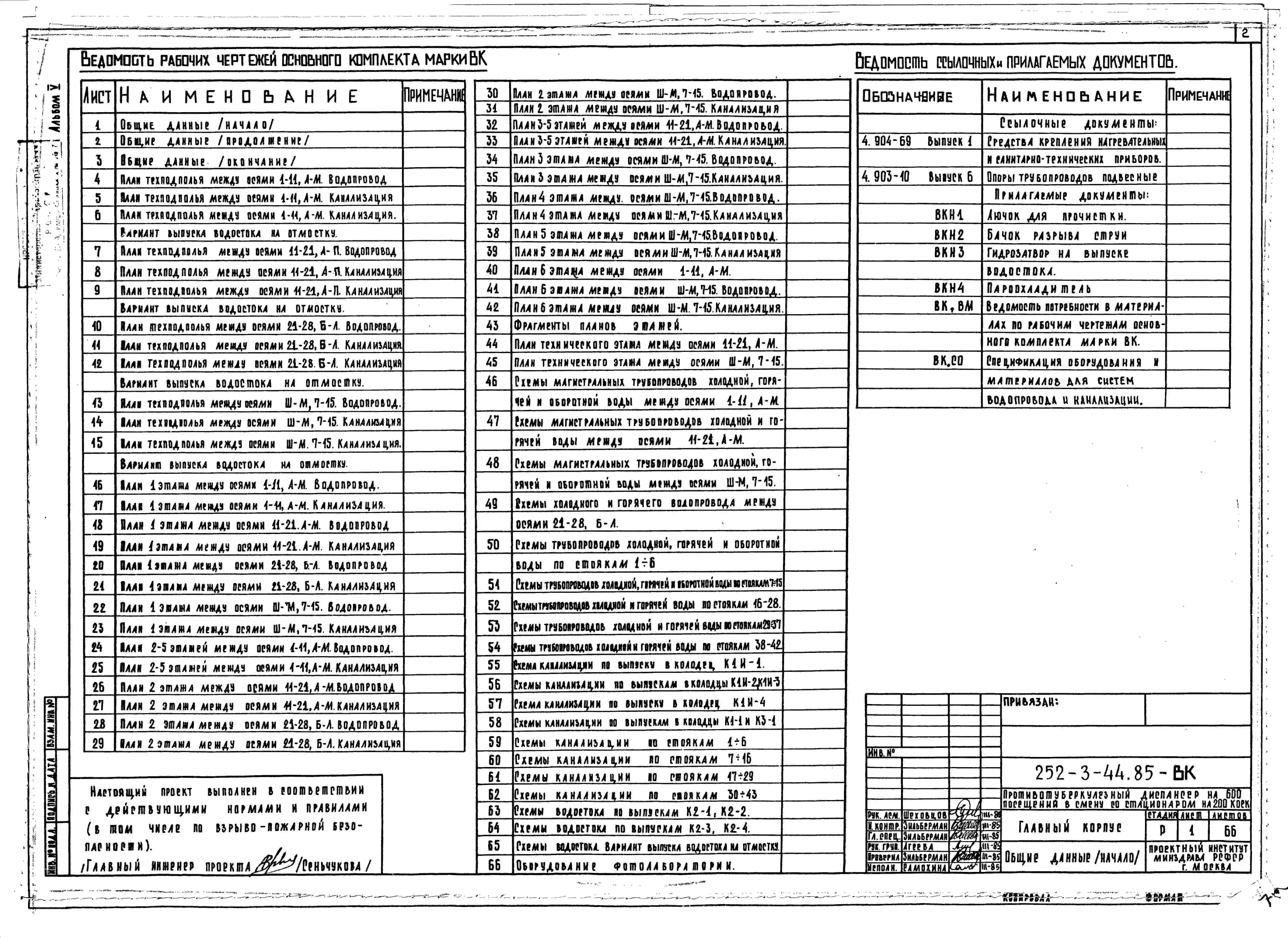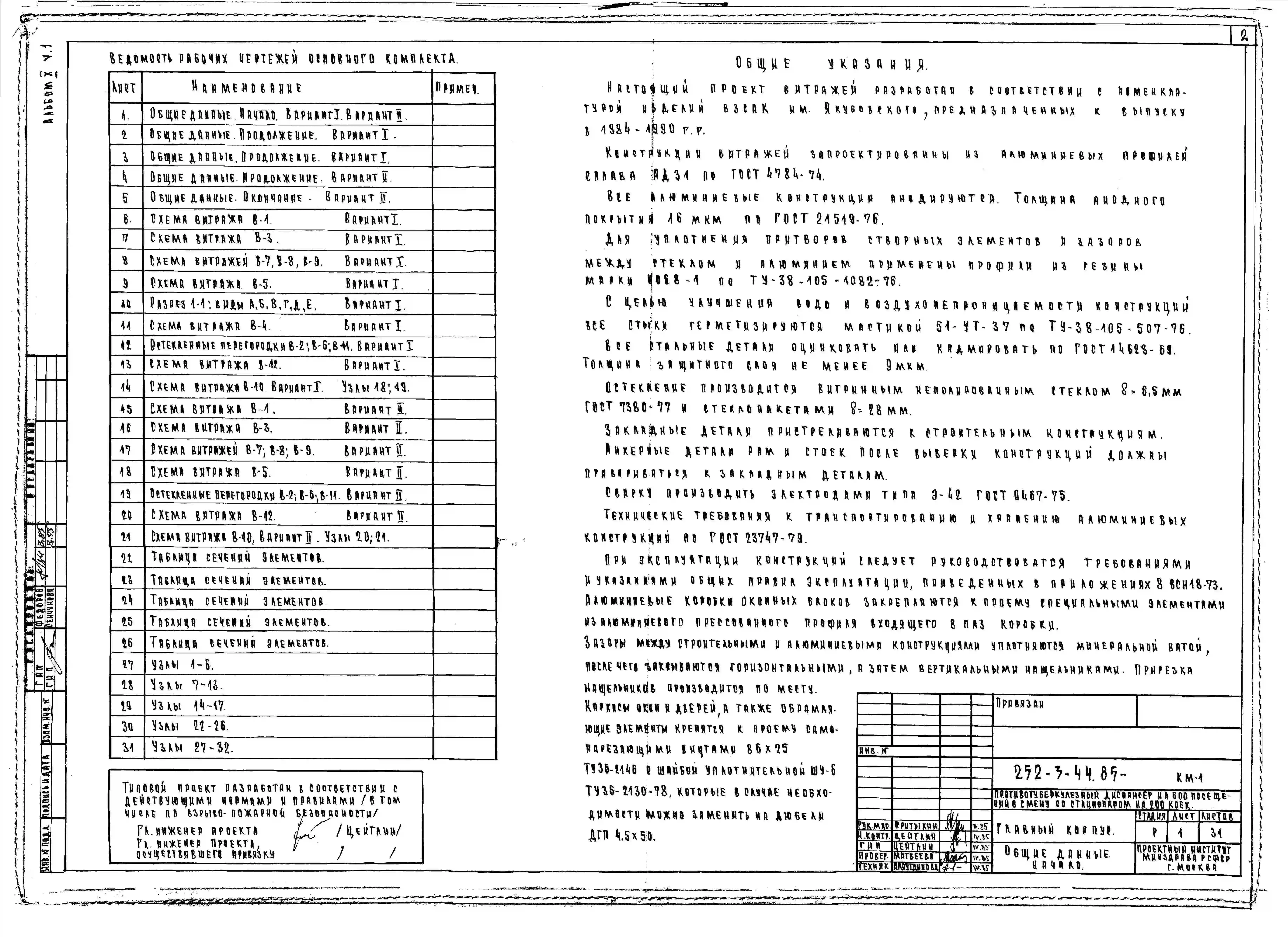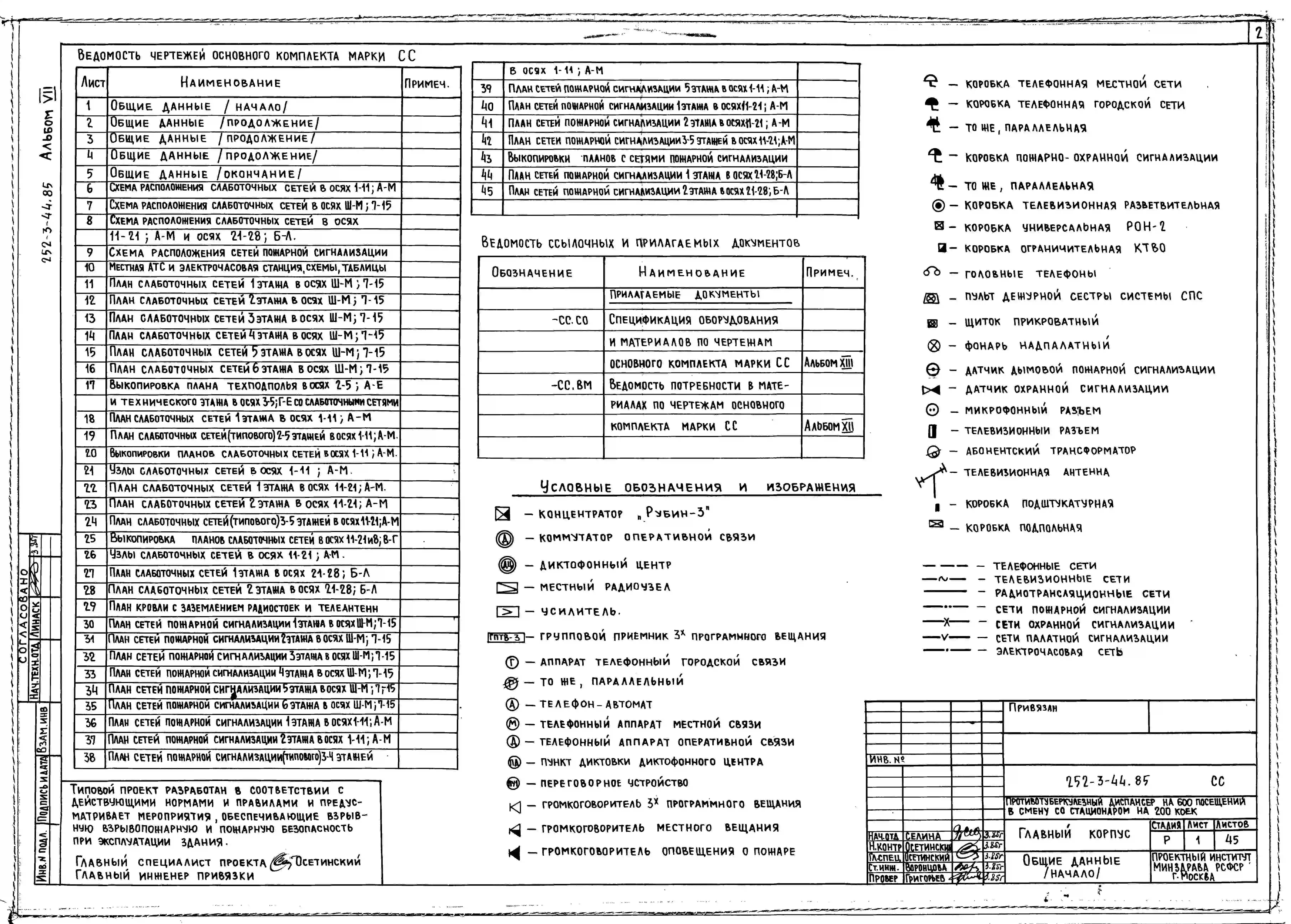Типовой проект 252-3-44.85 Главный корпус противотуберкулёзного диспансера на 600 посещений в смену со стационаром на 200 коек. Здание двух -, семиэтажное. Стены из легкобетонных панелей.