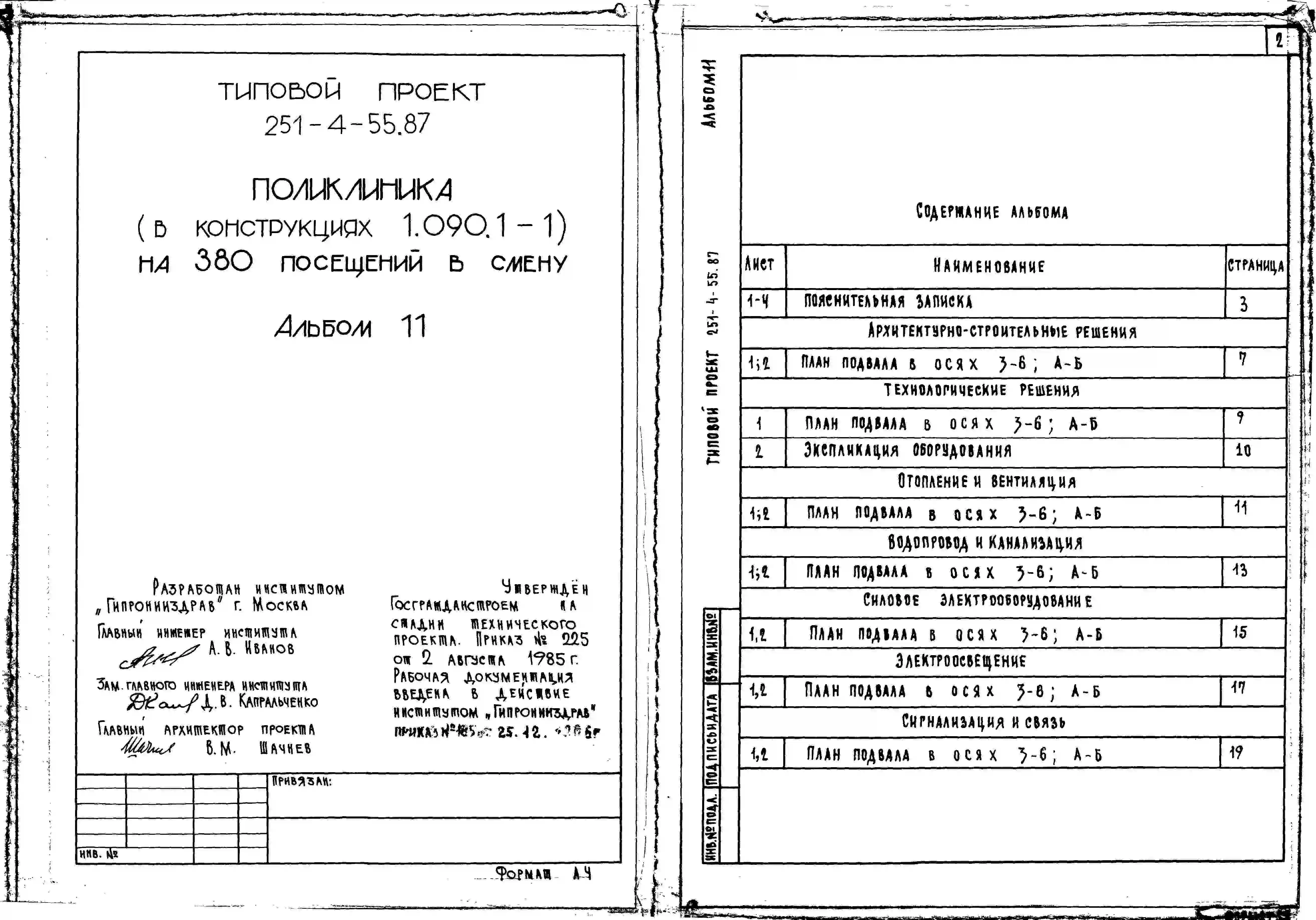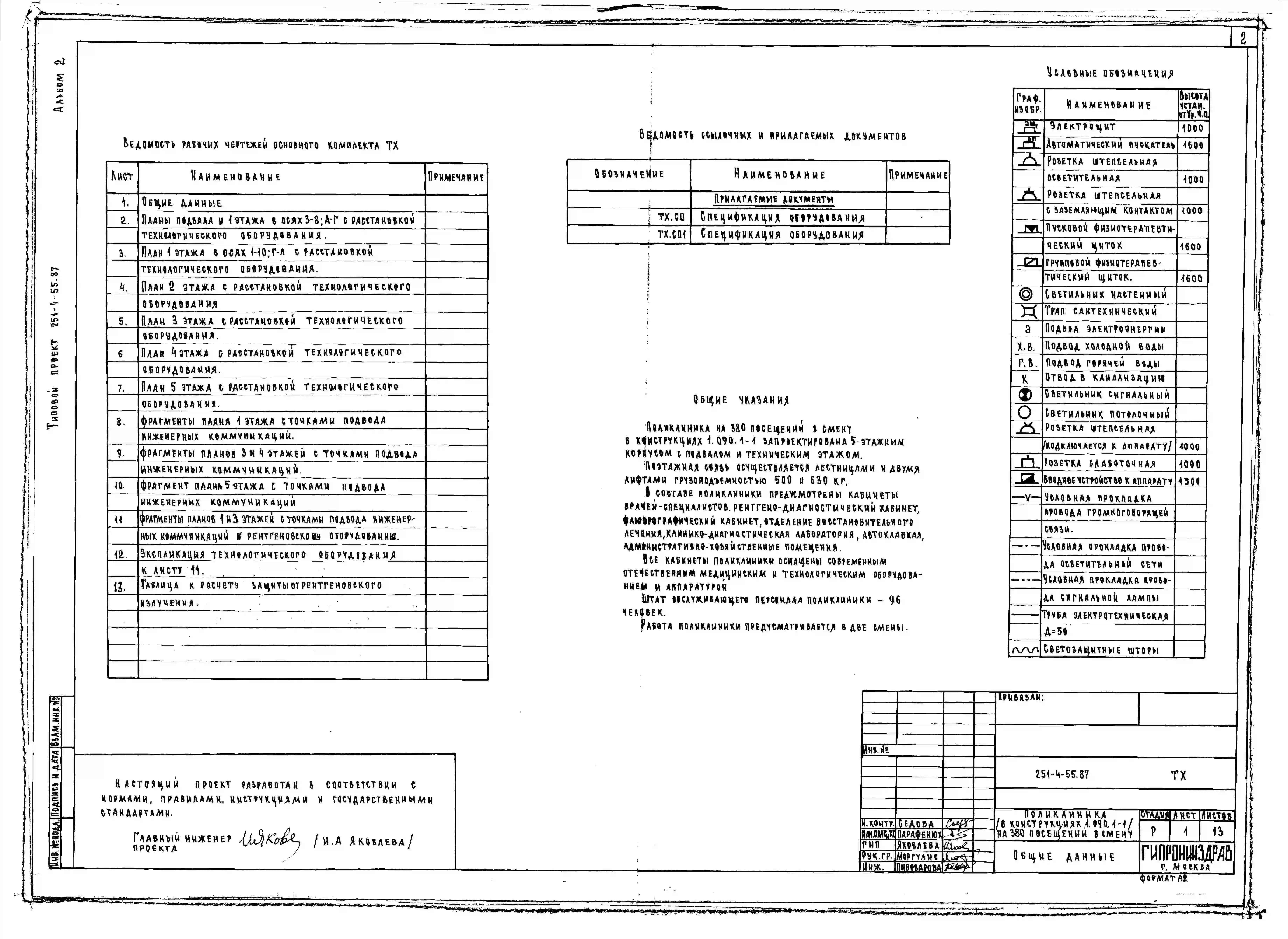 Типовой проект 251-4-55.87 Поликлиника на 380 посещений в смену. Здание одно-, четырех -, пятиэтажное. Стены из трехслойных легкобетонных панелей по серии 1.090.1-1.